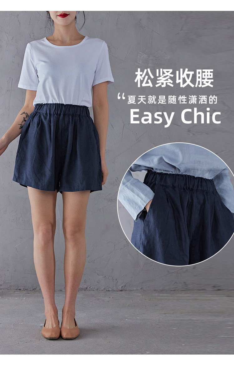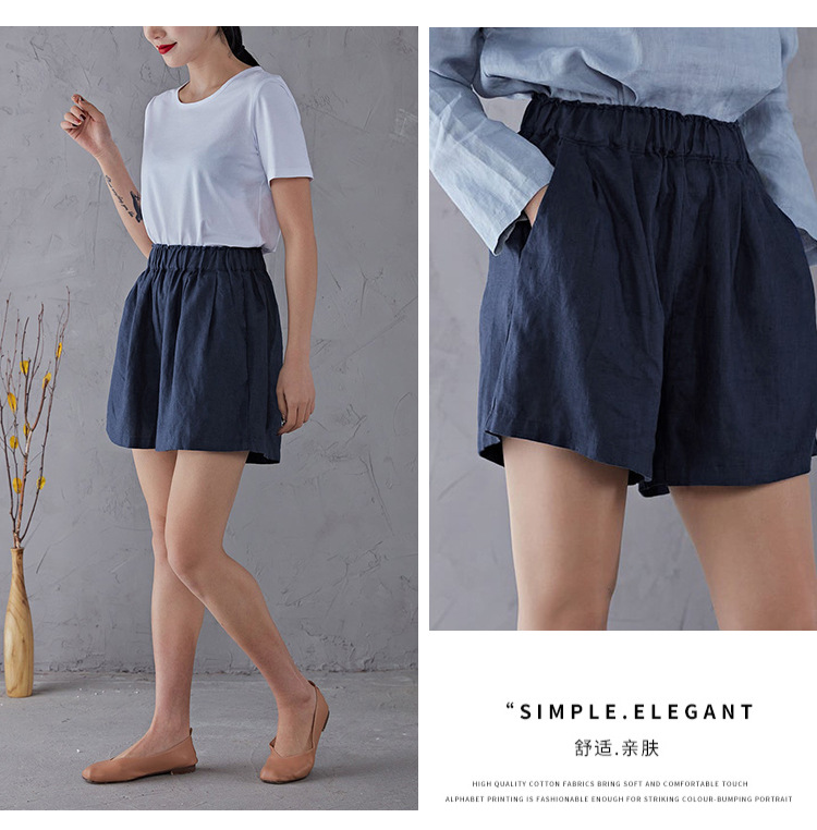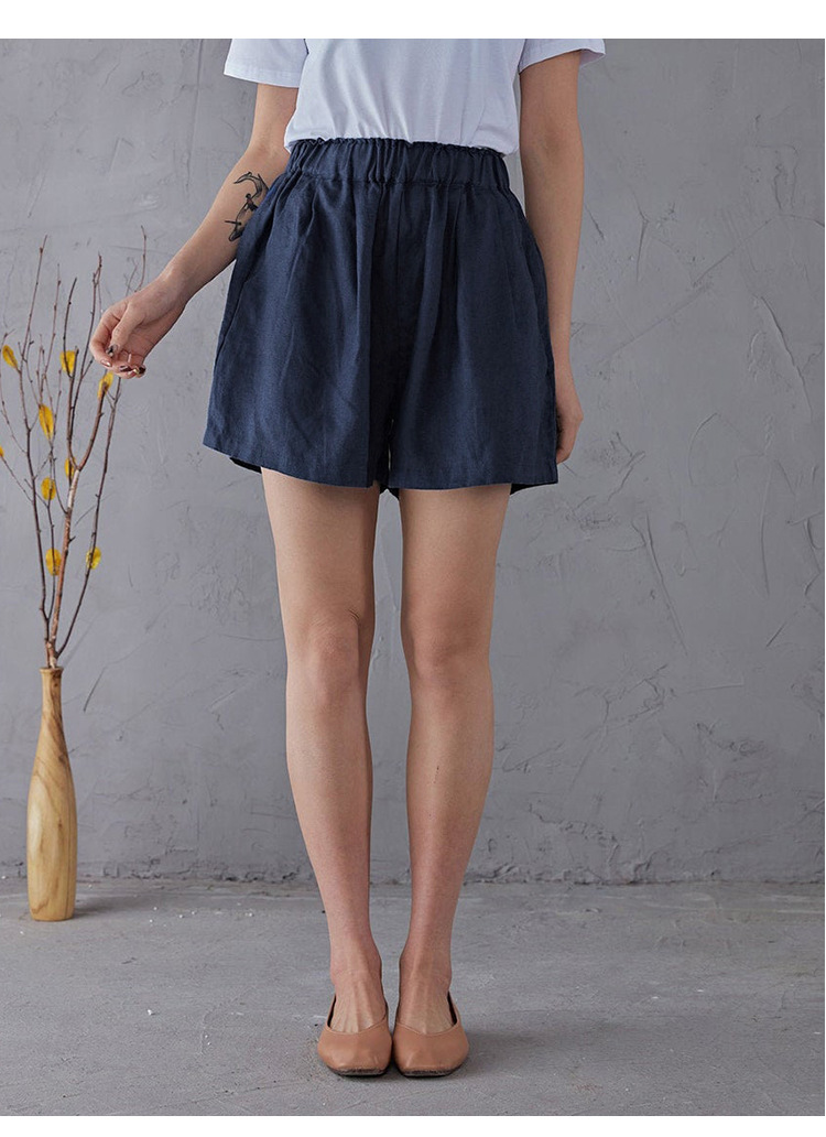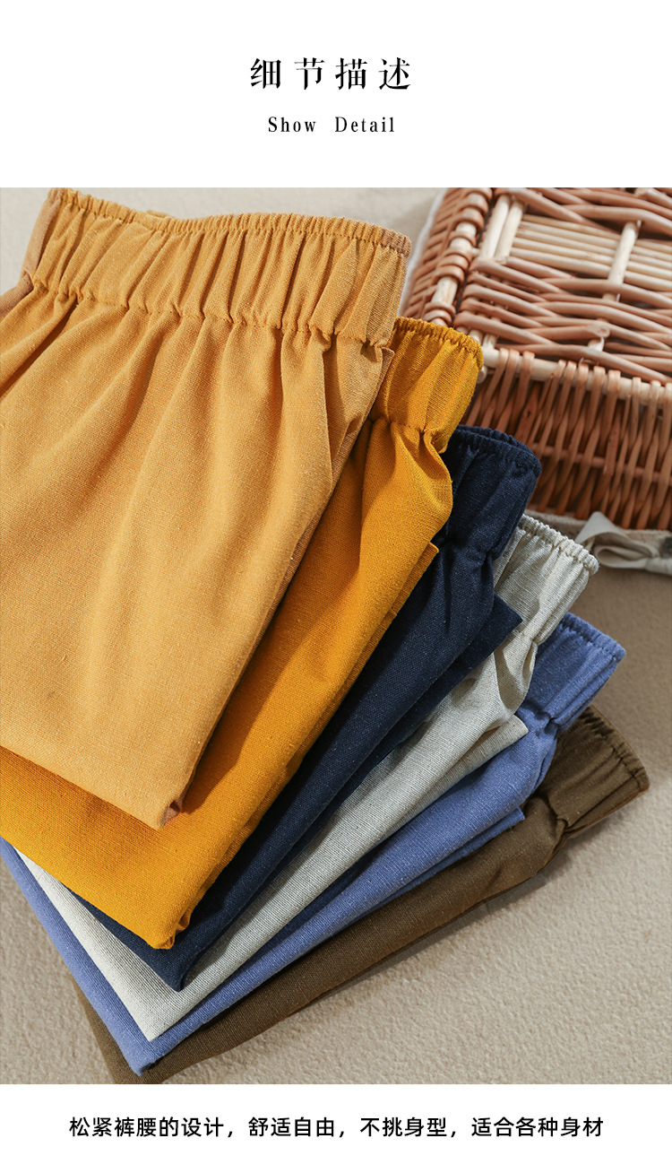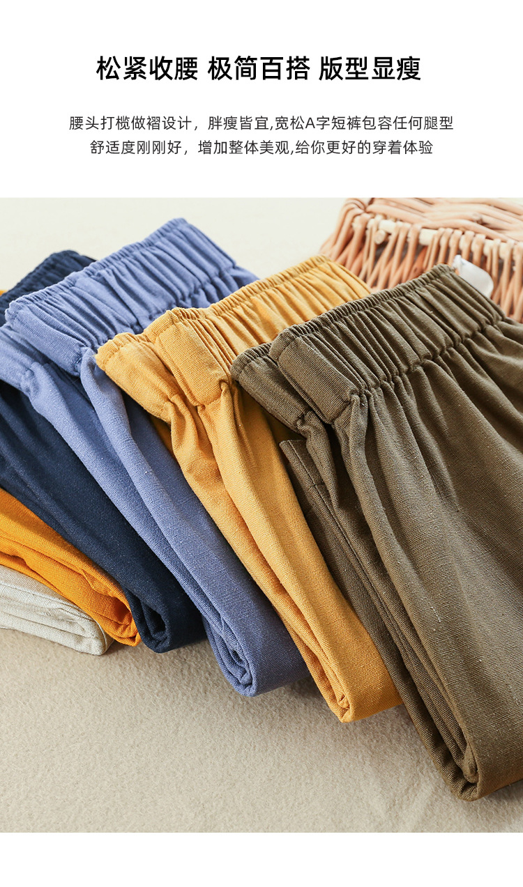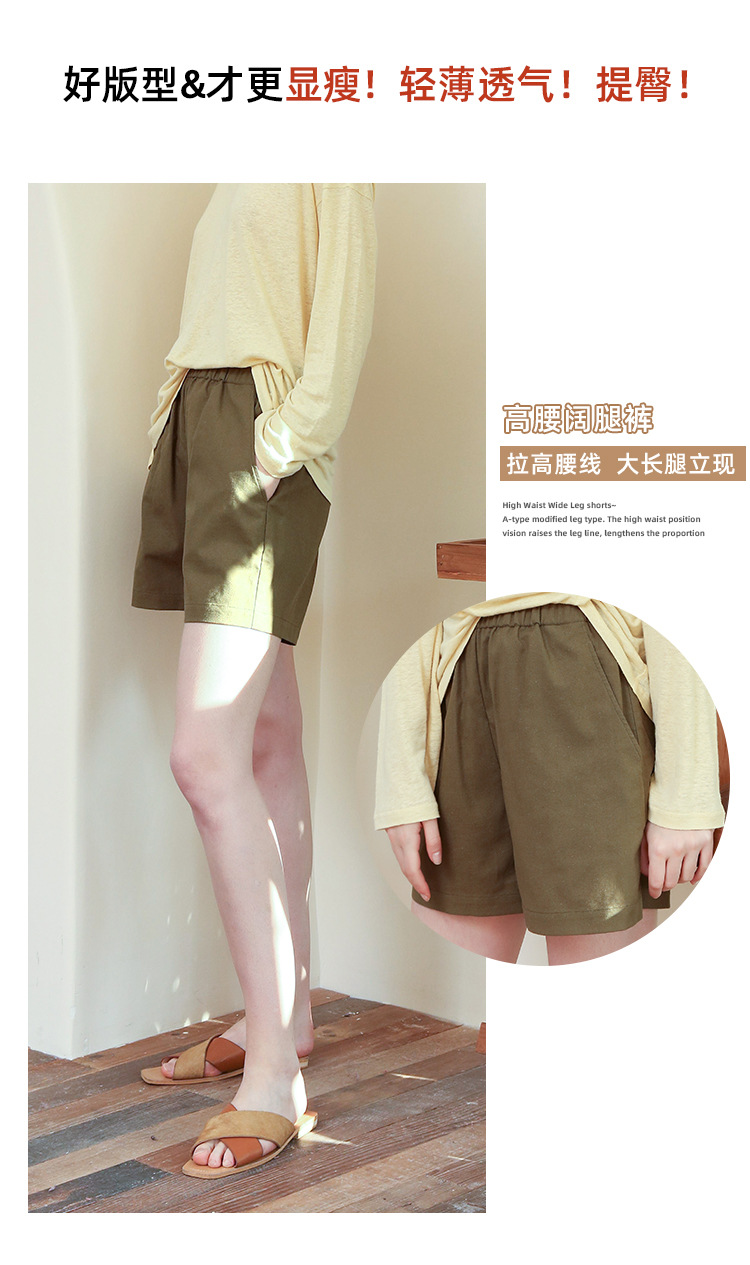 Celana pendek katun dan linen berpinggang tinggi untuk wanita musim panas 2026, celana lebar serbaguna dengan pinggang elastis, celana pendek katun-linen longgar ukuran besar yang melangsingkan.