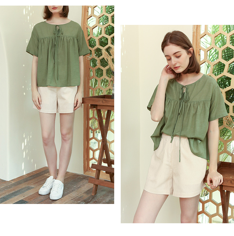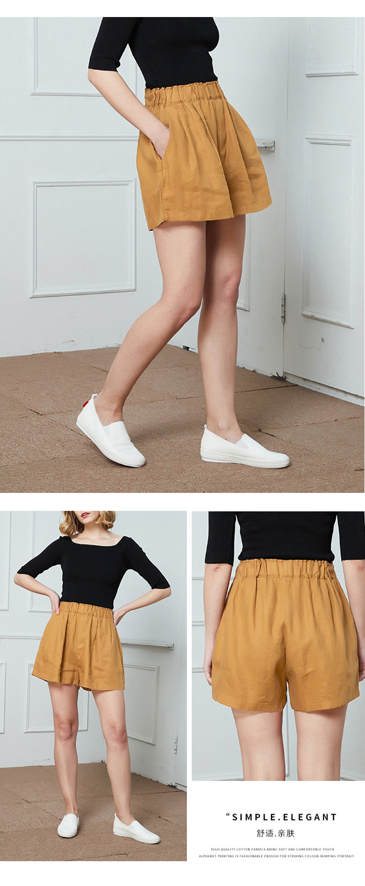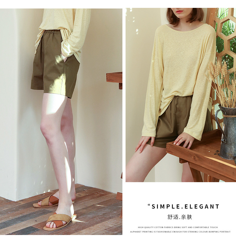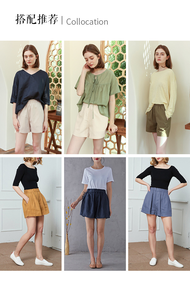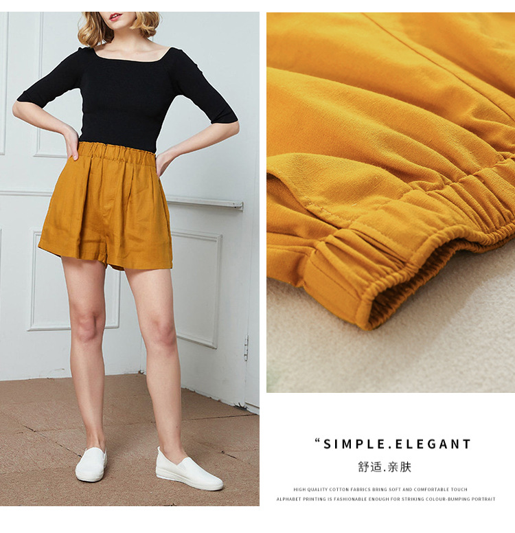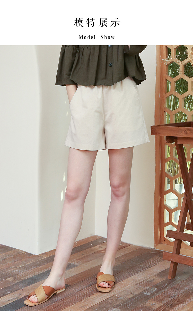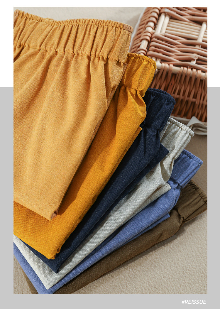 Celana pendek katun dan linen berpinggang tinggi untuk wanita musim panas 2026, celana lebar serbaguna dengan pinggang elastis, celana pendek katun-linen longgar ukuran besar yang melangsingkan.