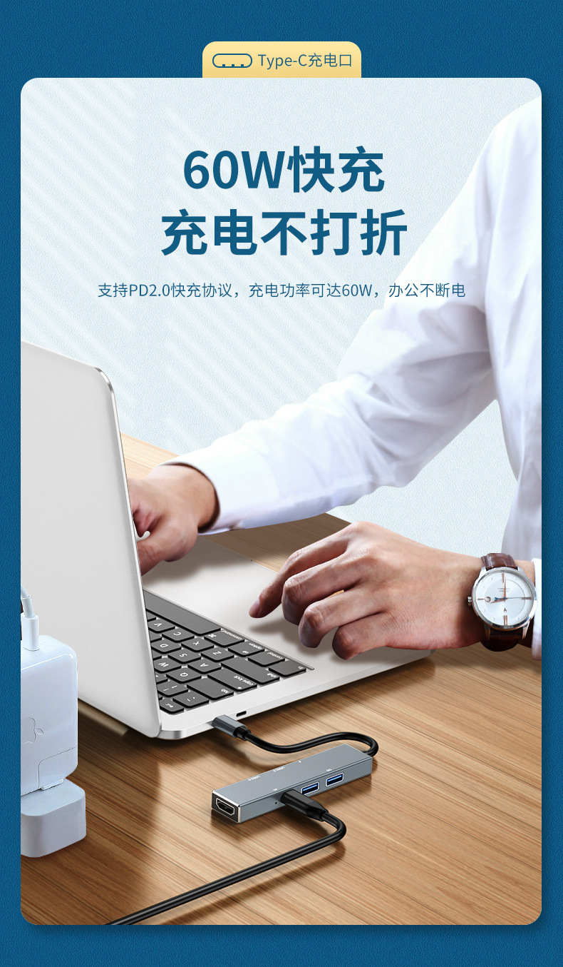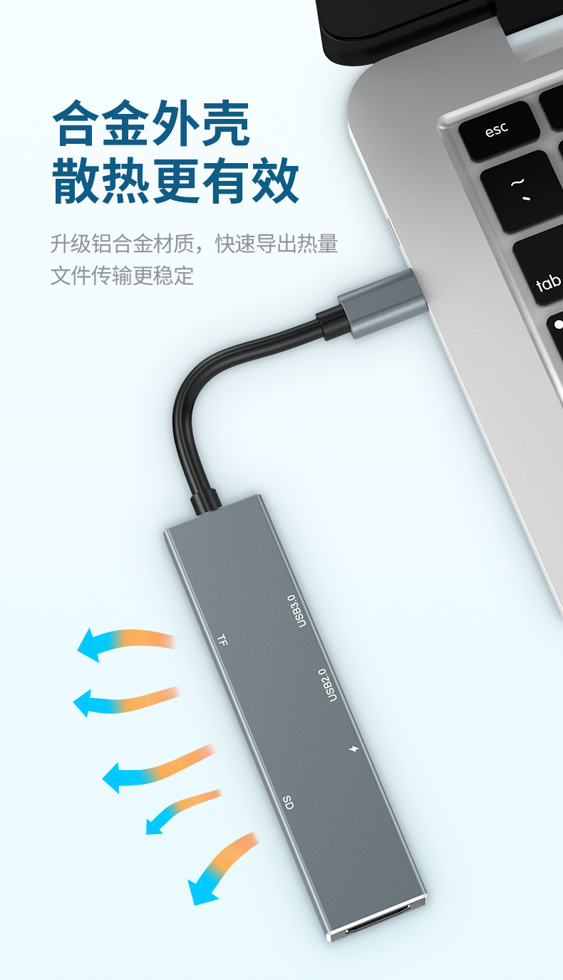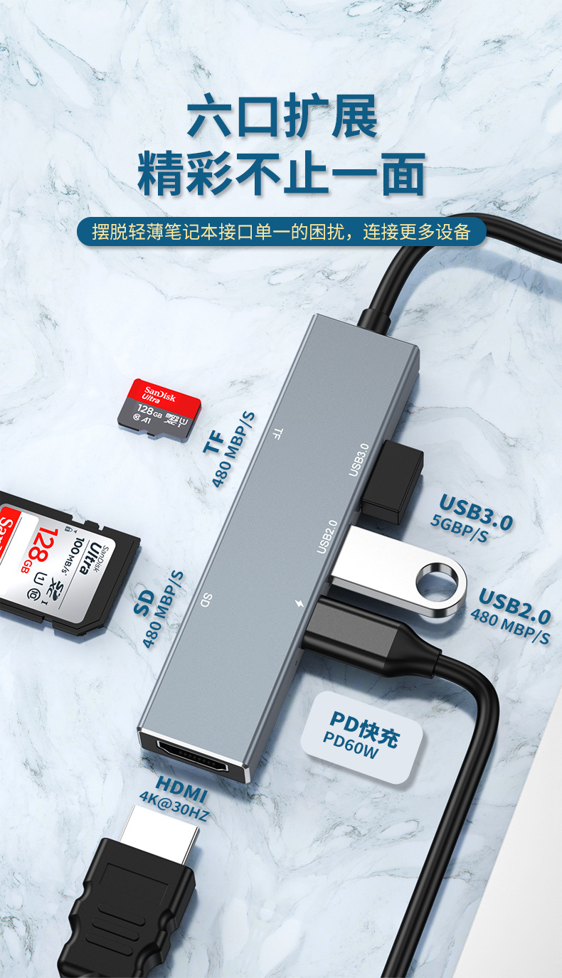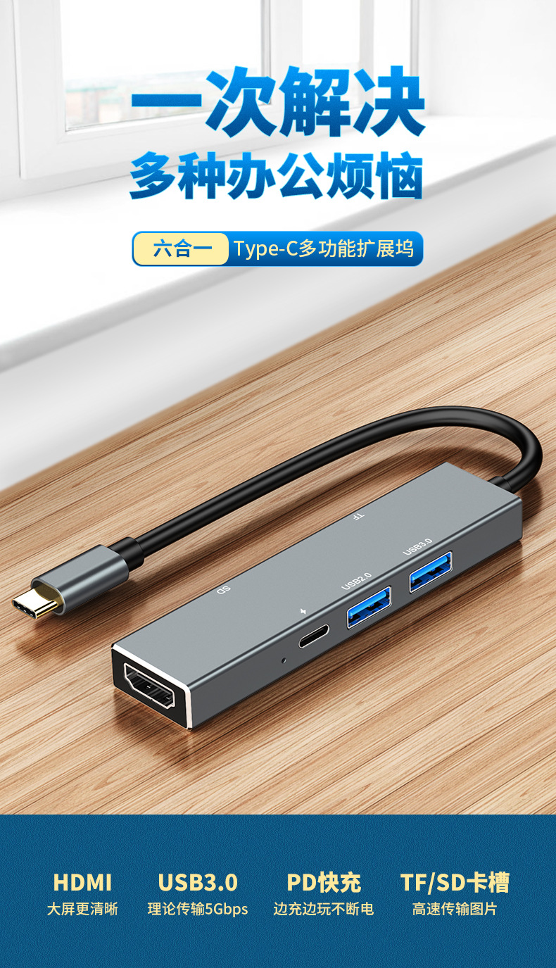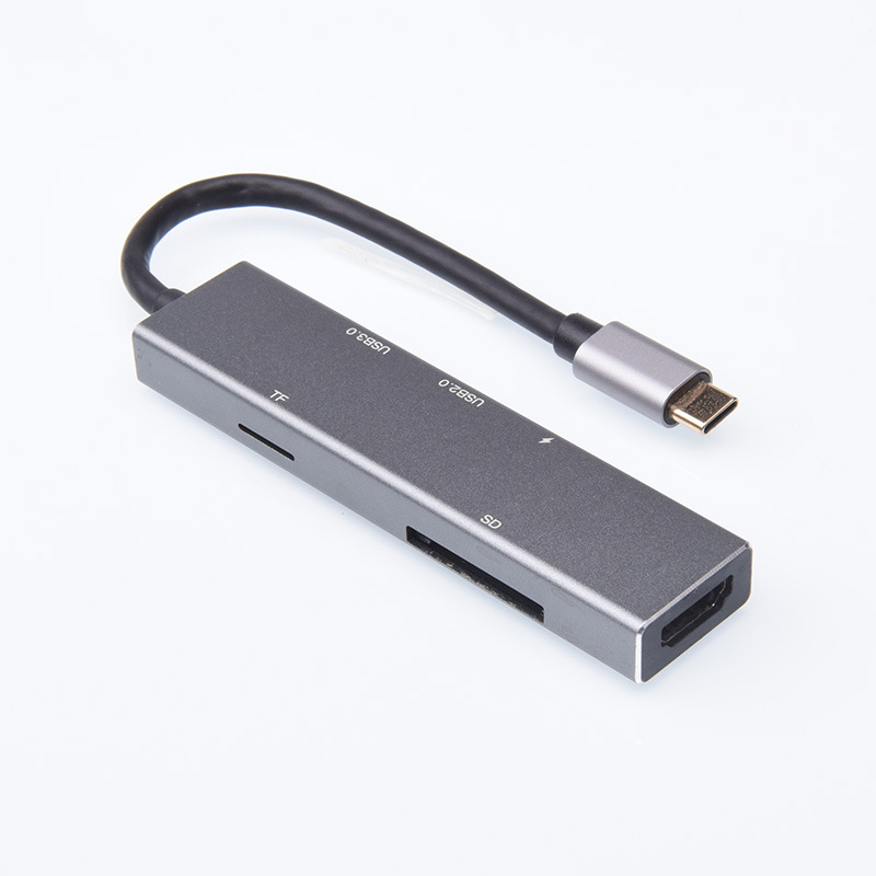 Dok ekspansi tipe-c ke HDMI, aksesori ponsel laptop hub Petir 6 dalam satu hub Tipe c ke HDMI