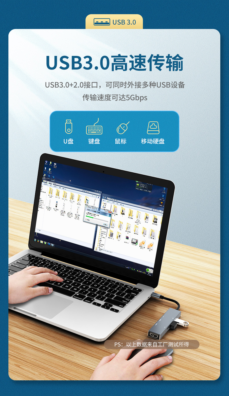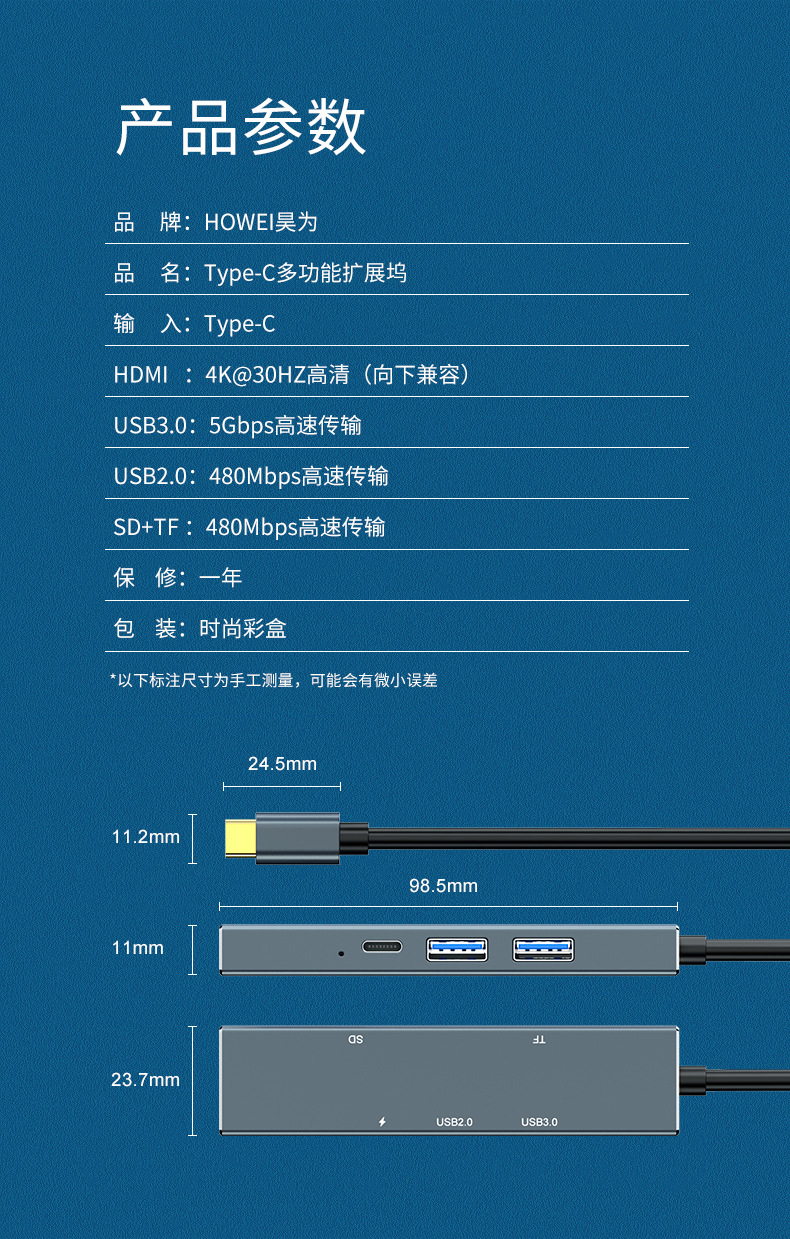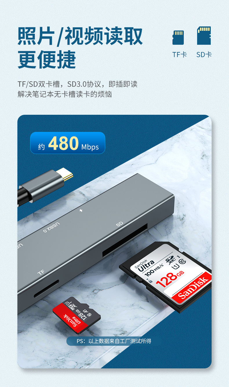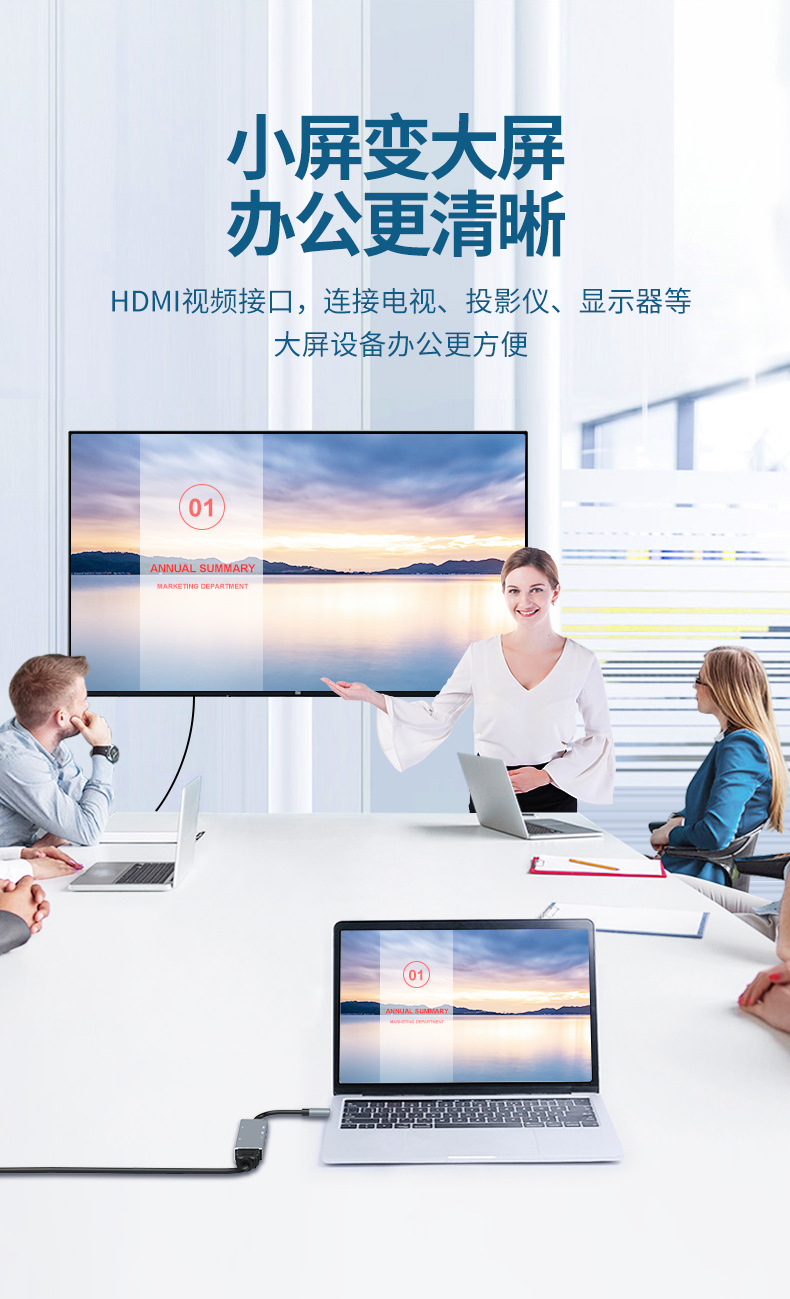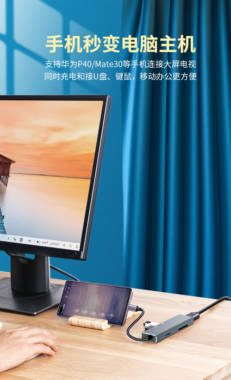 Dok ekspansi tipe-c ke HDMI, aksesori ponsel laptop hub Petir 6 dalam satu hub Tipe c ke HDMI