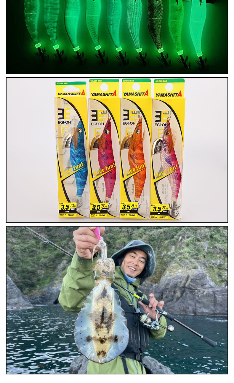 YAMASHITA umpan pancing cumi-cumi, umpan memancing cumi-cumi EGI-OH F bercahaya super terang No. 3.5/20g
