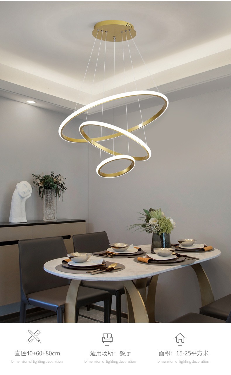 led restoran lampu gantung skandinavia modern minimalis lampu gantung kamar tidur ruang tamu lampu tiga cincin Zhongshan pencahayaan pabrik penjualan langsung