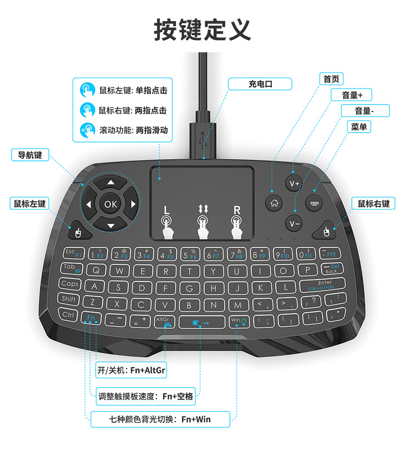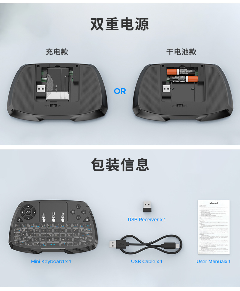 Keyboard mini isi ulang daya baru dari produsen asli, mouse udara nirkabel, mouse kecil Amazon lintas batas untuk laptop.