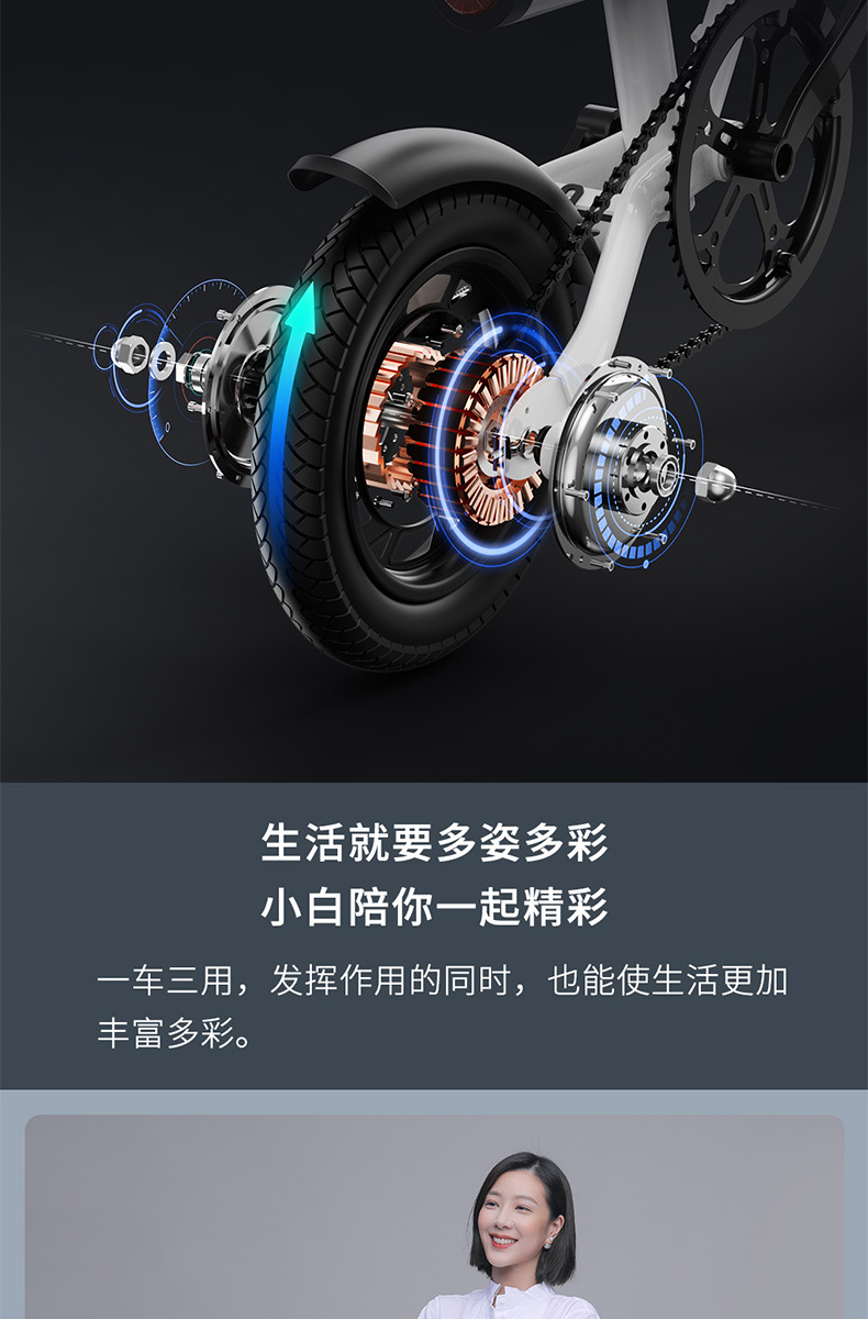 Sepeda listrik lipat putih kecil Xiaomi, sepeda listrik lipat ringan mini baru standar nasional dewasa siswa