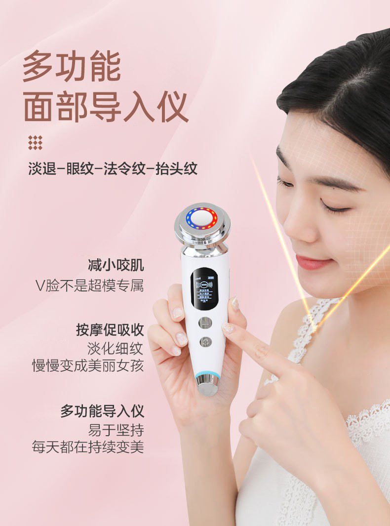 Instrumen kecantikan ultrasonik yang dipilih dengan cermat, instrumen peremajaan foton cahaya berwarna merah dan biru, pemijat wajah arus mikro, impor dan ekspor ion