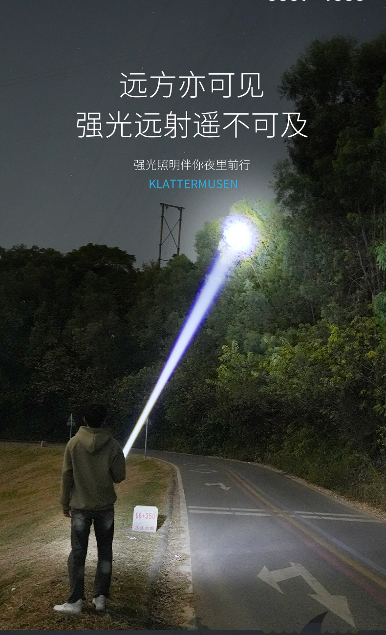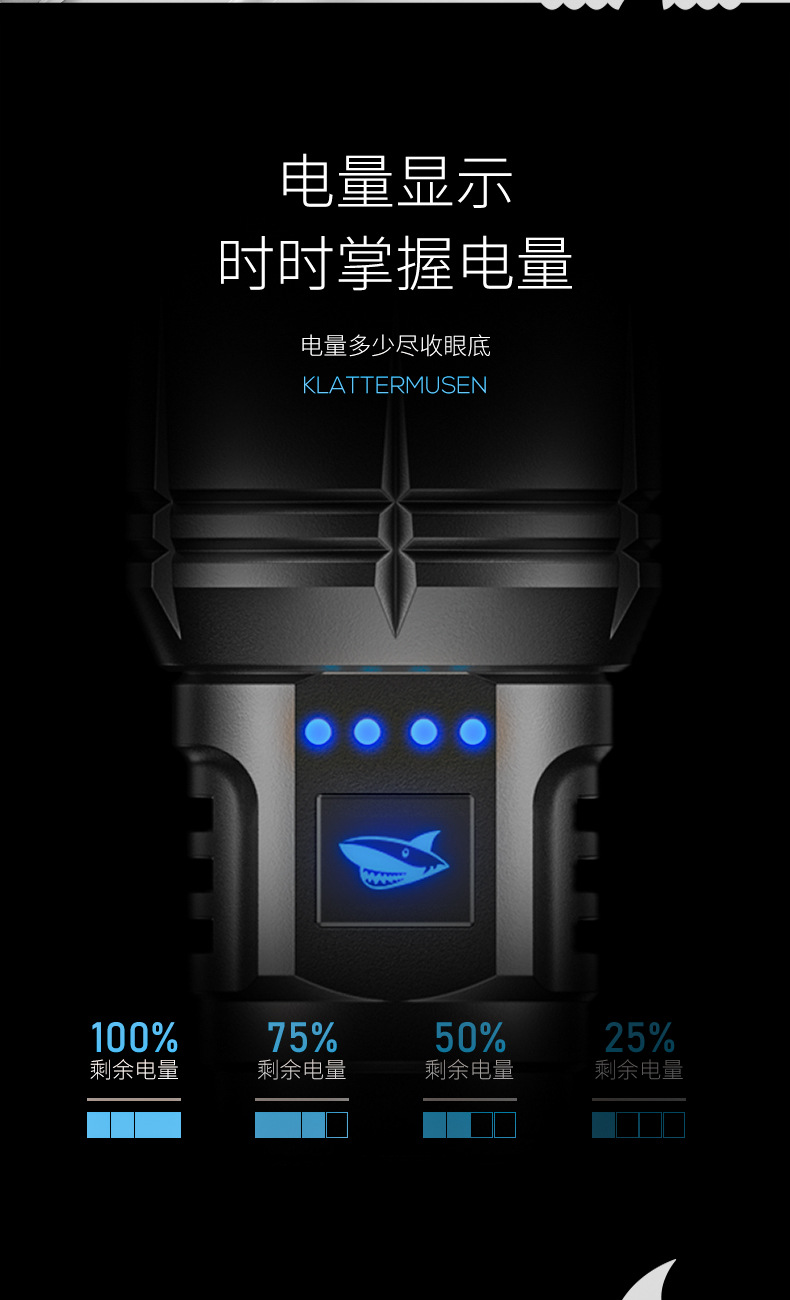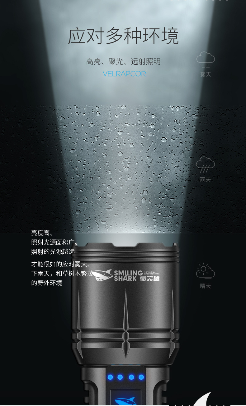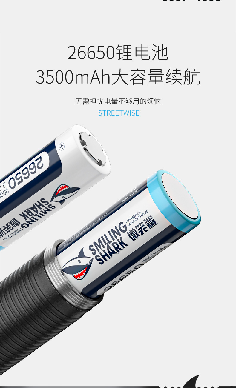 Senter Listrik Zoomable Hiu Tersenyum Senter Jarak Jauh Kecerahan Tinggi Senter Paduan Aluminium
