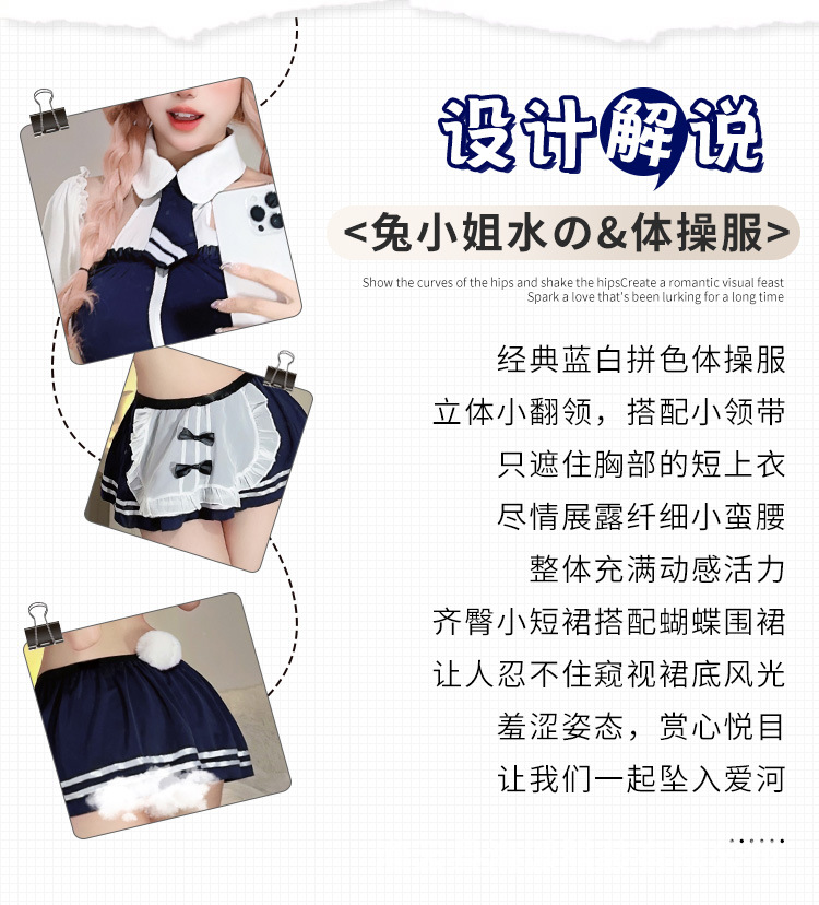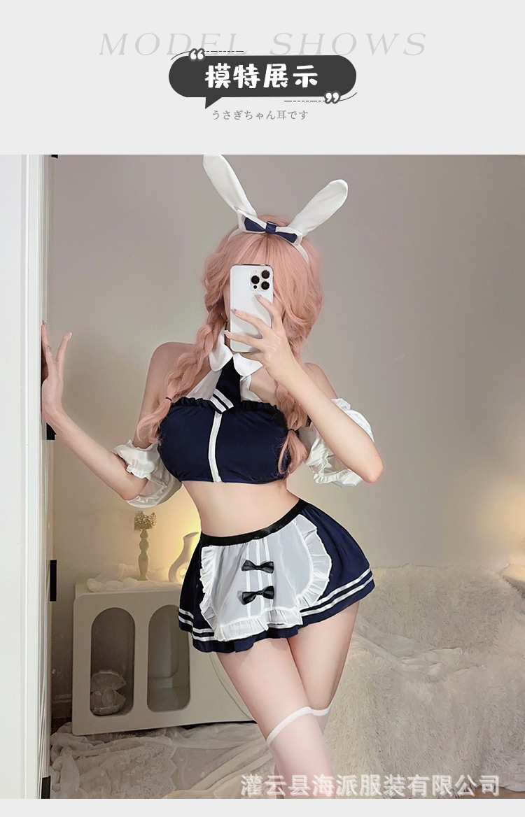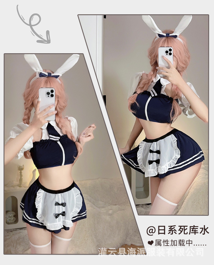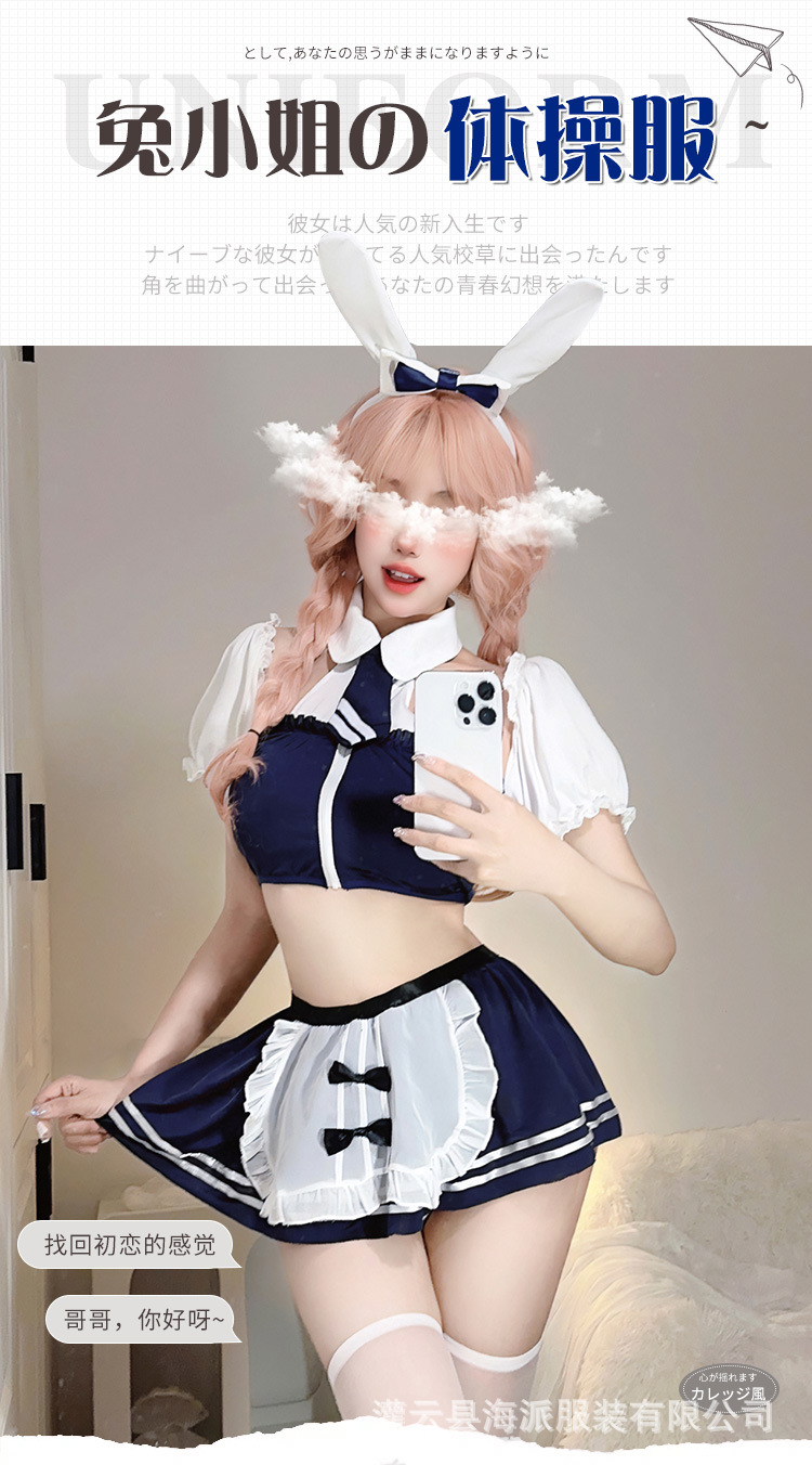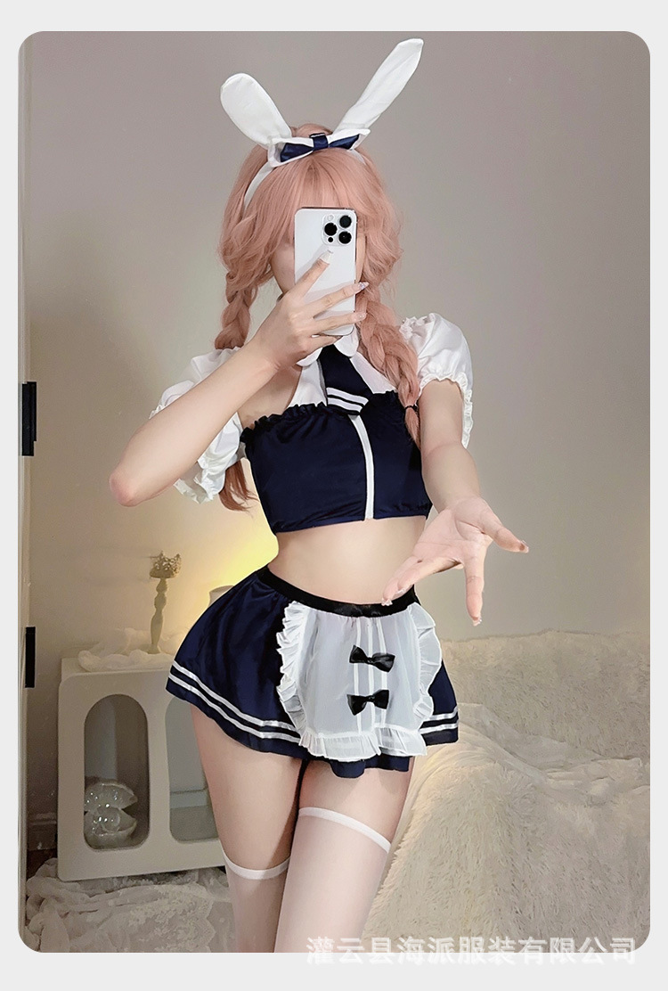 Lingerie seksi lembut gaya Jepang manis sutra es pakaian renang pemisah air mati kelinci godaan senam pakaian pelayan