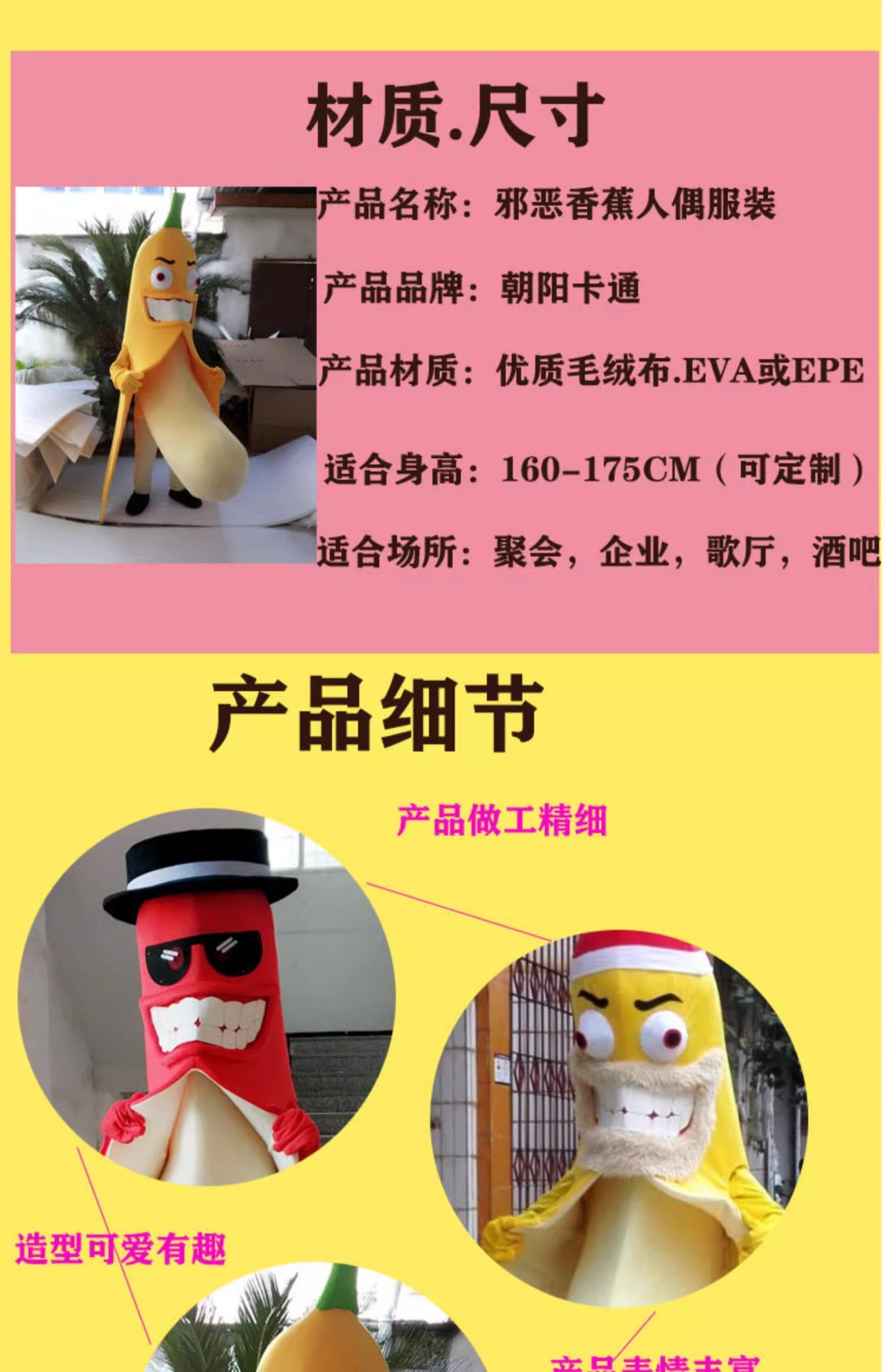 Bar kostum boneka kartun pisang pesta kreatif buah properti penampilan dewasa pakaian boneka lucu