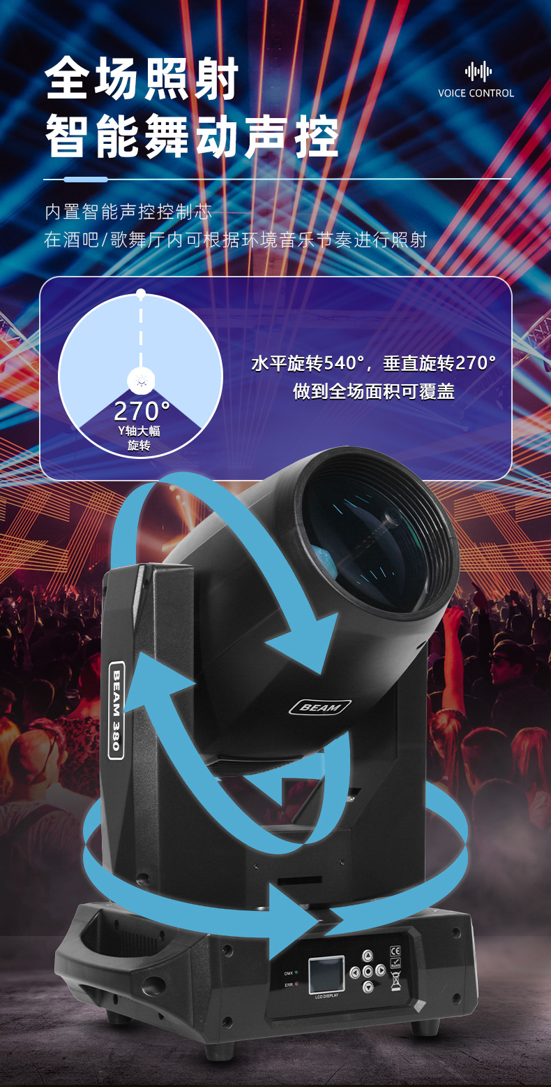 Lampu sorot bergerak pernikahan, lampu sorot panggung, lampu kepala bergerak 380W untuk restoran Studio langsung berputar pola perjamuan pernikahan