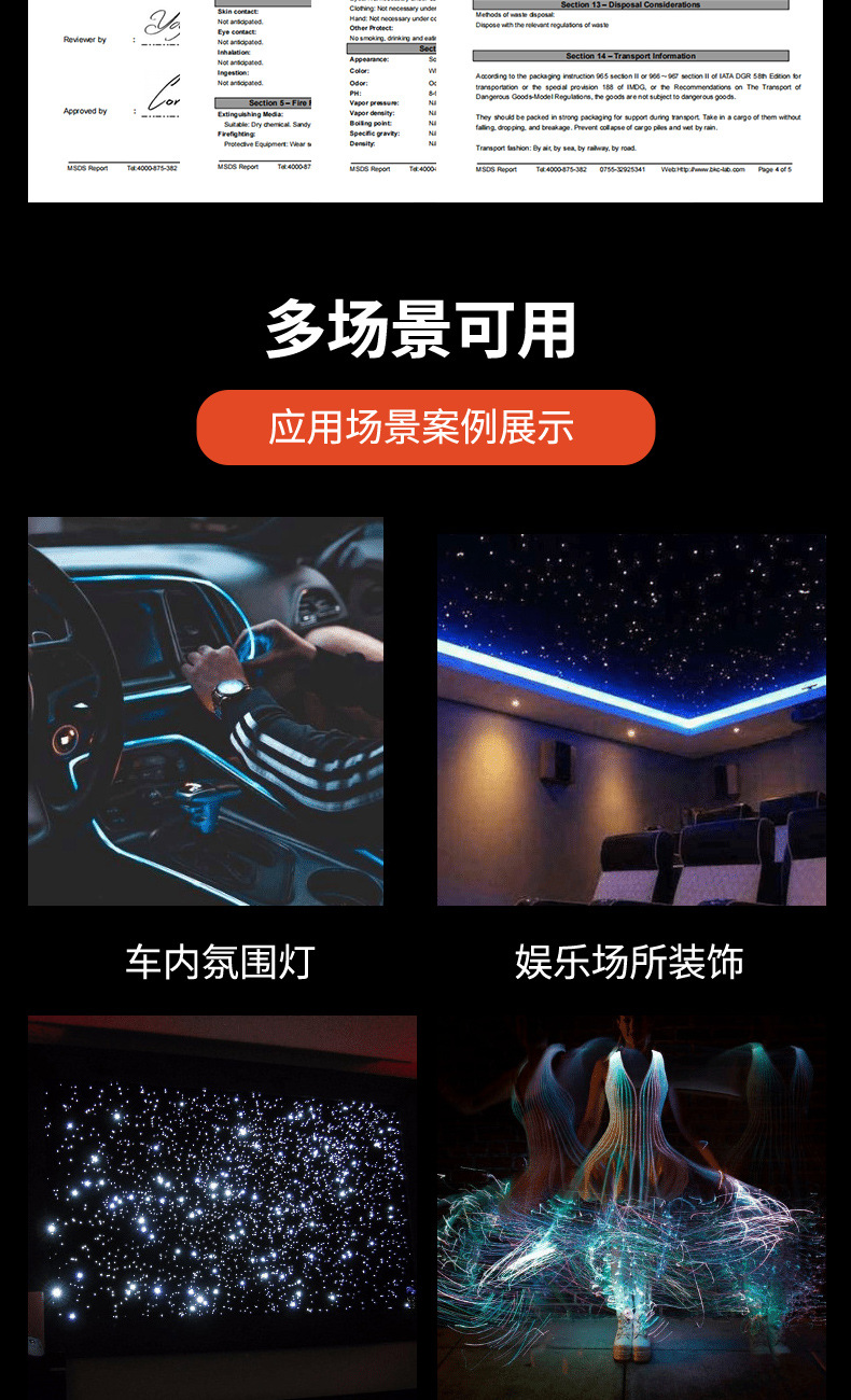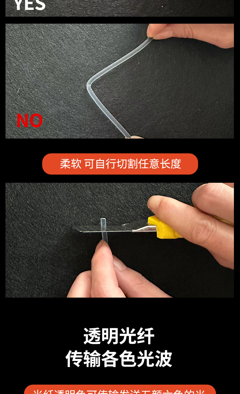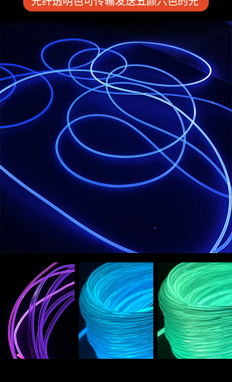 Produsen grosir strip lampu fiber optik transparan, lampu atmosfer menyeluruh, lampu samping fiber bercahaya, material lembut