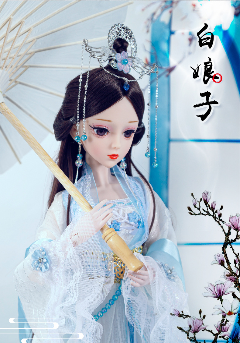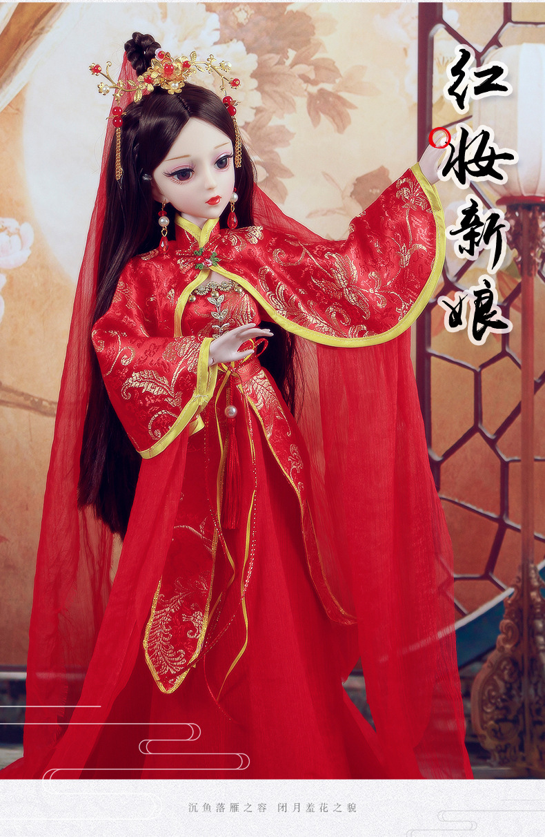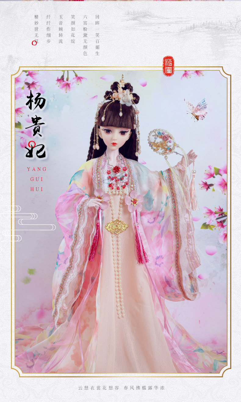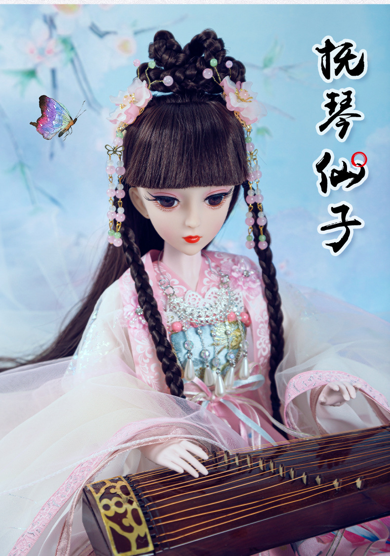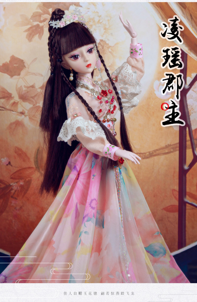 Boneka kostum kuno realistis 60cm lintas batas, mainan anak-anak Hanfu gaya kuno, set boneka putri perempuan.