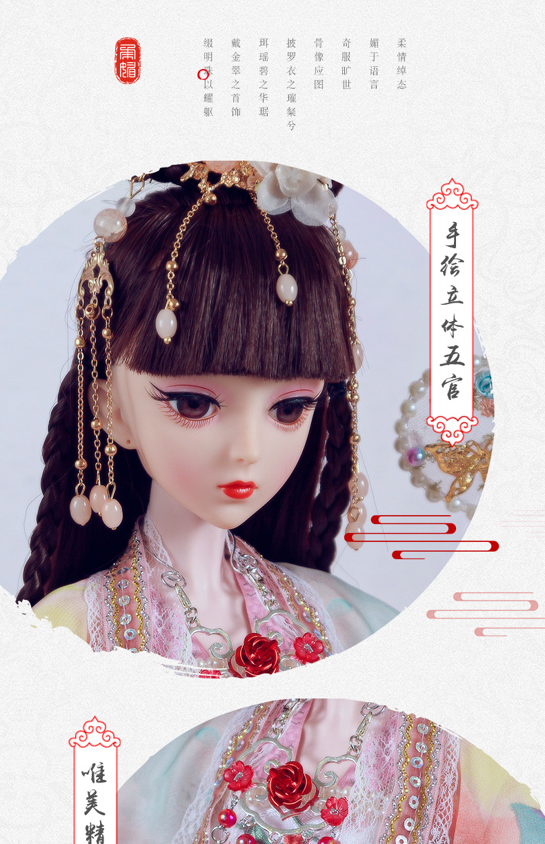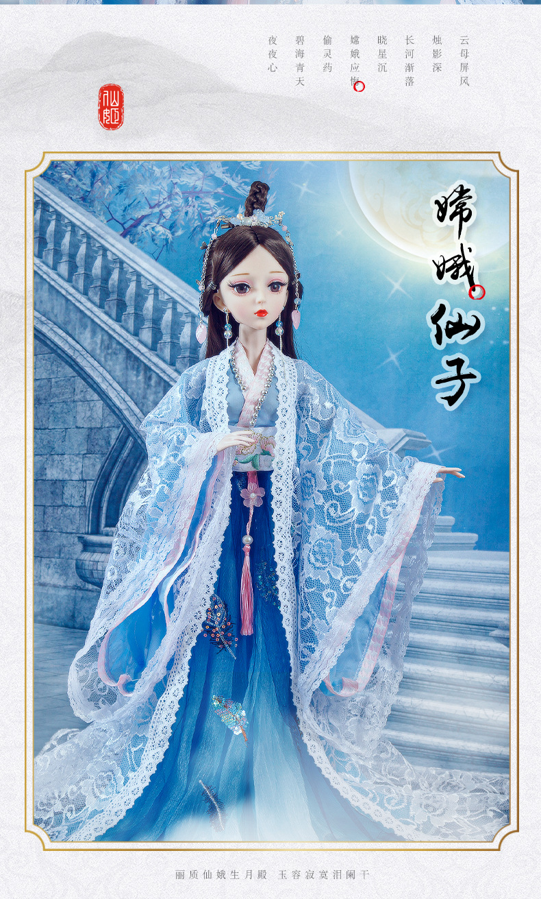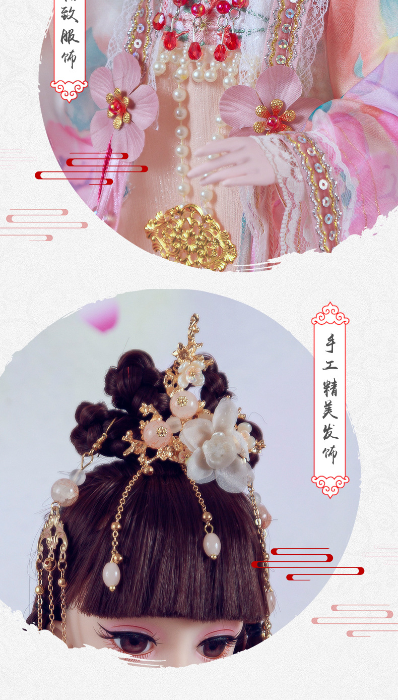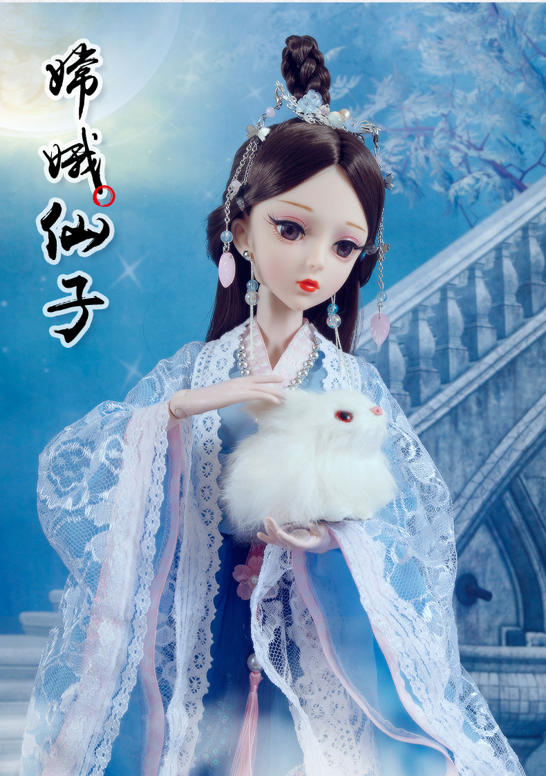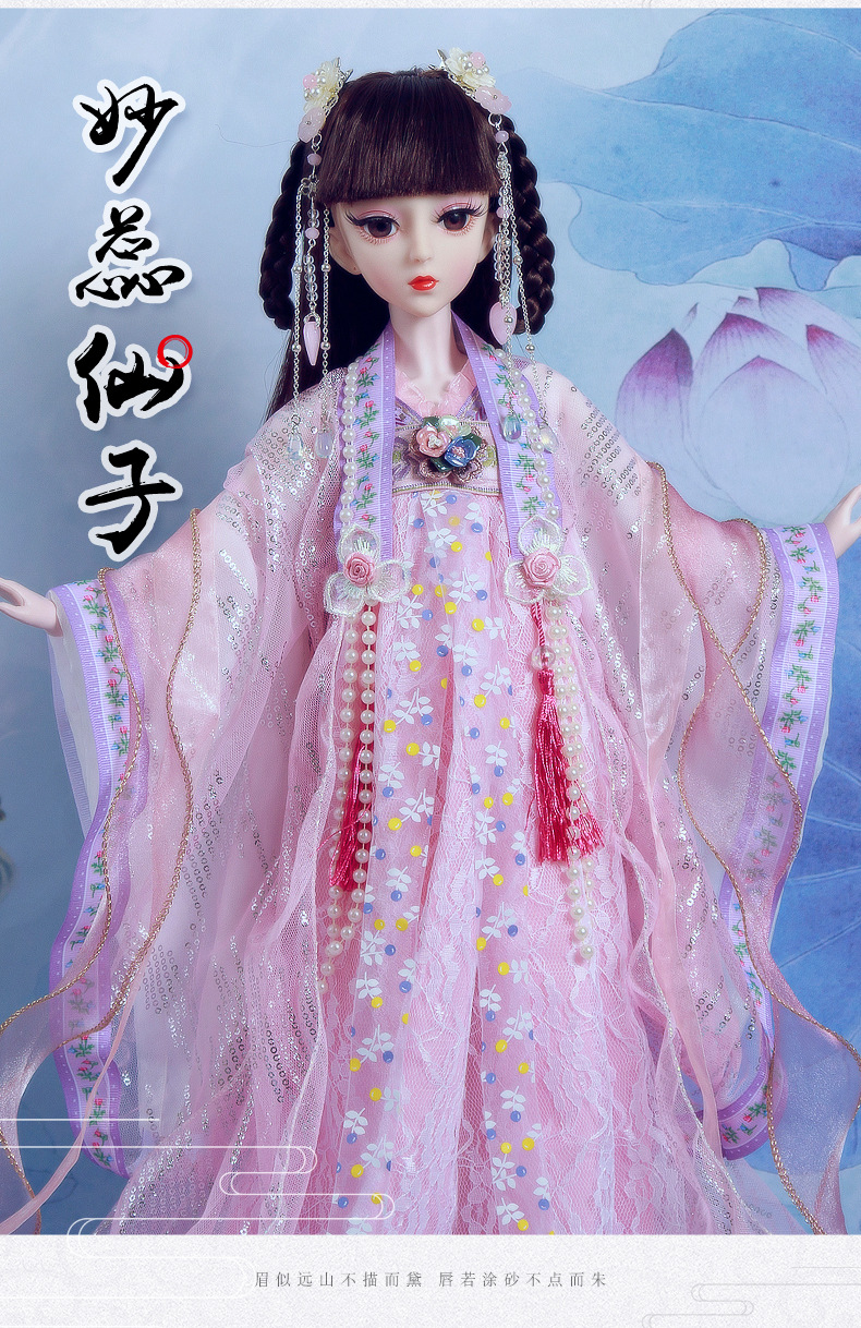 Boneka kostum kuno realistis 60cm lintas batas, mainan anak-anak Hanfu gaya kuno, set boneka putri perempuan.