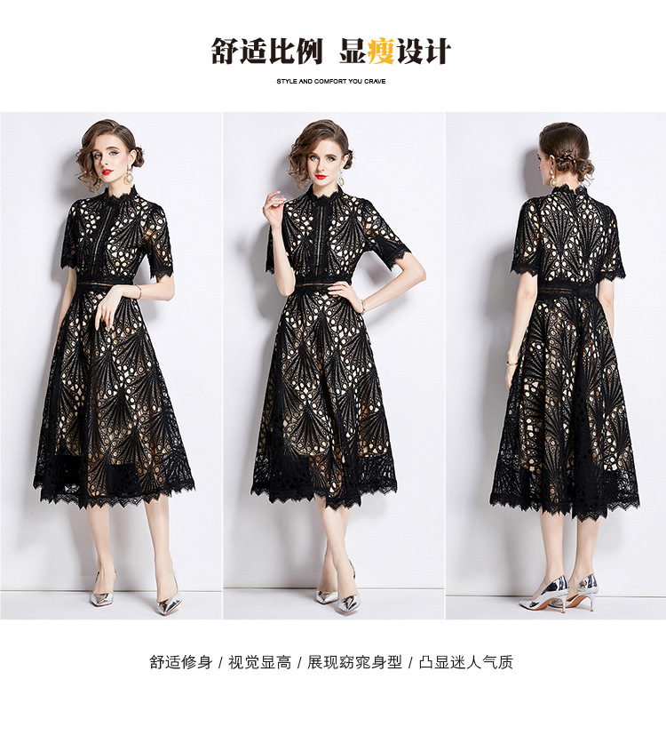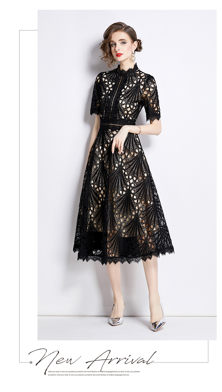 Gaun wanita kelas atas gaun musim panas rok acara gaun pinggang leher bulat jumpsuit ayun besar tipis baru renda jahitan temperamen