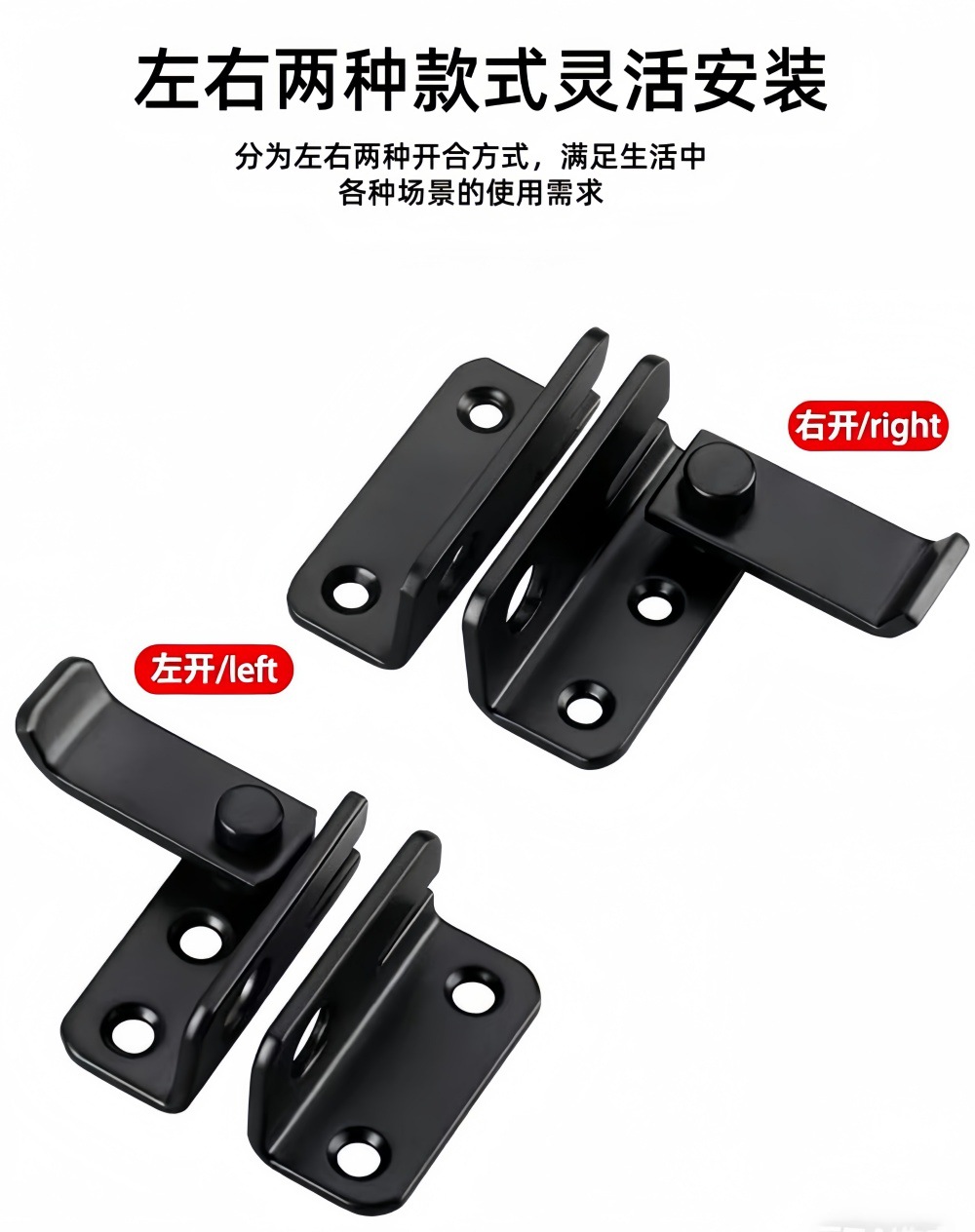 Kunci pengunci baja tahan karat untuk penggunaan di rumah, gesper kamar tidur sederhana, kunci pintu kamar mandi, kunci pintu hitam, gesper perangkat keras furnitur.