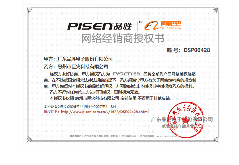 1.本店拥有品胜授权,网点以及阿里巴巴交易平台双授权,