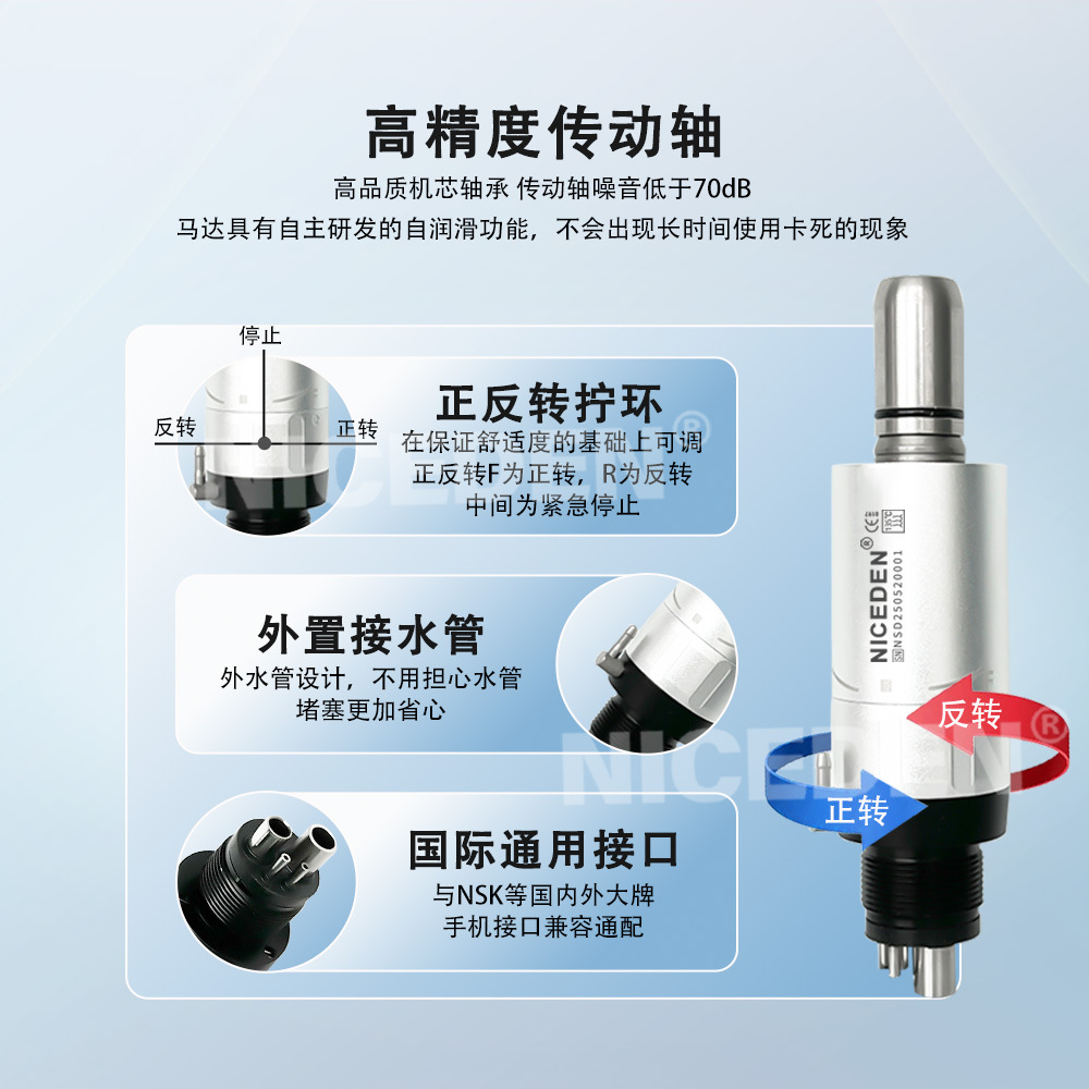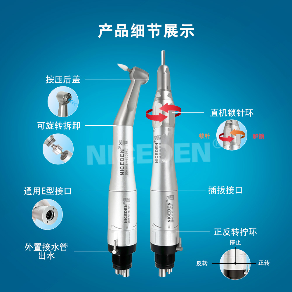 Alat gigi berkecepatan rendah, motor kepala melengkung berkecepatan lambat, alat poles handpiece lurus dengan saluran air internal, instrumen oral