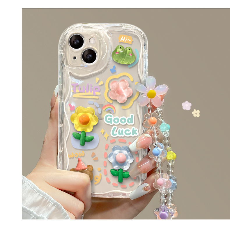 Casing HP Apple 14PROMAX, iPhone13 warna krem, motif bunga 3D boneka rantai anti jatuh 17, 16