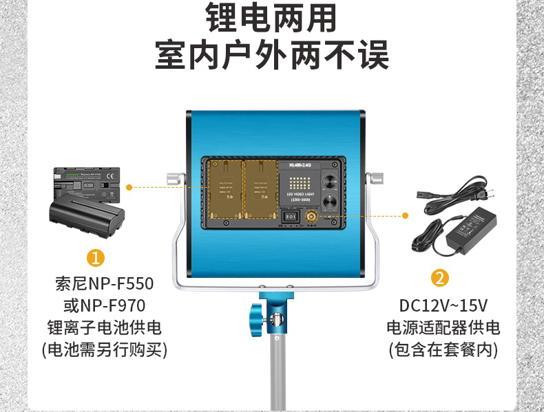 电源:电源适配器(包括)或NP-F550 NP-F970锂离子电池(不包括)