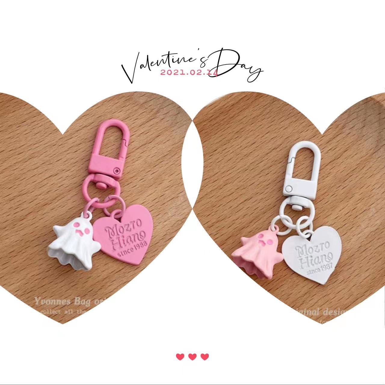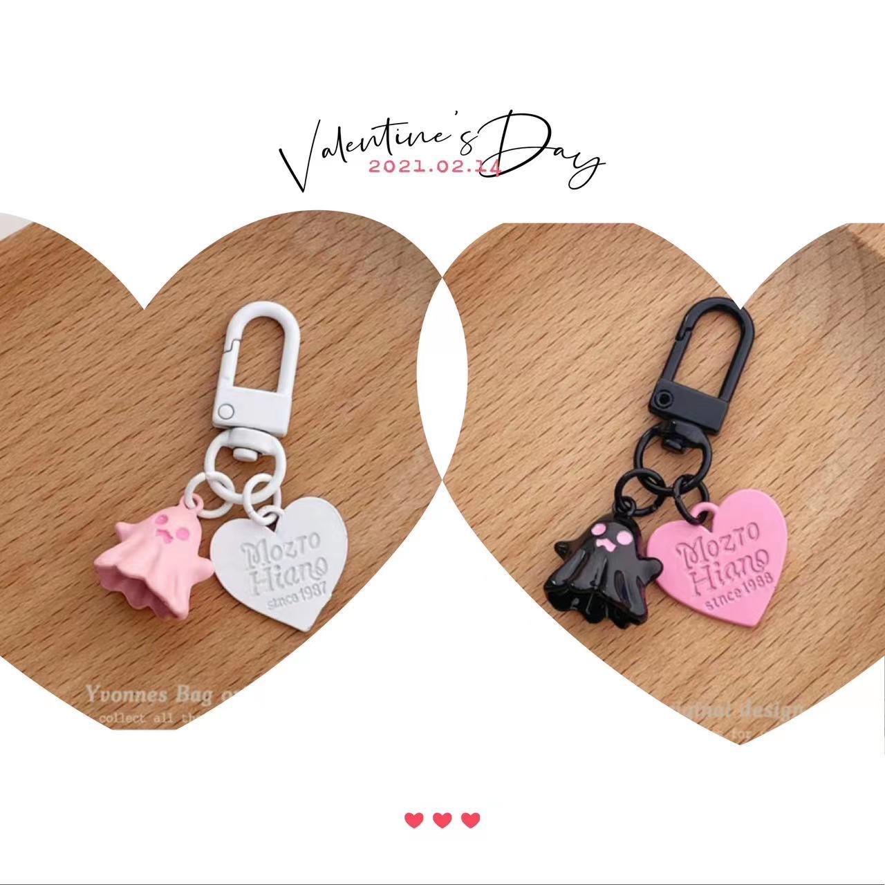 Kepribadian lucu manis keren hantu kecil cinta liontin merah muda hitam bulat gesper liontin gantungan kunci headset liontin