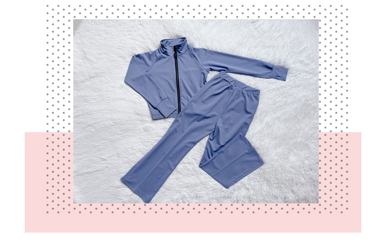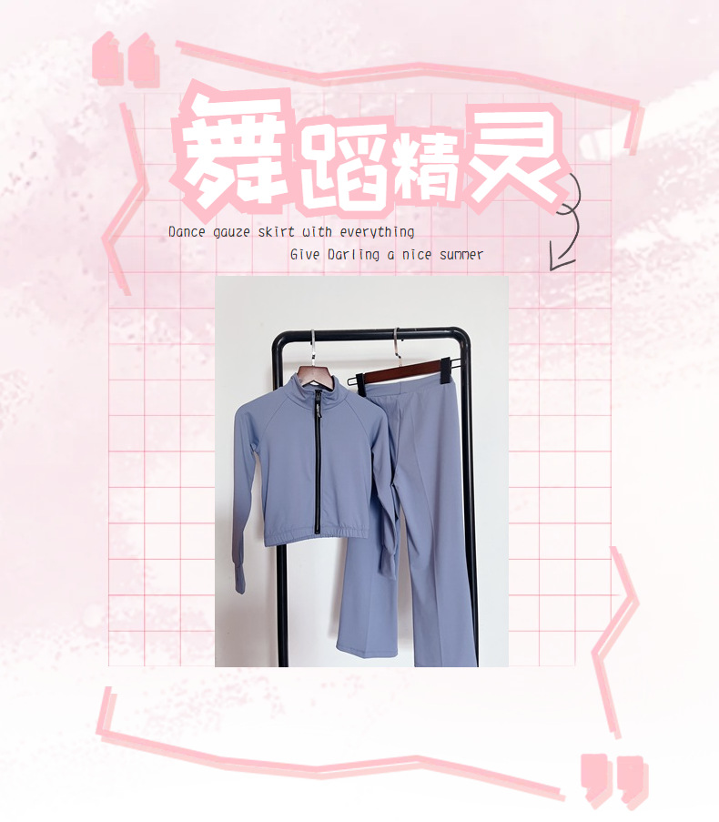 Baju dansa anak, baju katun buatan brokat baru, setelan kabut biru mint, pakaian latihan olahraga, diskon kelompok