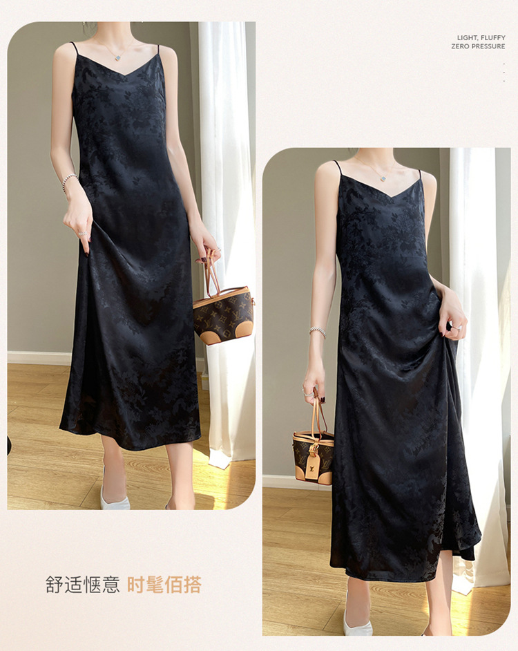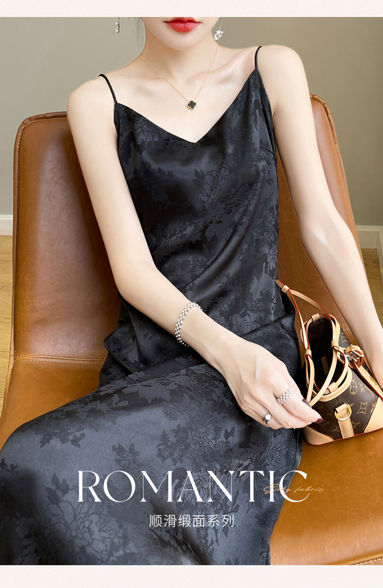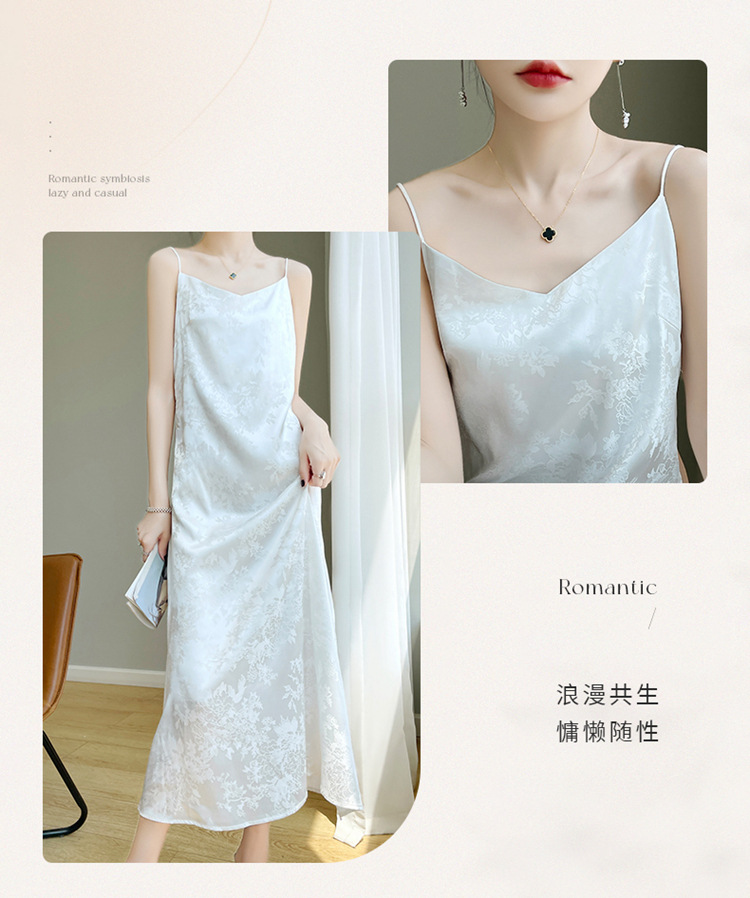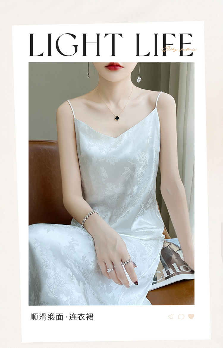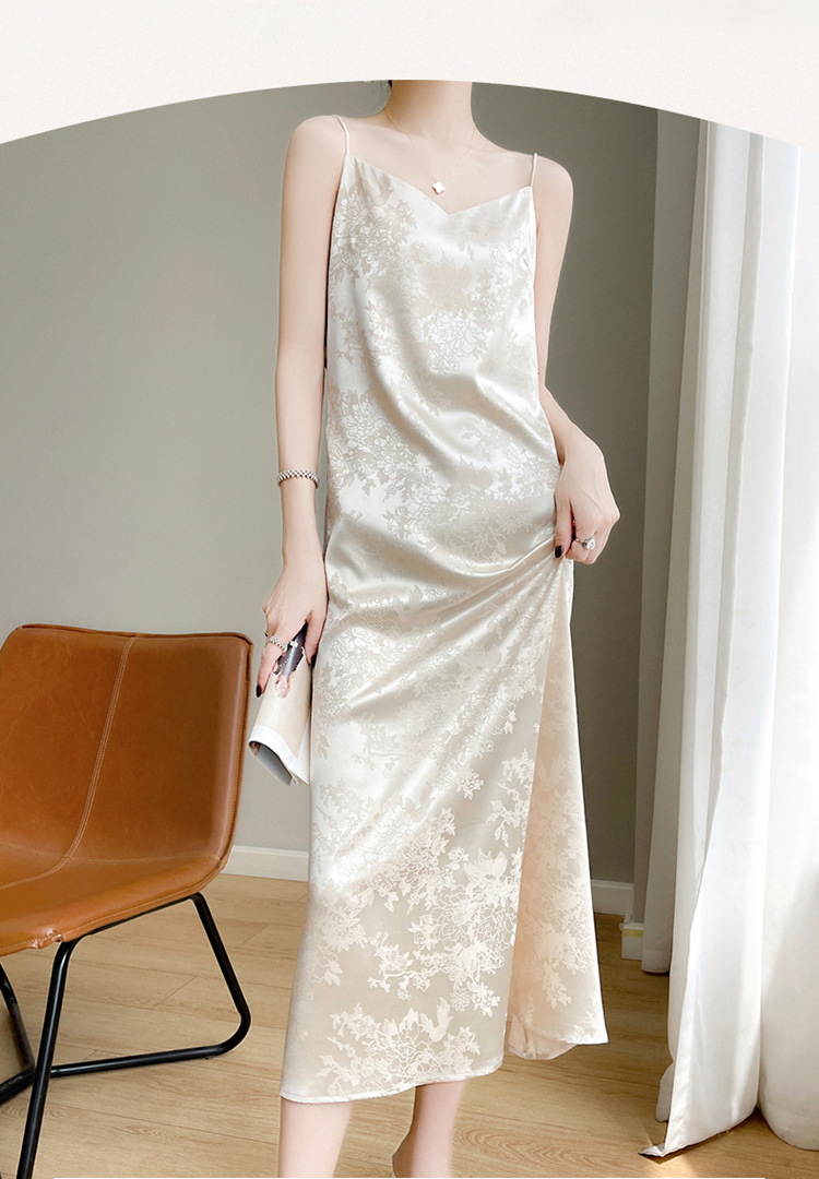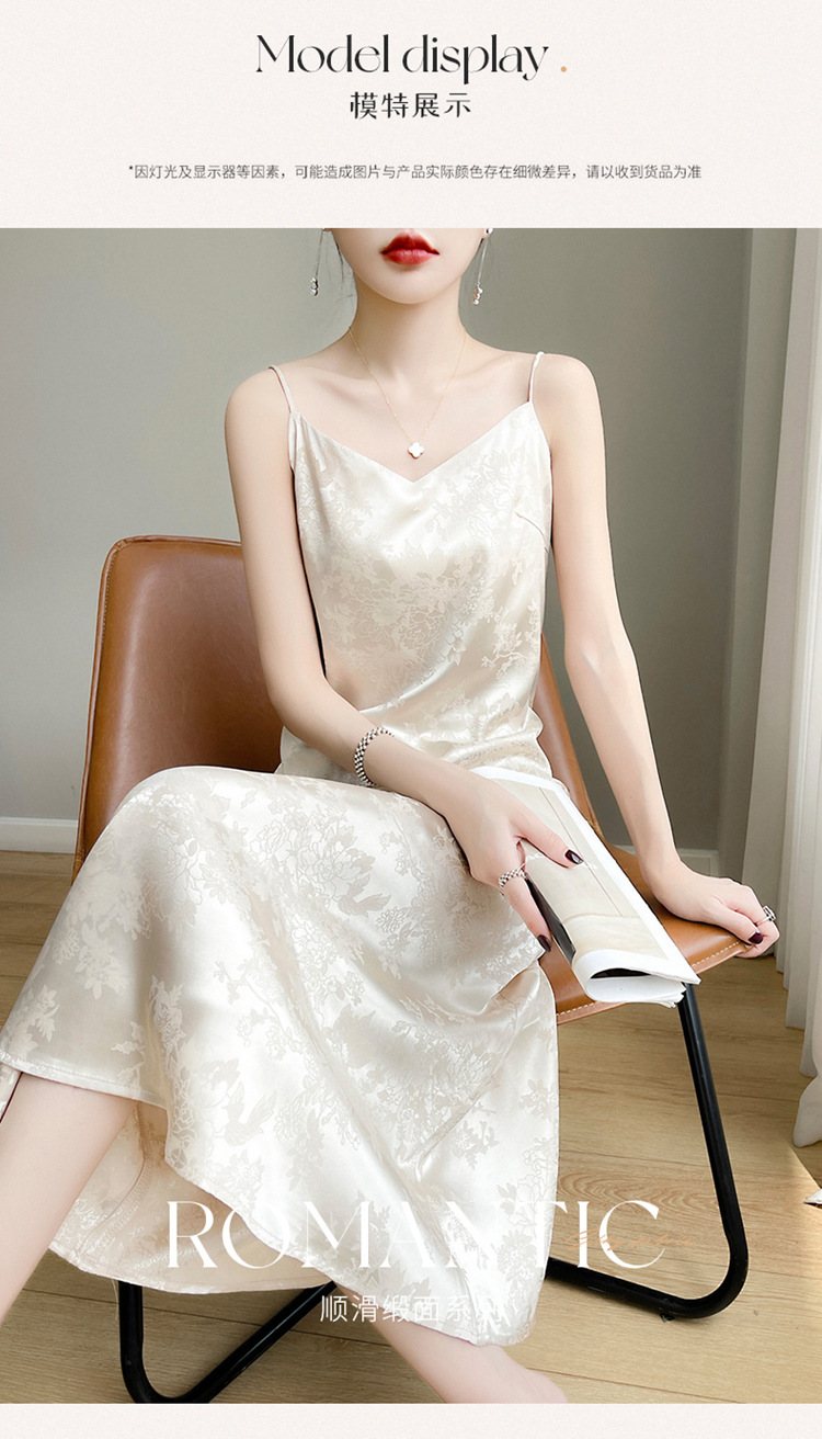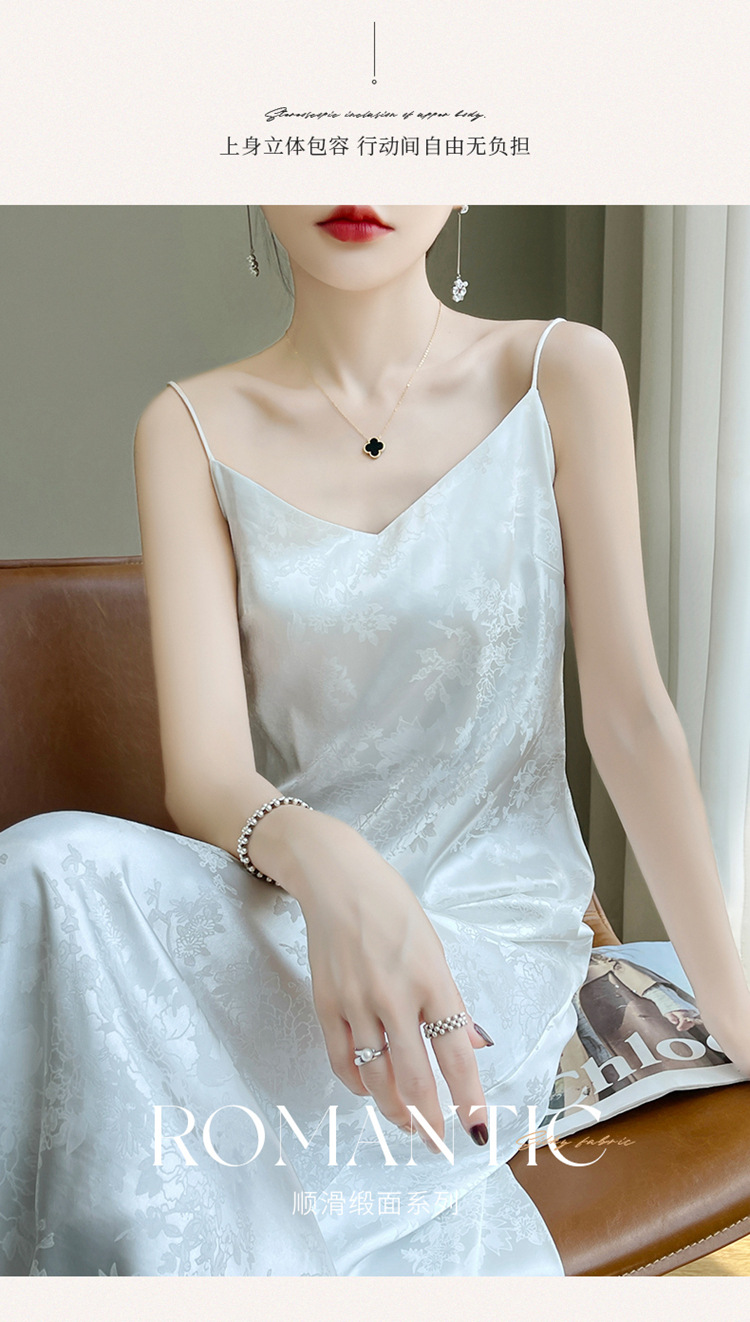 Gaun selempang sutra satin Perancis wanita musim semi dan musim panas rok jacquard asetat gaun rompi satin pelangsing