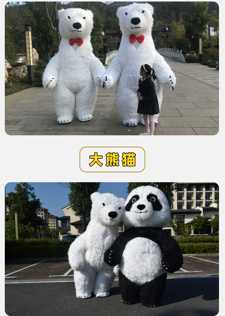 Boneka beruang kutub tiup kartun panda raksasa pakaian beruang Marsha teddy beruang besar telinga monyet Santa Claus King Kong boneka