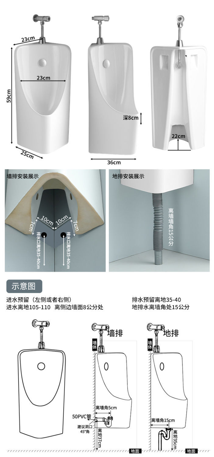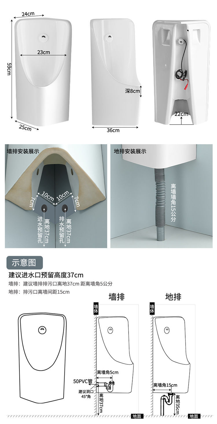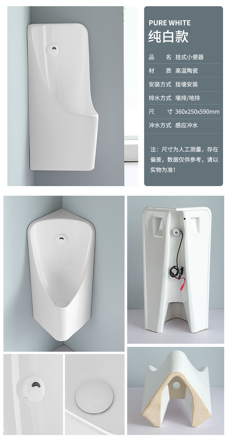 Toilet gantung sudut dinding segitiga, urinal rumah tangga induksi kecil apartemen keramik dewasa
