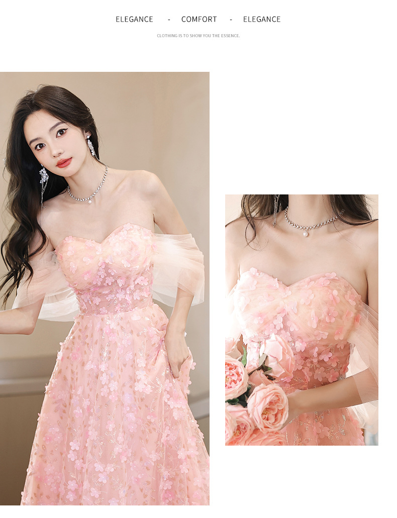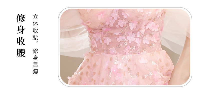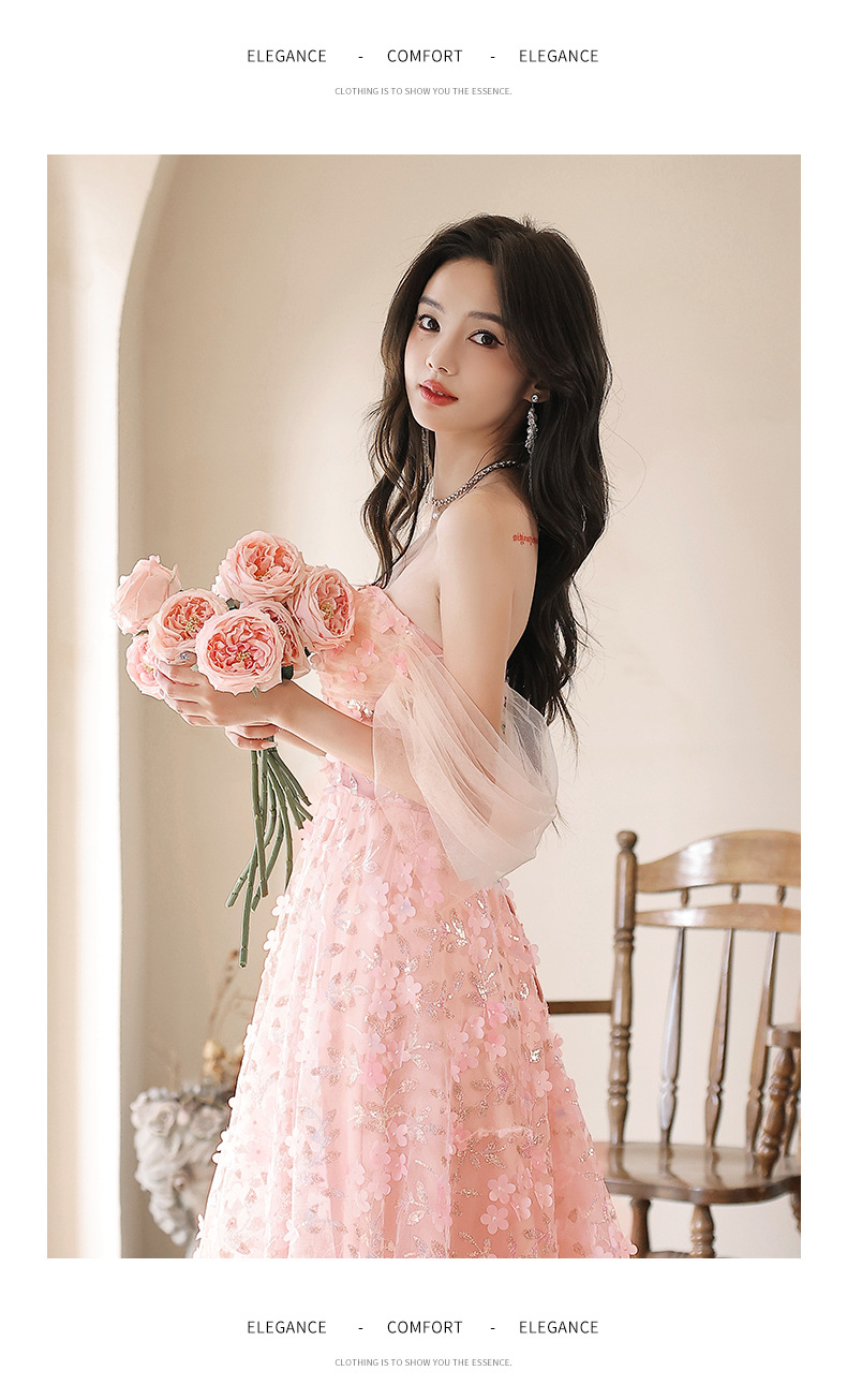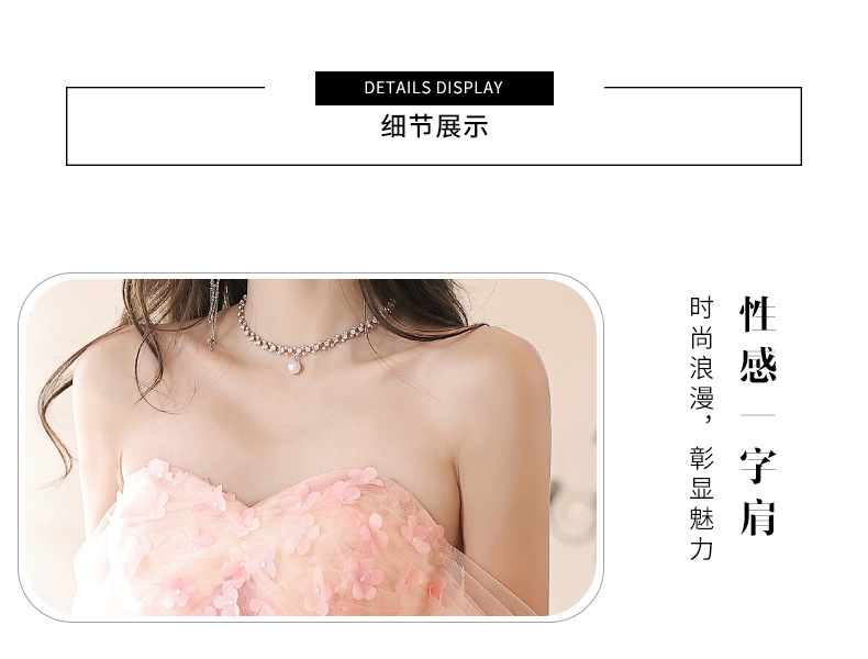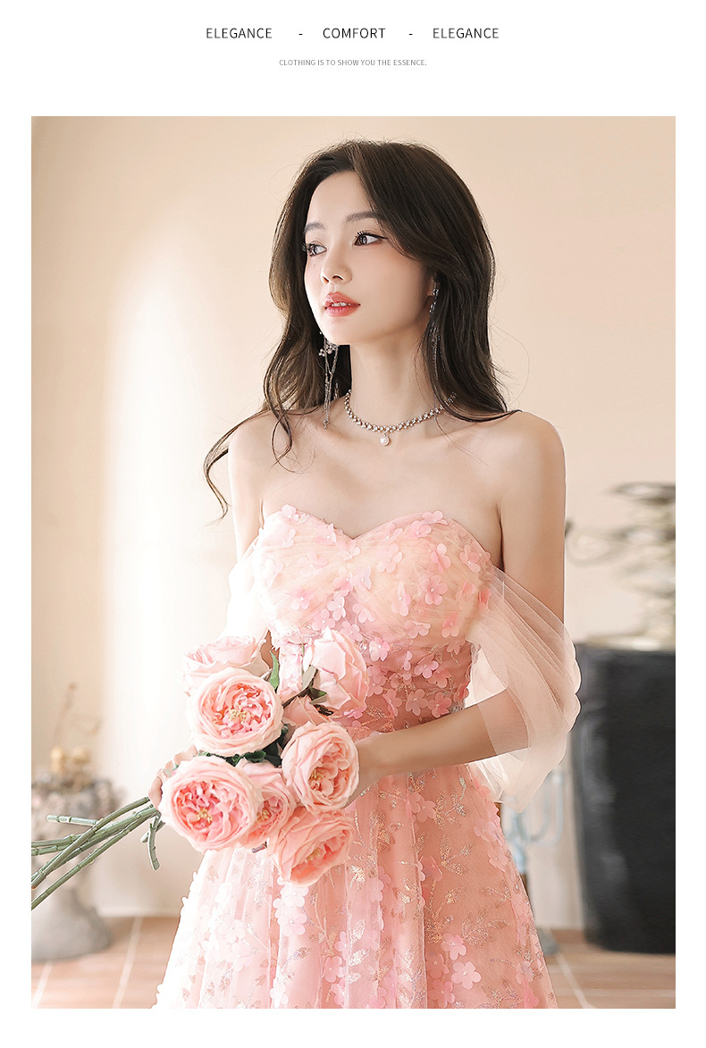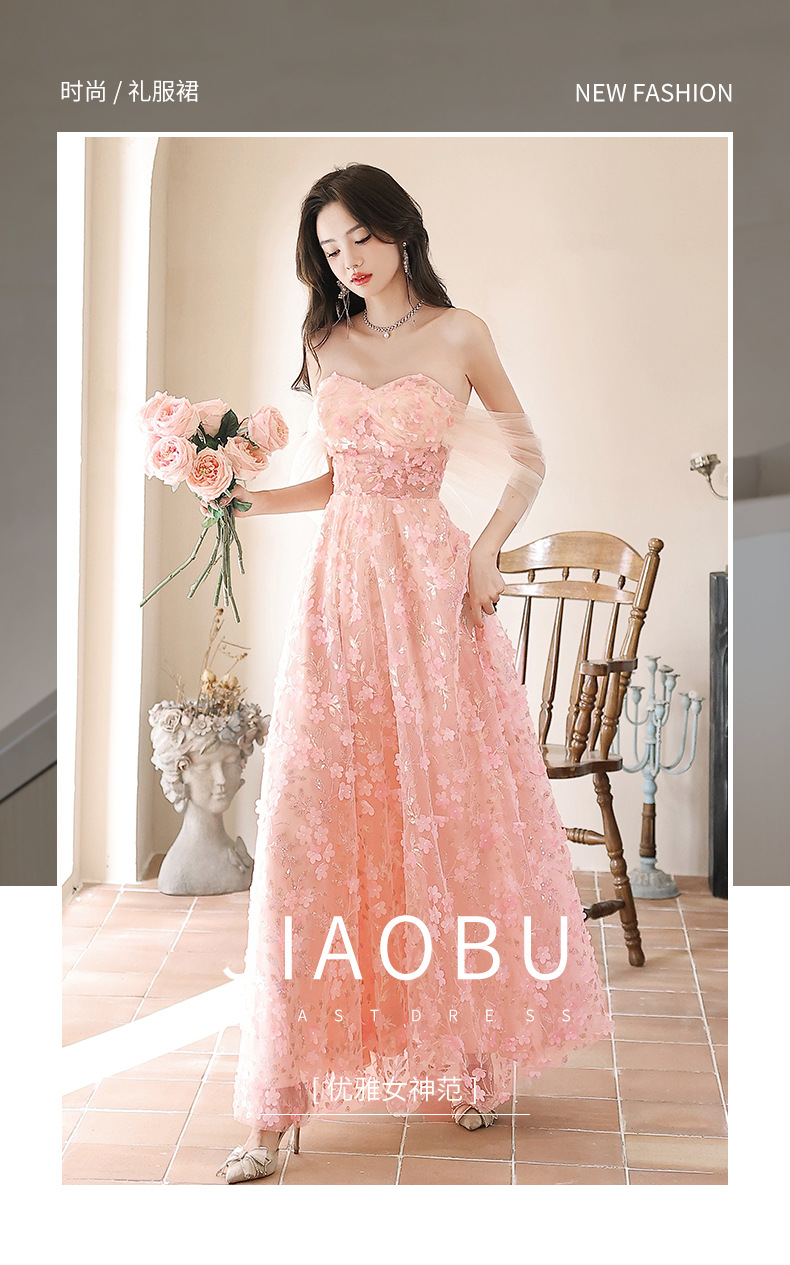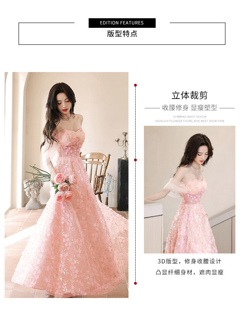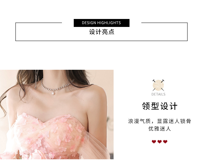 Gaun malam merah muda wanita kelas atas ringan mewah niche high-end tube top ulang tahun Super peri cahaya benang kelopak gaun tes seni vokal