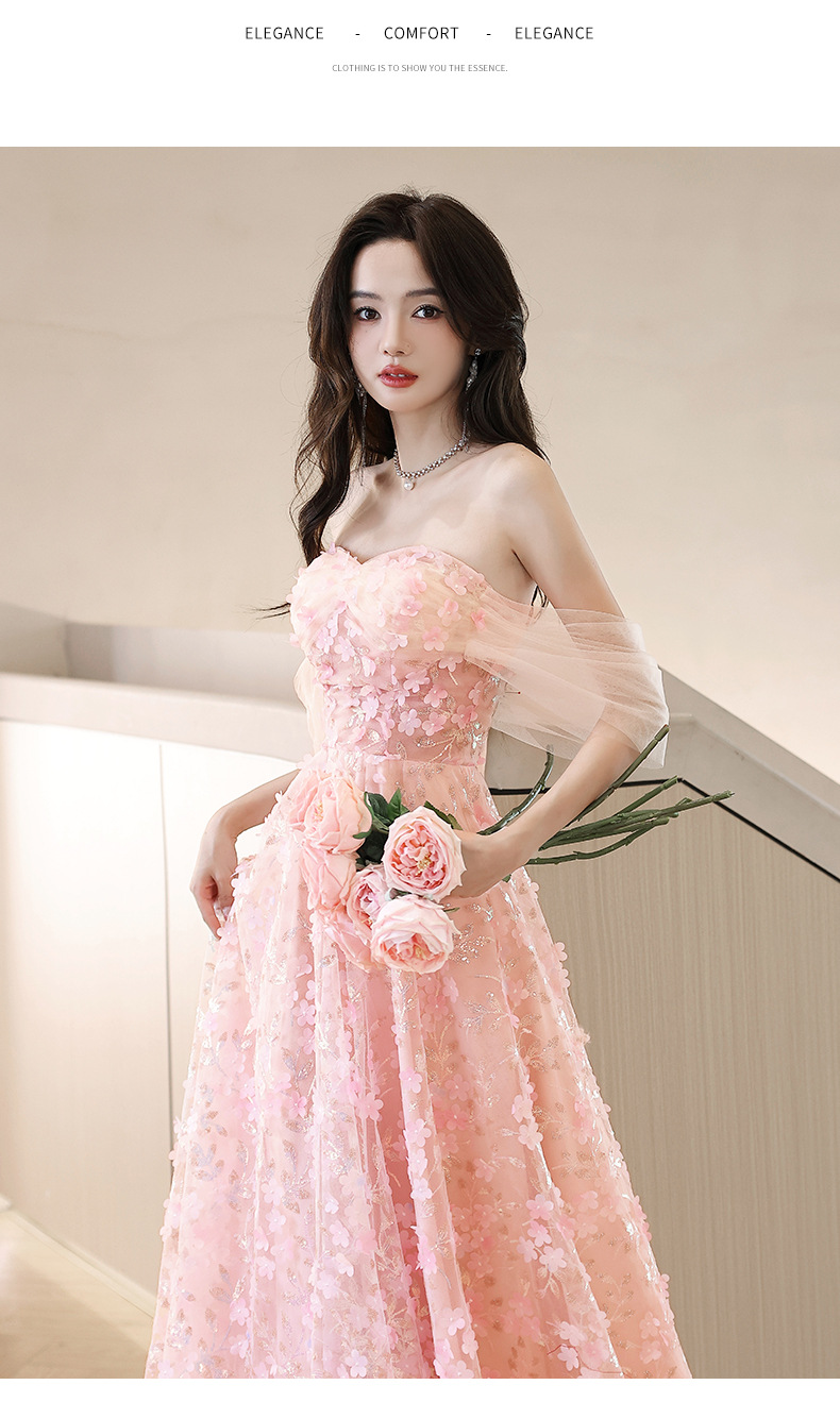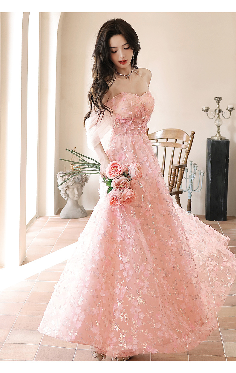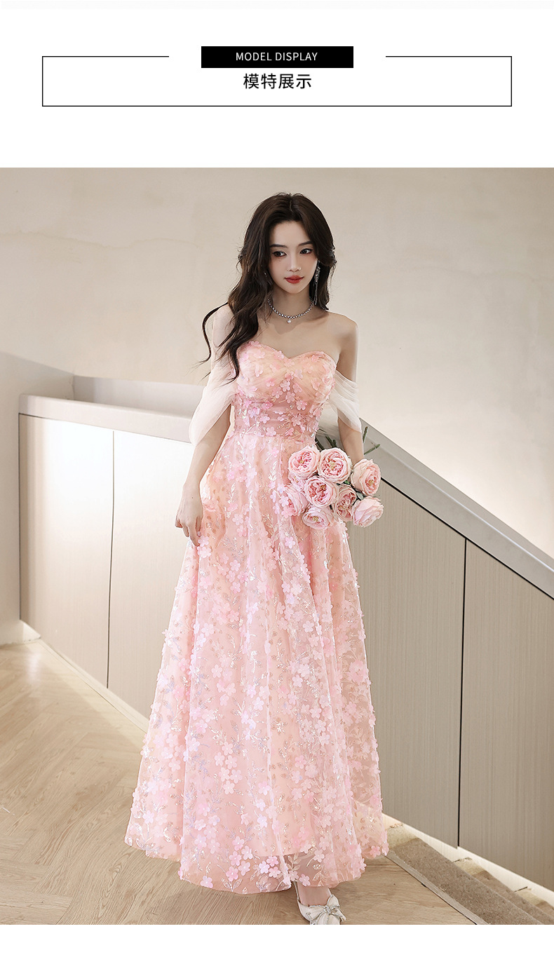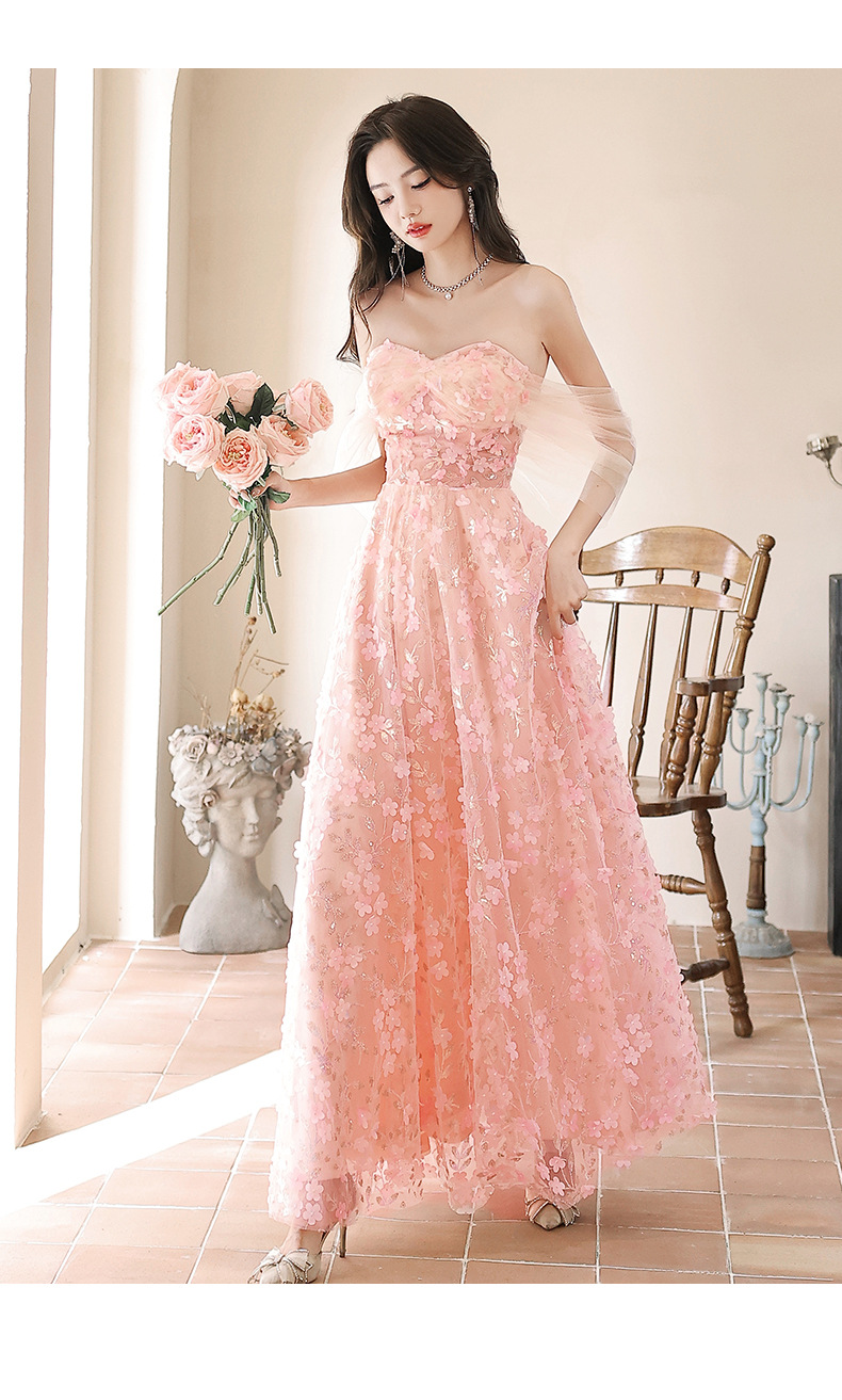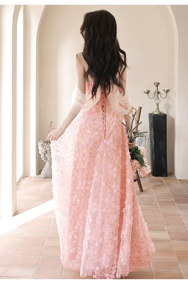 Gaun malam merah muda wanita kelas atas ringan mewah niche high-end tube top ulang tahun Super peri cahaya benang kelopak gaun tes seni vokal