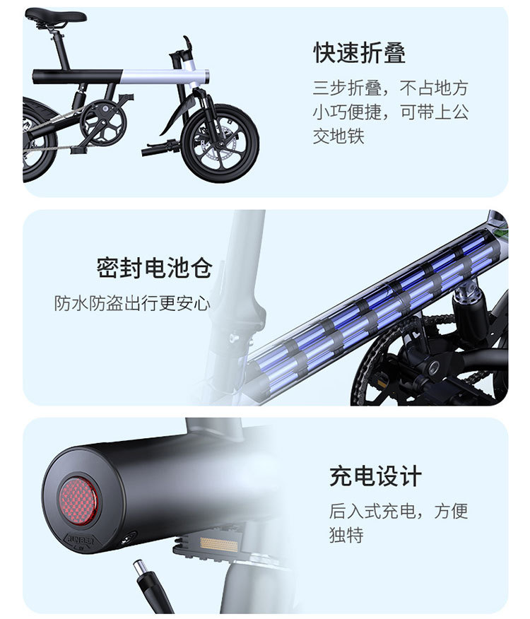 Sepeda Lipat Listrik Bertenaga Baterai Lithium Mengke, Kecepatan Variabel, Skuter Mobilitas Roda Dua, Alloy Aluminium 14-Inci