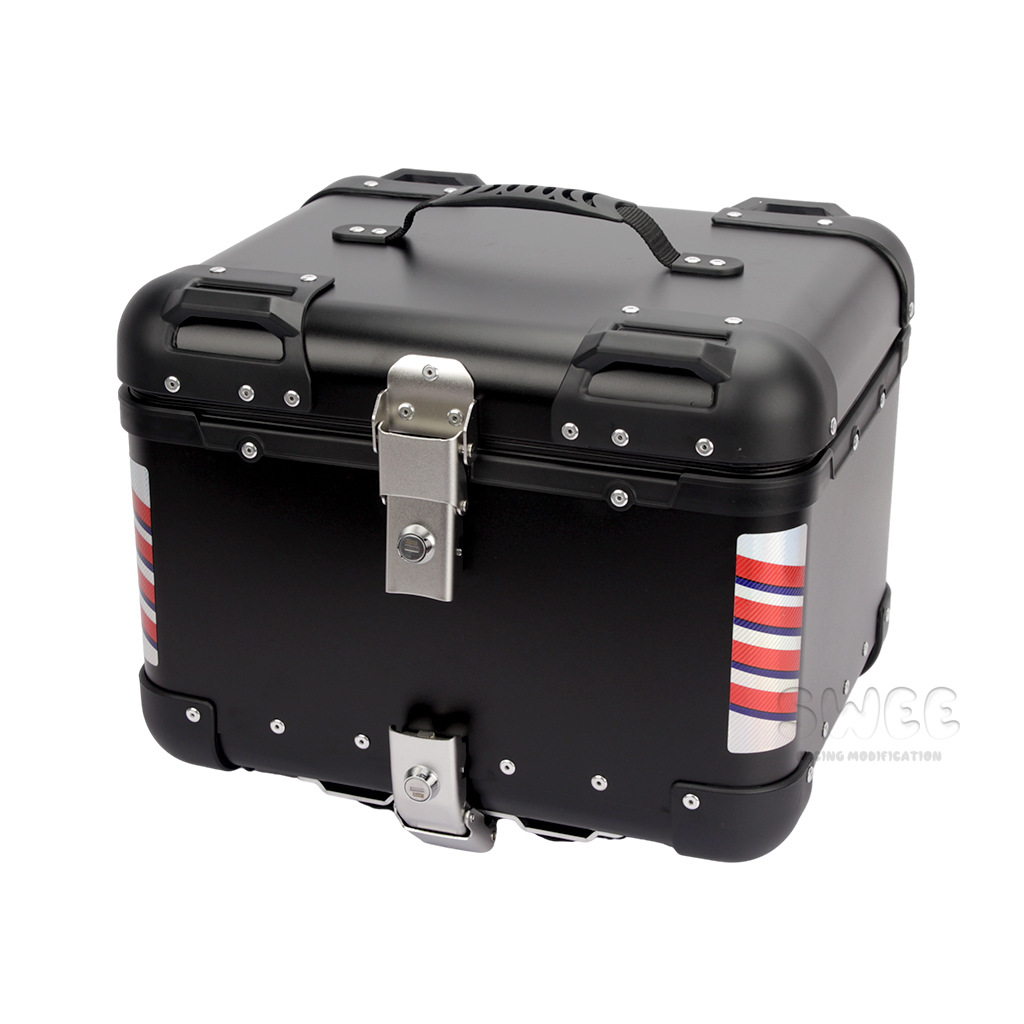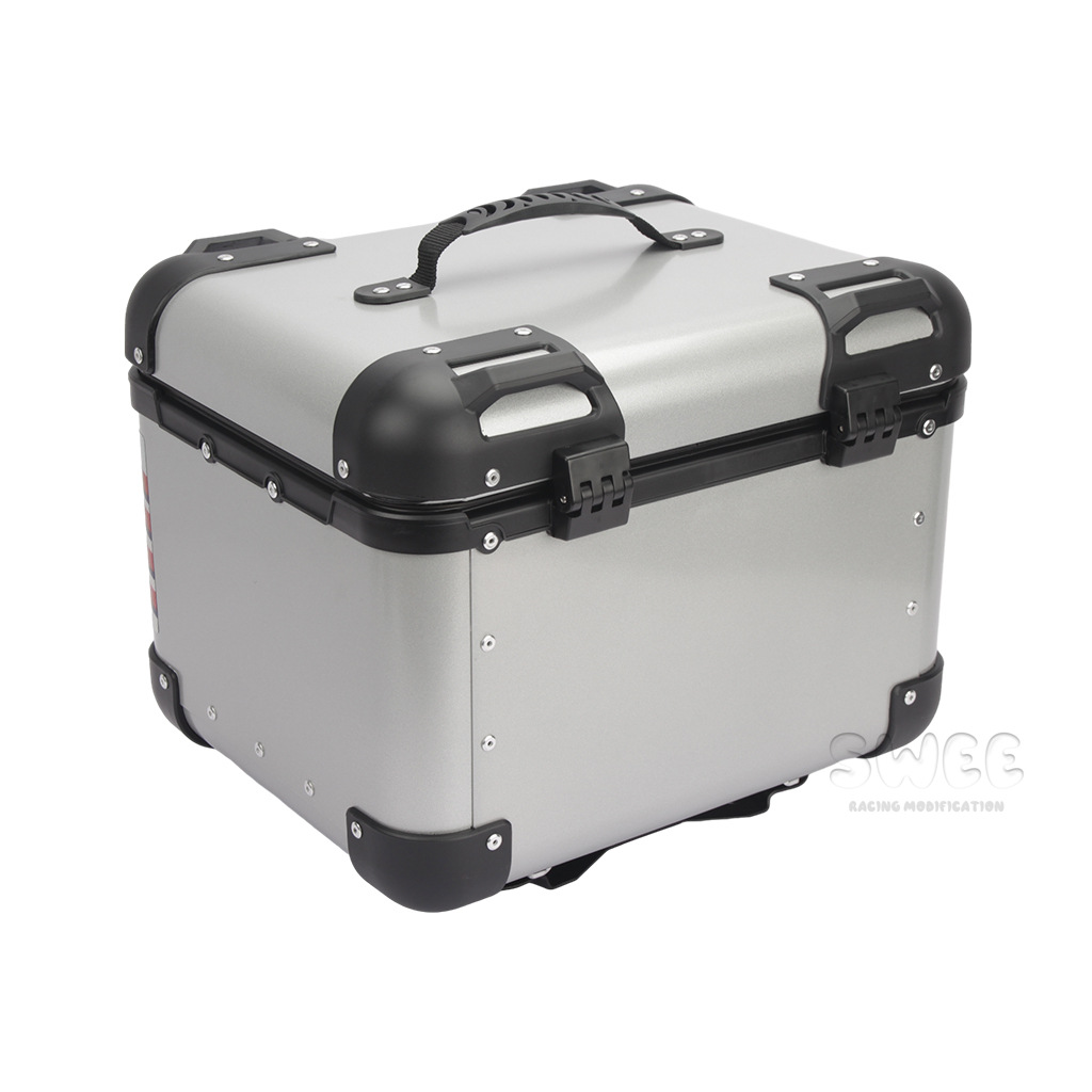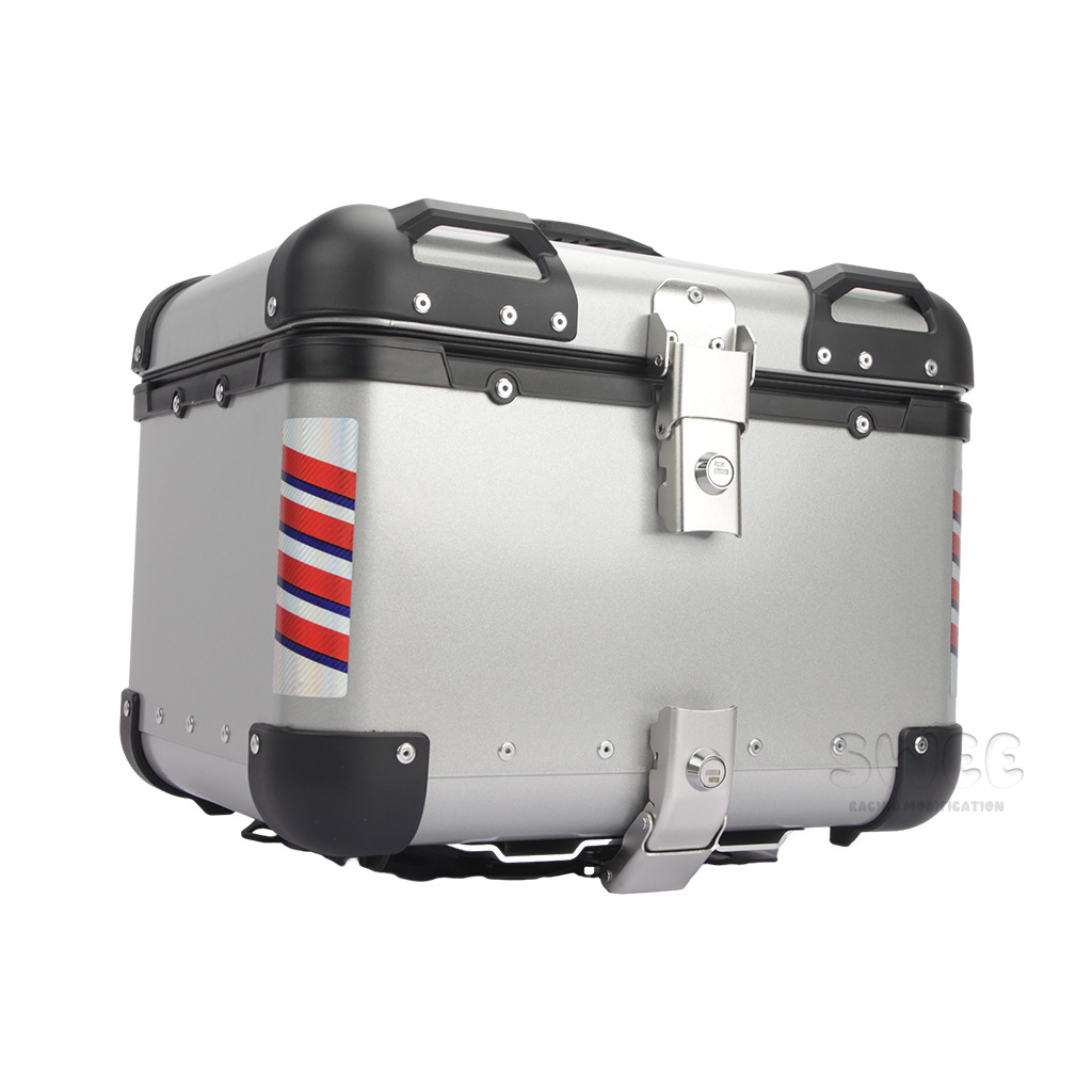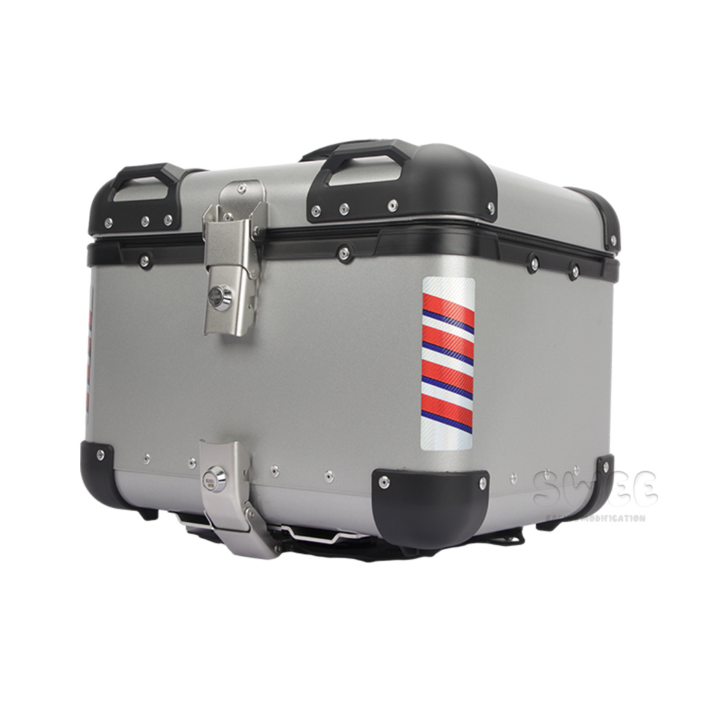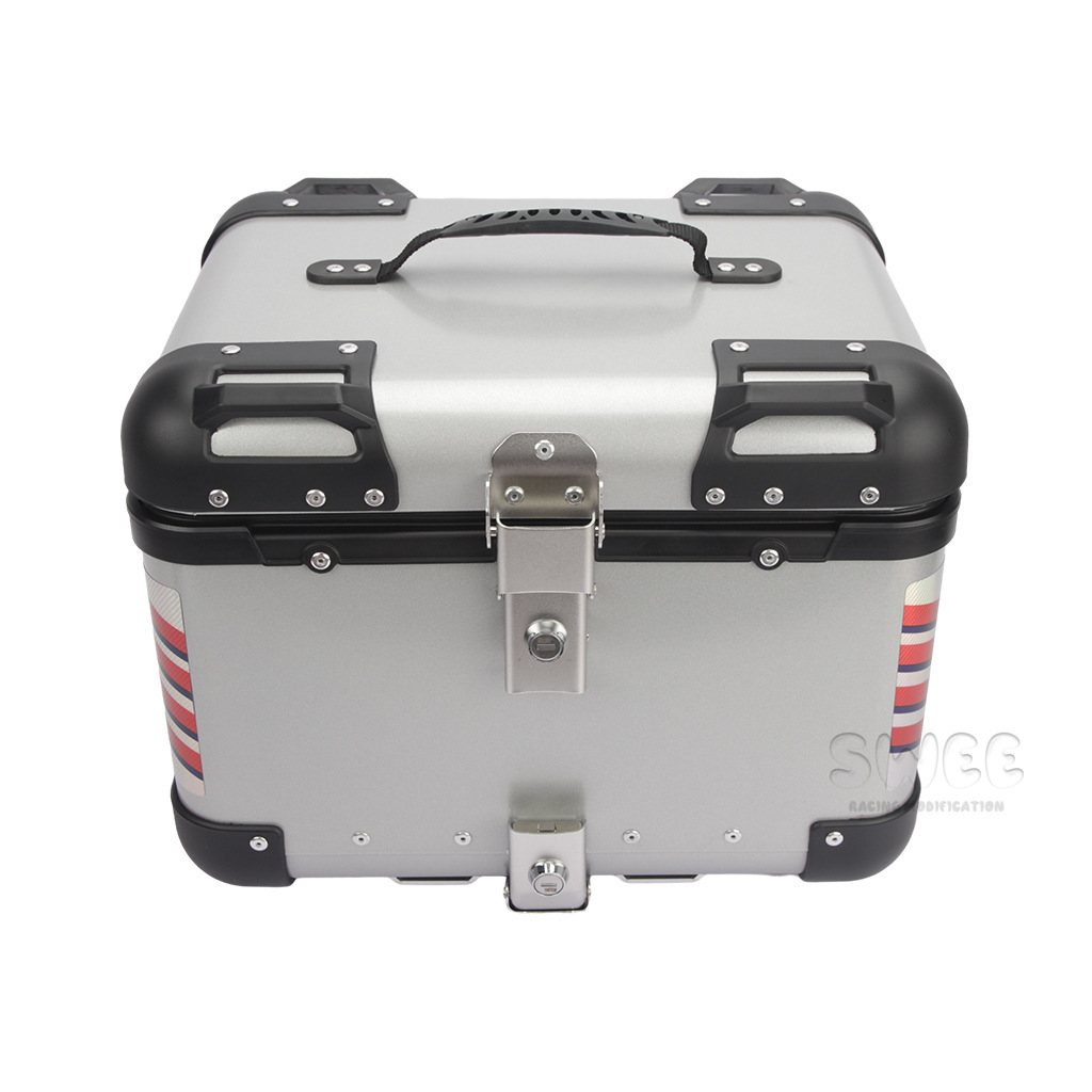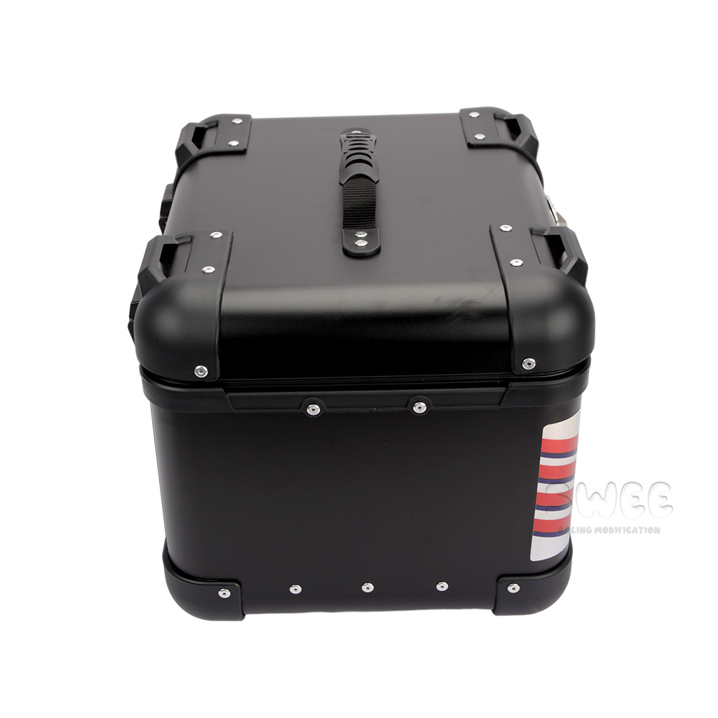 Kotak bagasi motor 40L/45L bahan aluminium alloy sudut membulat, kotak bagasi kendaraan listrik, kotak bagasi mobil baterai, stiker kotak bagasi belakang