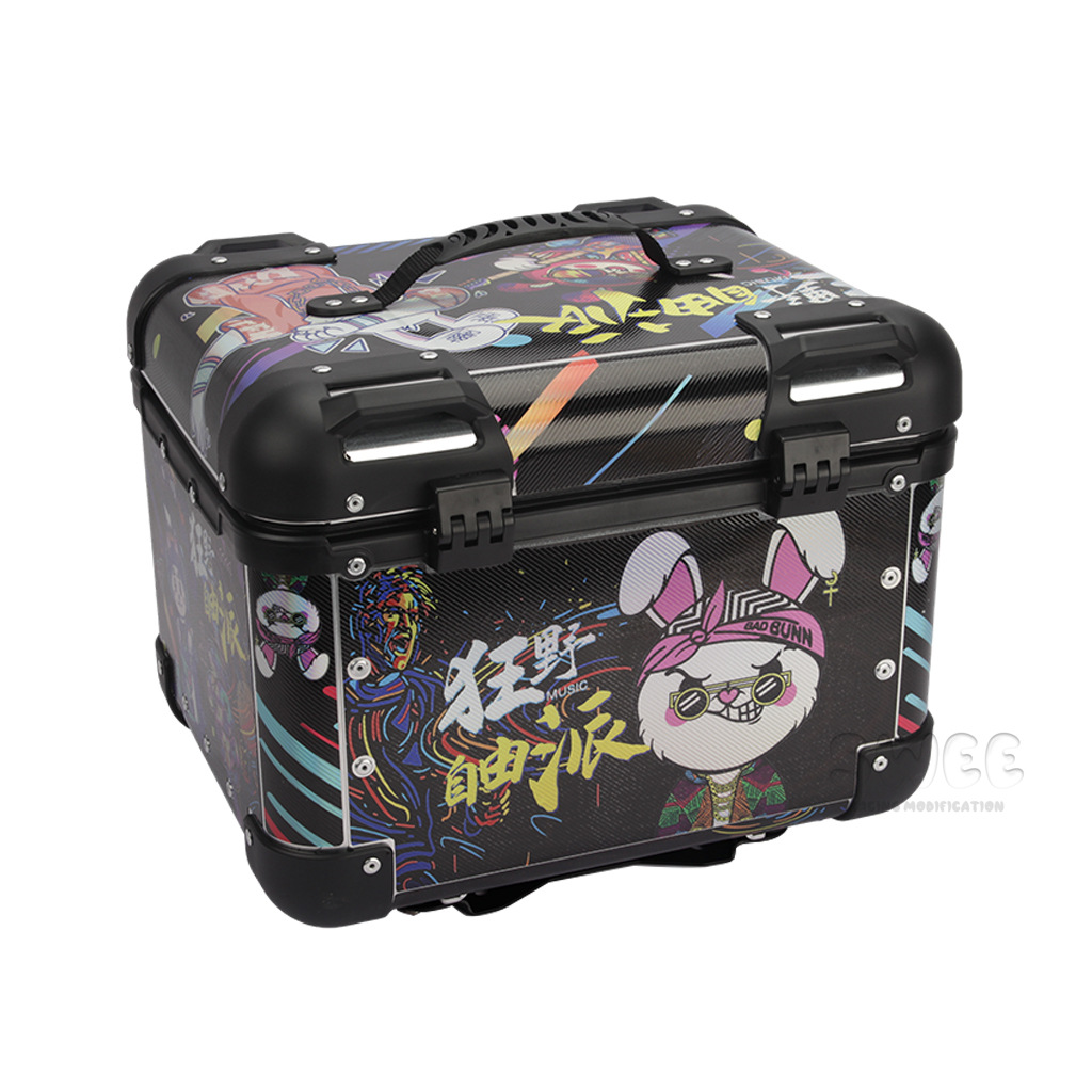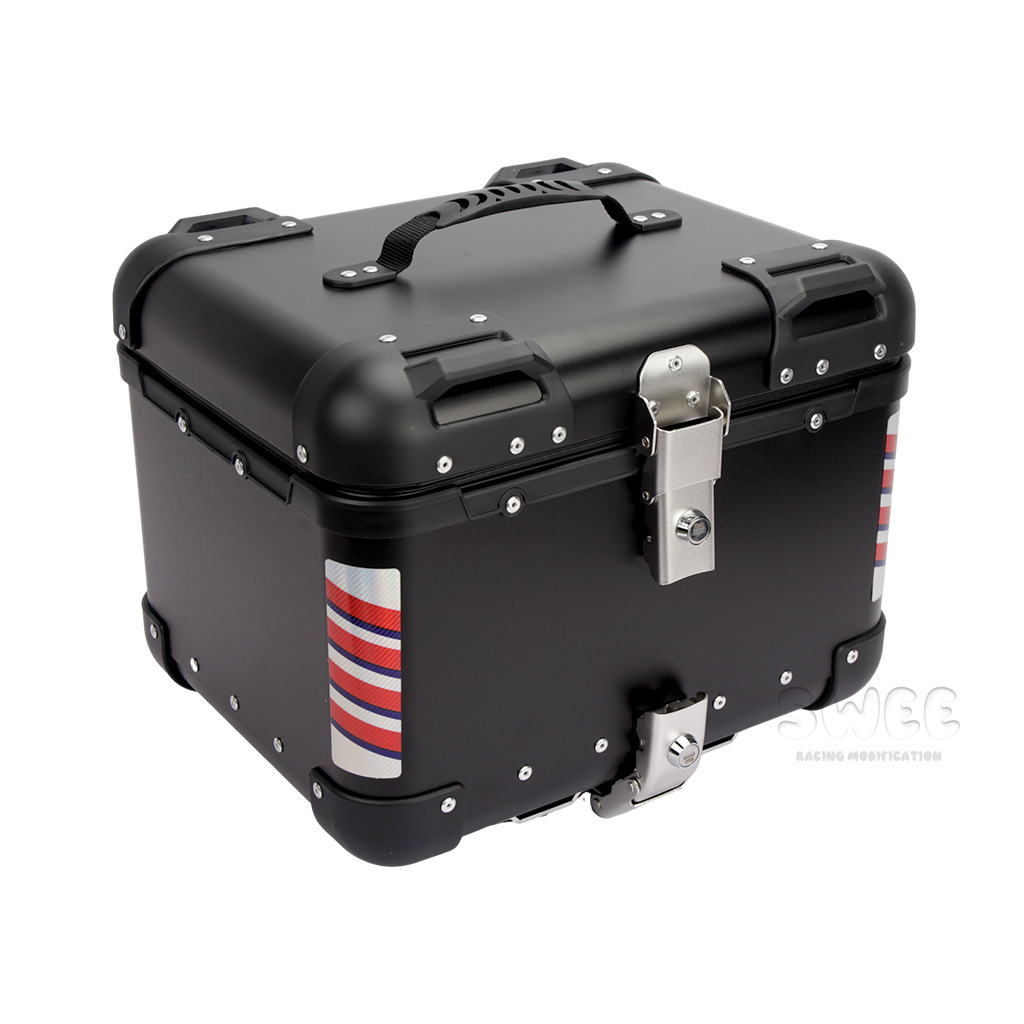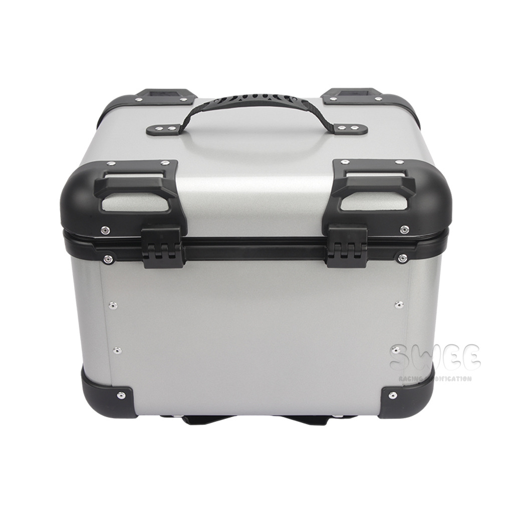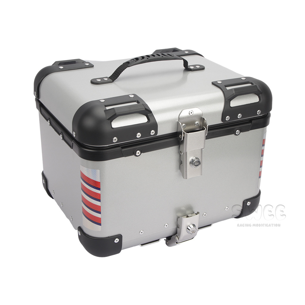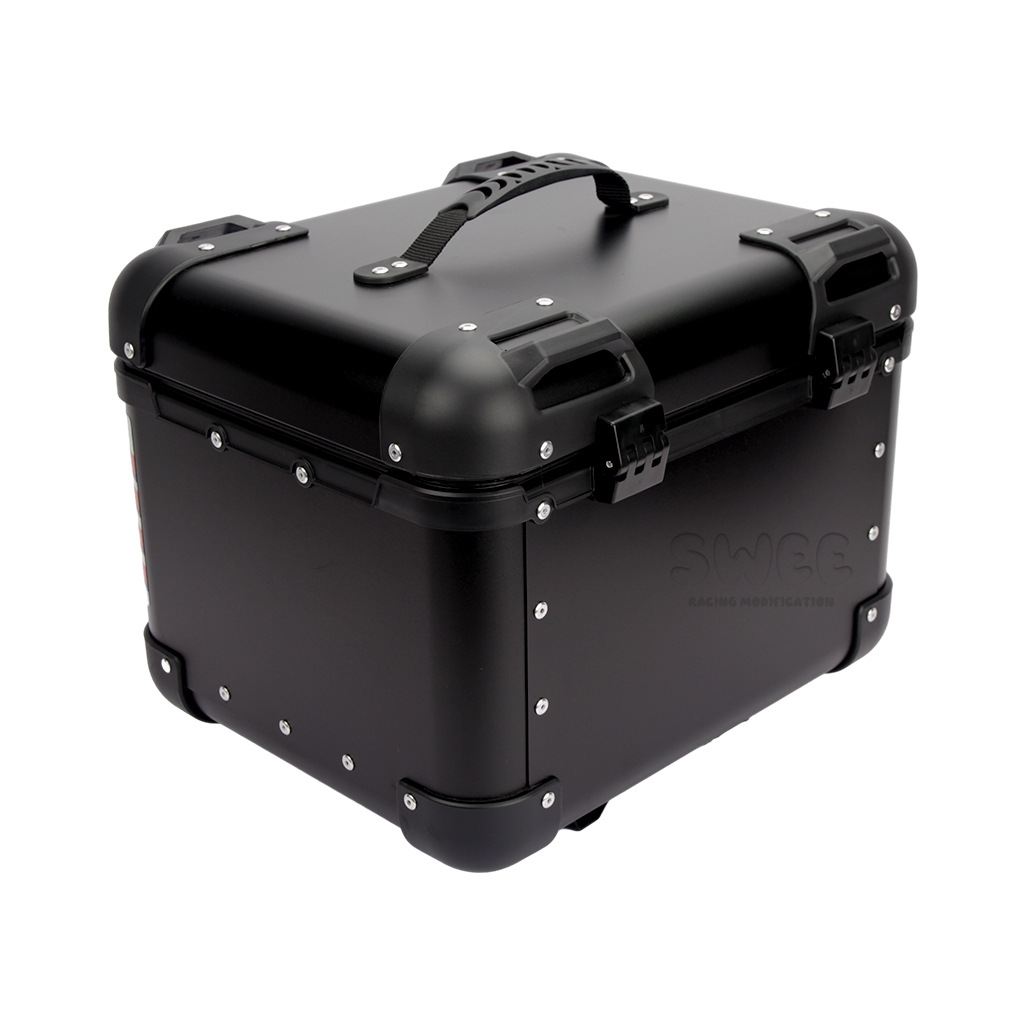 Kotak bagasi motor 40L/45L bahan aluminium alloy sudut membulat, kotak bagasi kendaraan listrik, kotak bagasi mobil baterai, stiker kotak bagasi belakang