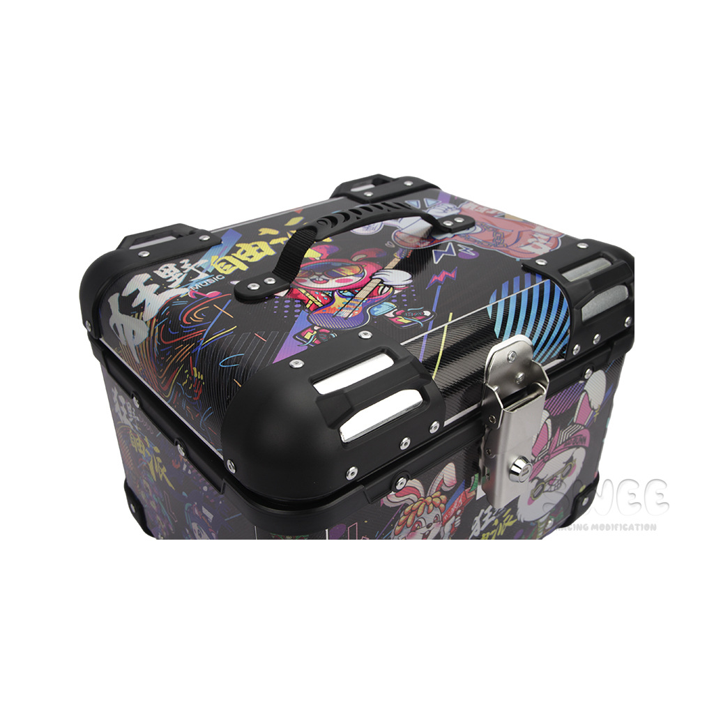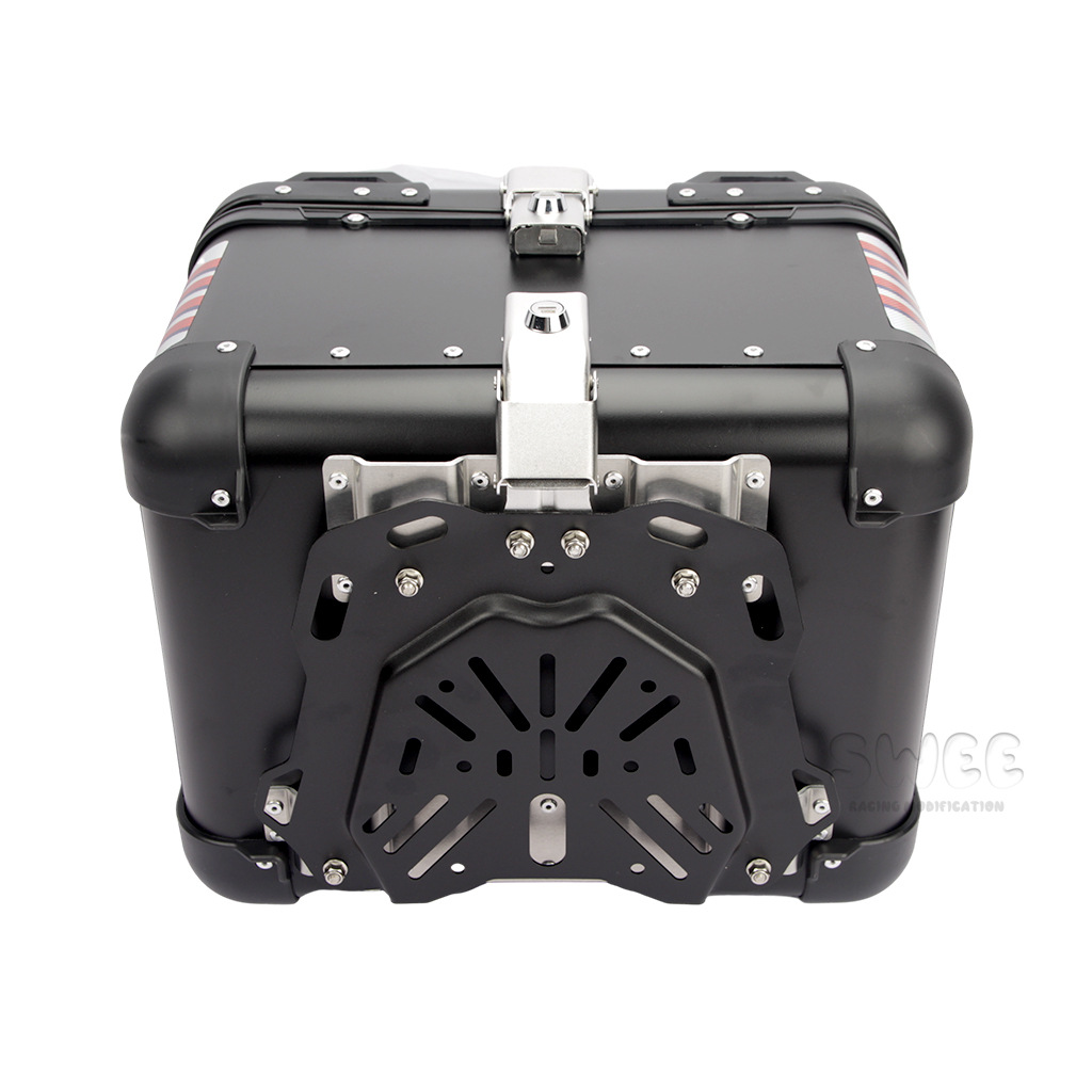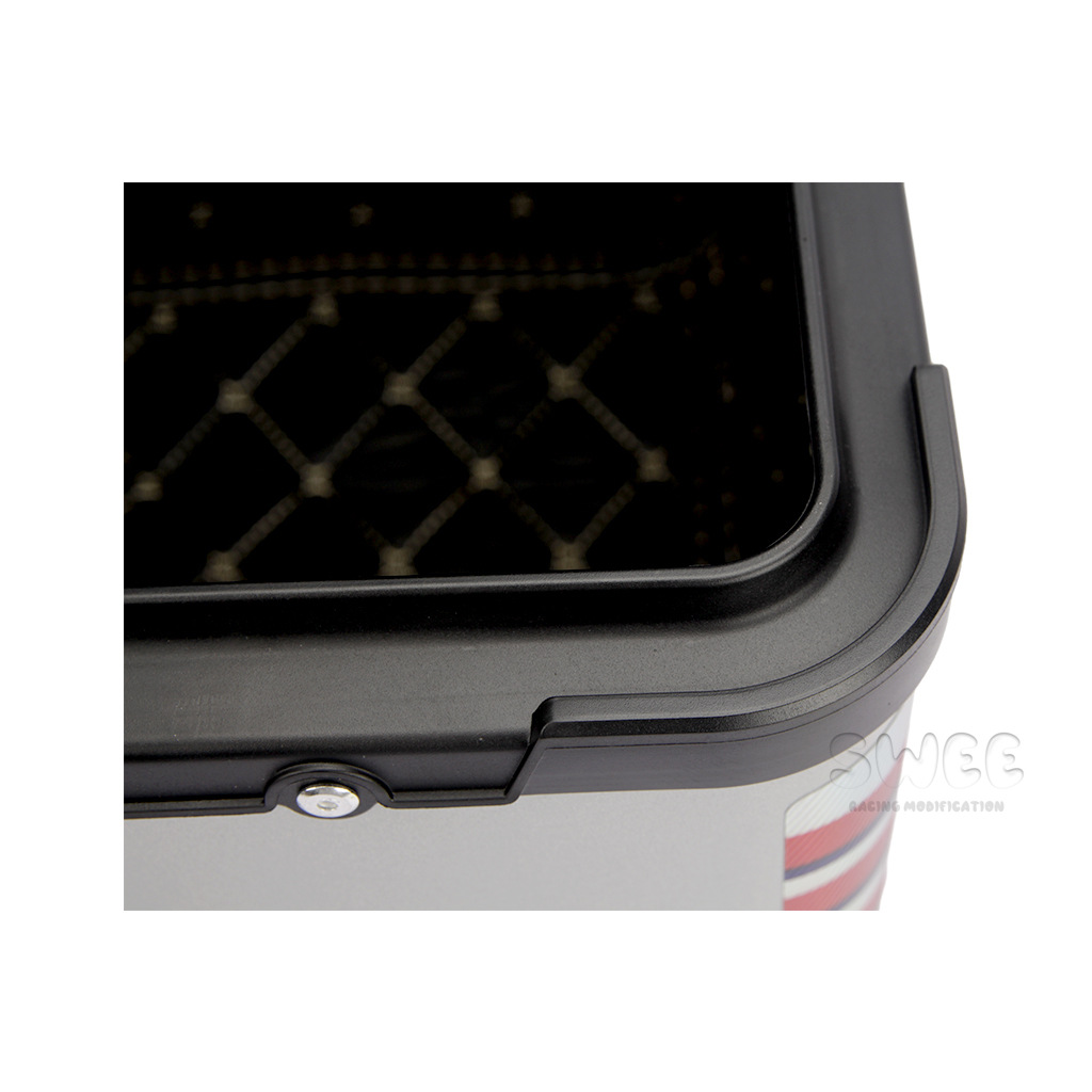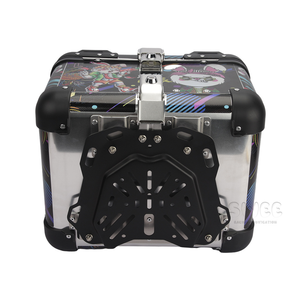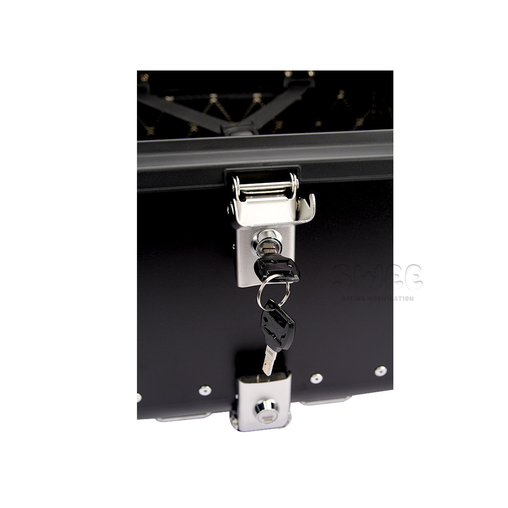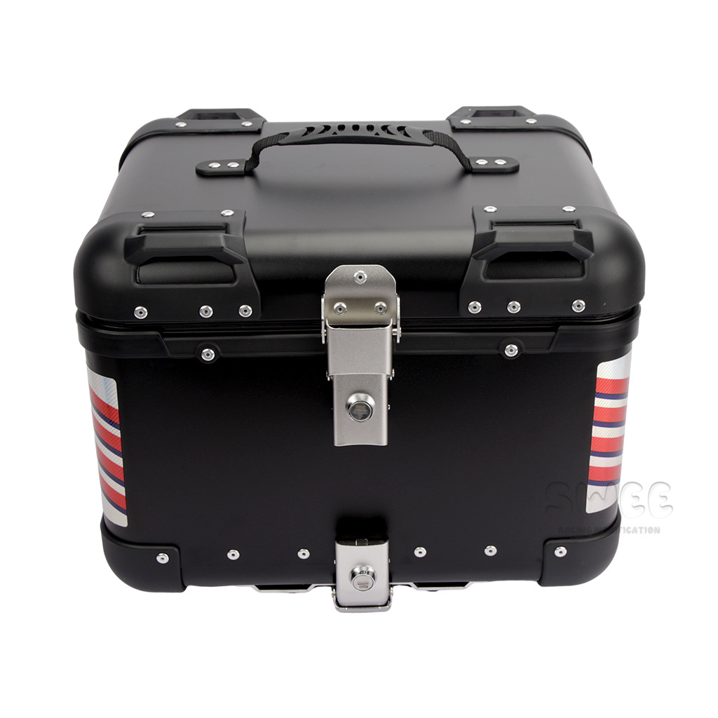 Kotak bagasi motor 40L/45L bahan aluminium alloy sudut membulat, kotak bagasi kendaraan listrik, kotak bagasi mobil baterai, stiker kotak bagasi belakang