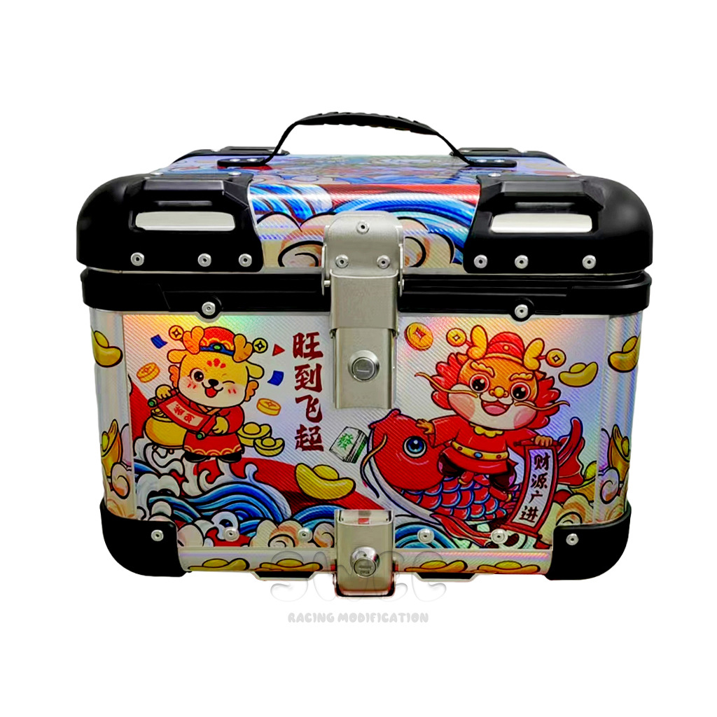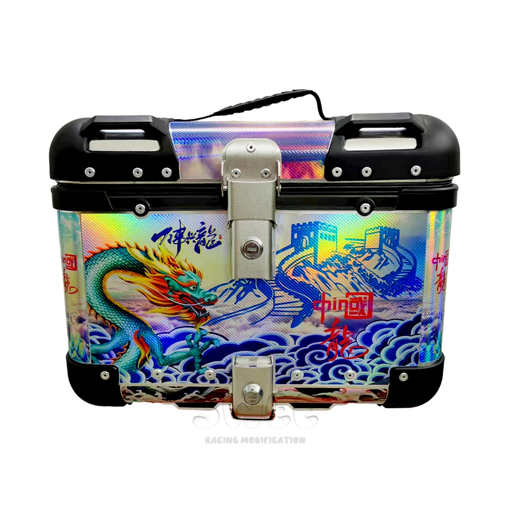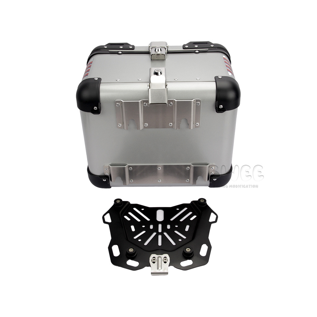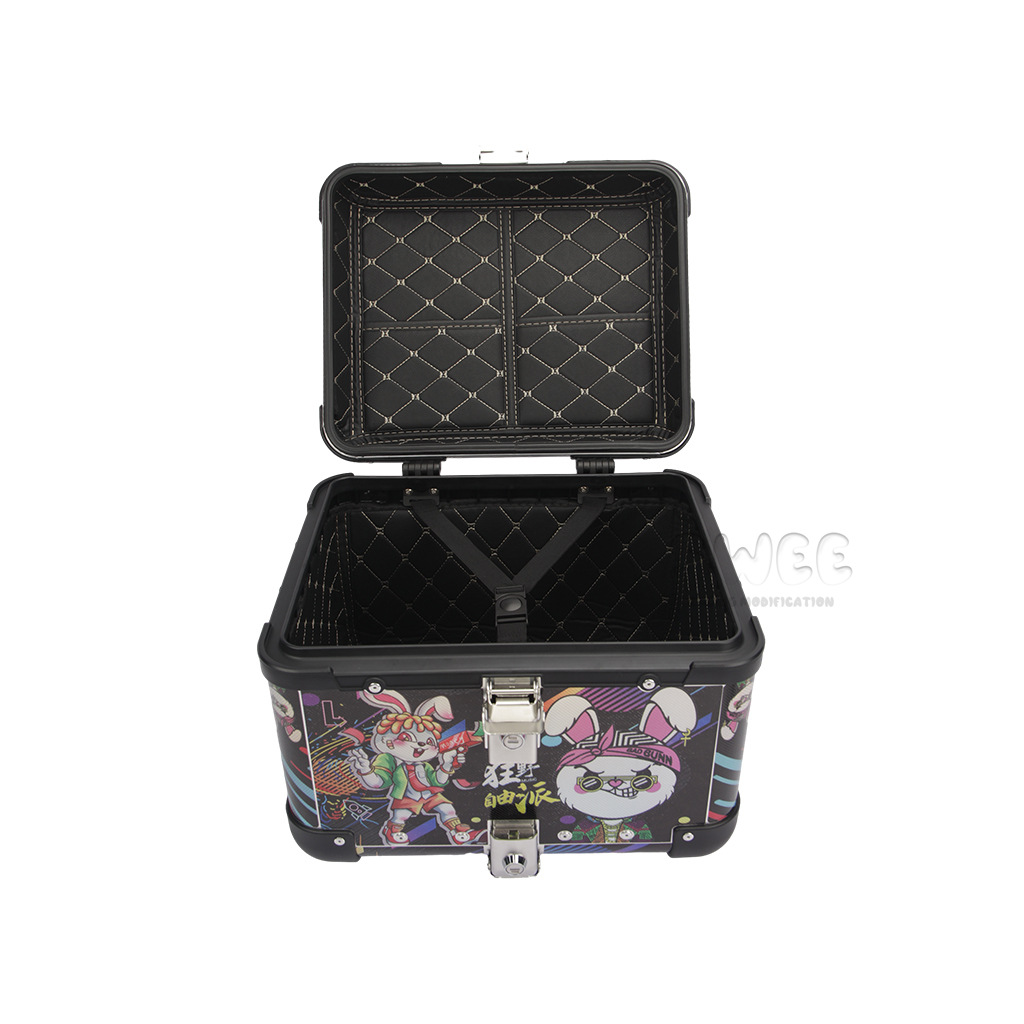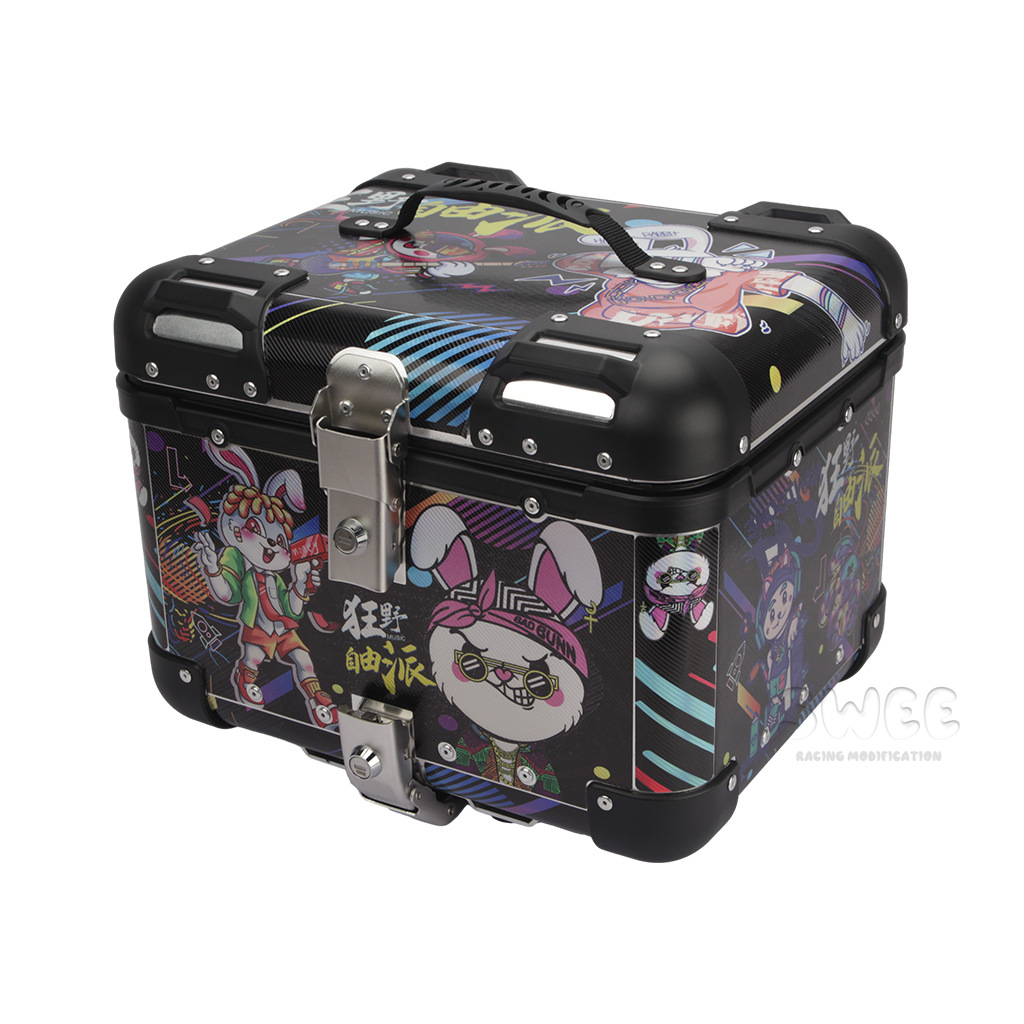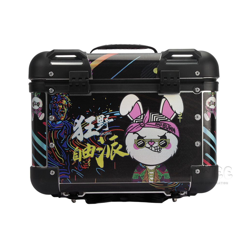 Kotak bagasi motor 40L/45L bahan aluminium alloy sudut membulat, kotak bagasi kendaraan listrik, kotak bagasi mobil baterai, stiker kotak bagasi belakang