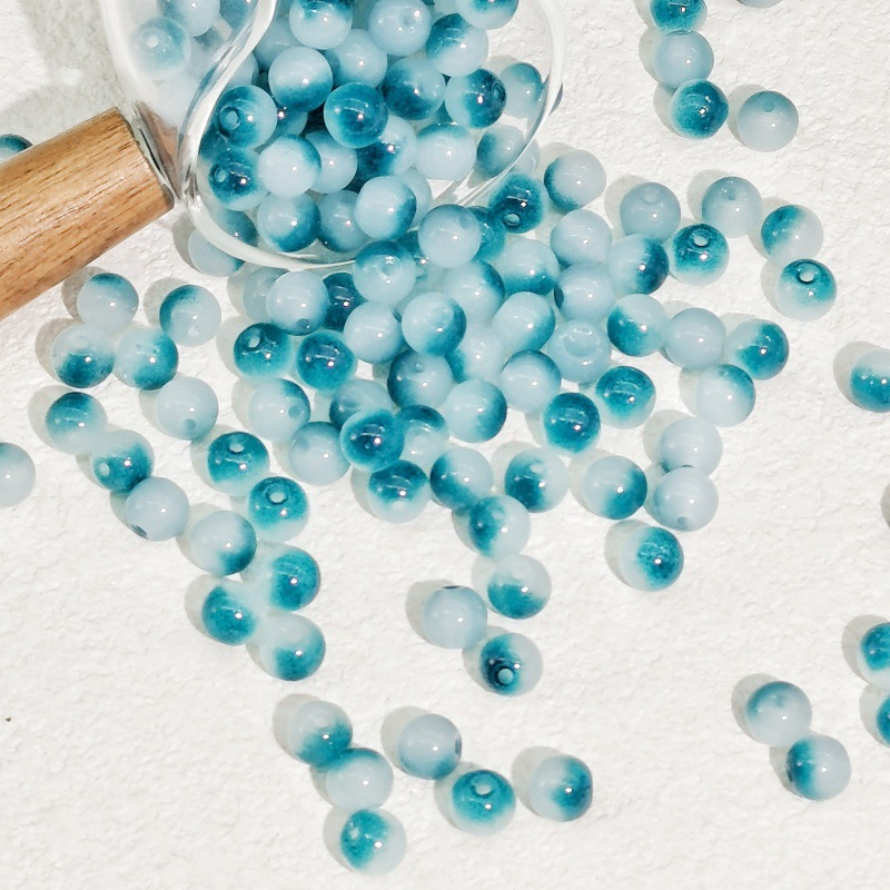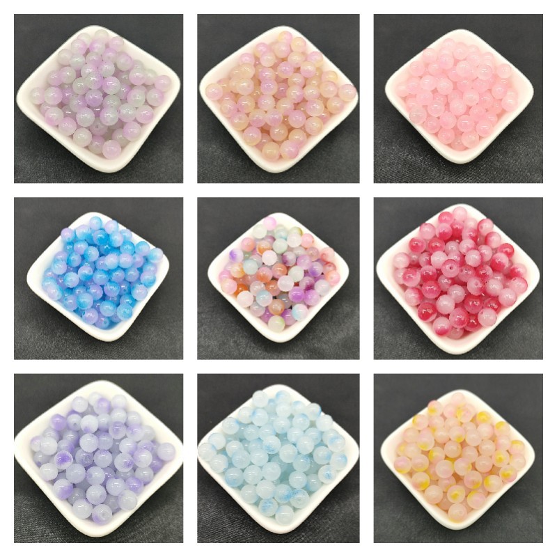 8mm dua warna manik-manik kaca gradien warna manik-manik longgar buatan tangan diy gelang Aksesori grosir kalung perhiasan bahan manik-manik