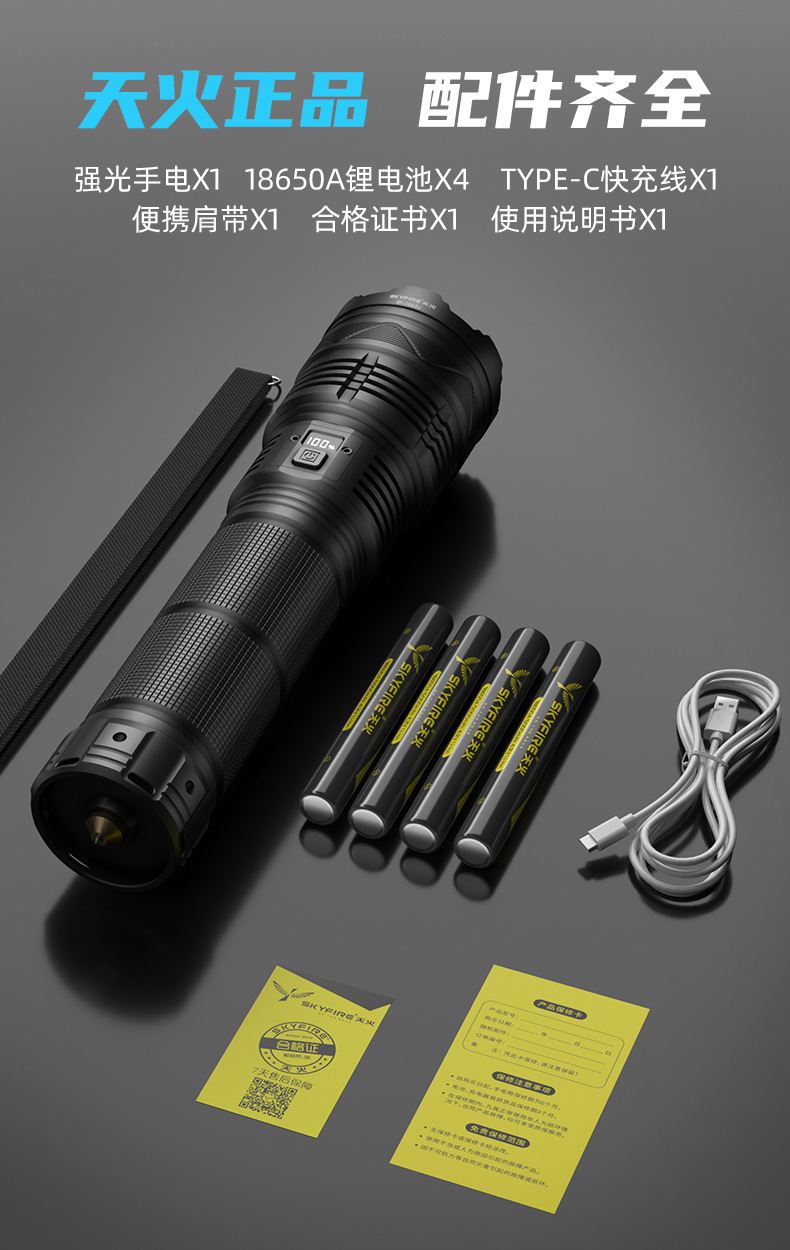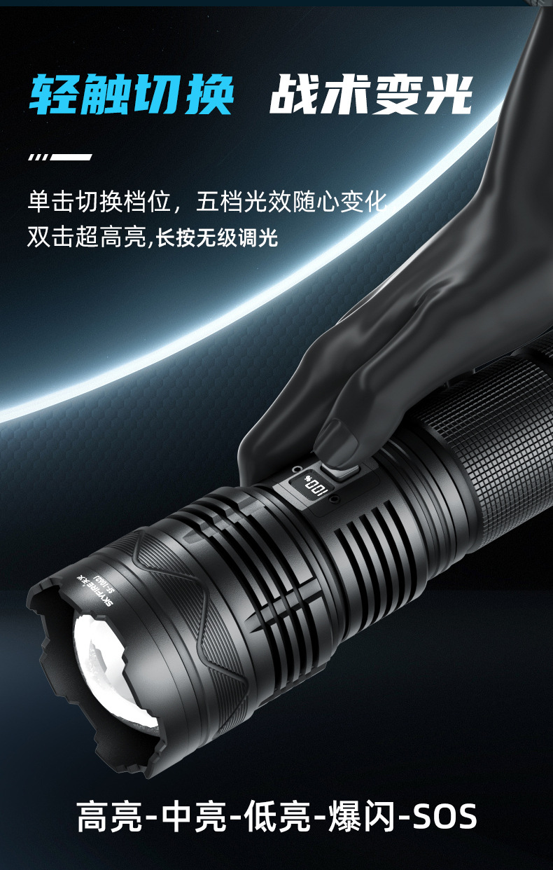 Sky fire melalui Sky gun senter lampu kuat pengisian super terang luar ruangan laser jarak jauh cahaya kuat bertenaga tinggi