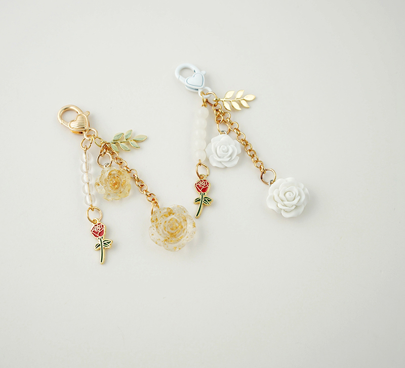Ins liontin mobil ornamen U disk, aksesori gantungan kunci mobil gesper pintu logam paduan resin mawar Jepang