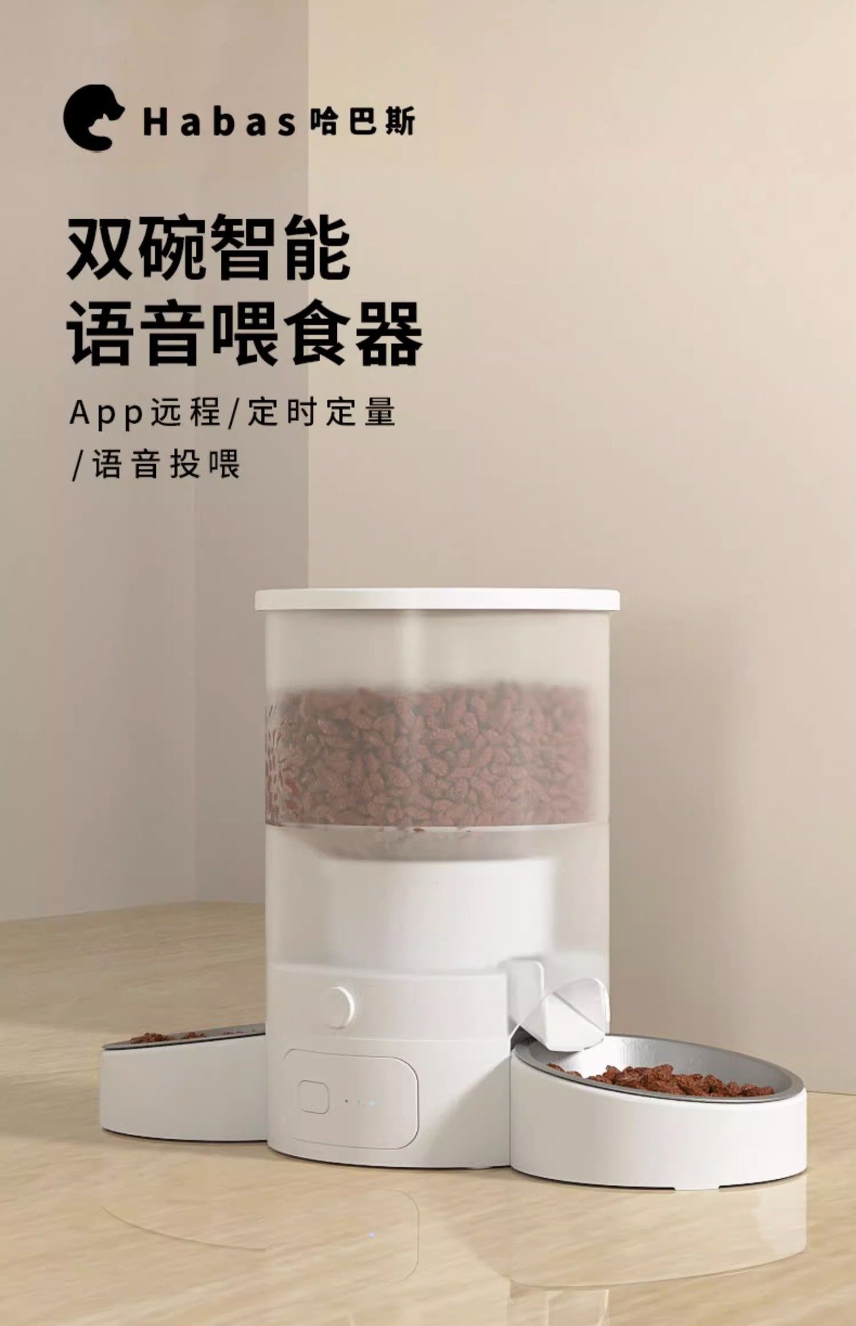 Habath pemberi makan otomatis hewan peliharaan, remote kontrol kuantitatif cerdas kapasitas besar pengumpan anjing kucing