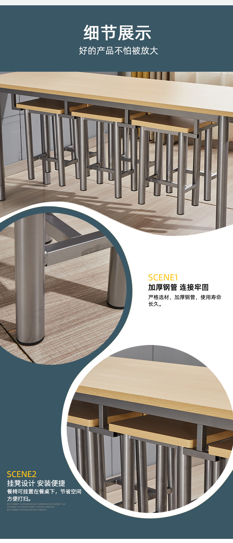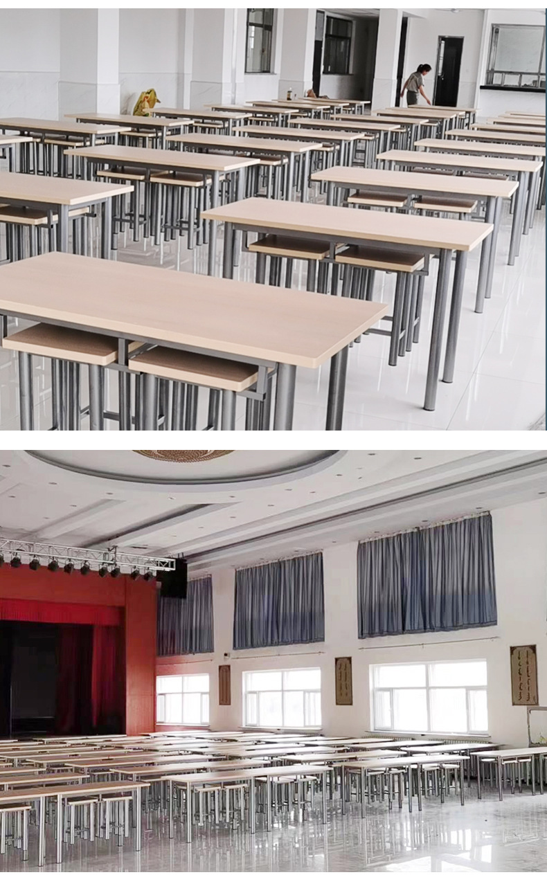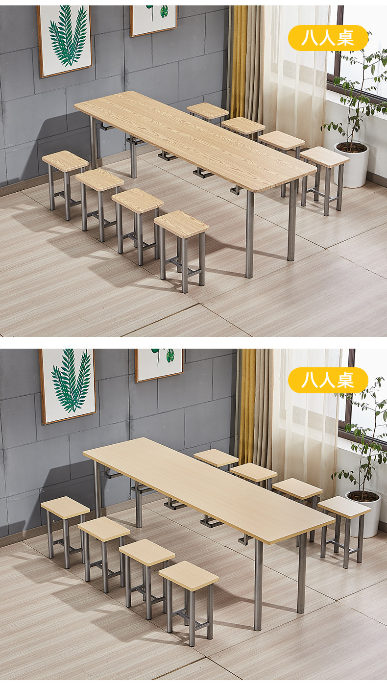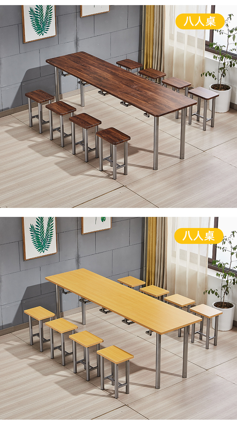 Staf kantin meja makan dan kursi gantung bangku Makanan Cepat Restoran Makanan Cepat dan kursi untuk 8 orang siswa sekolah kantin meja makan dan kursi kombinasi