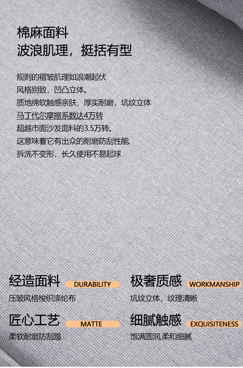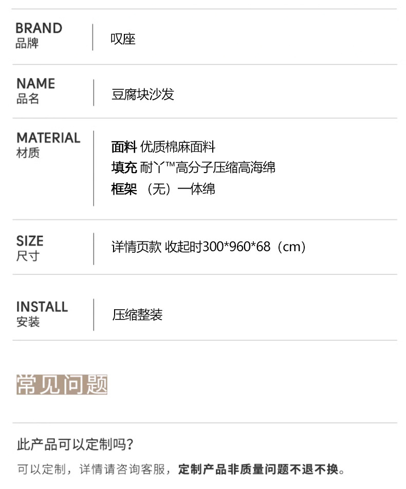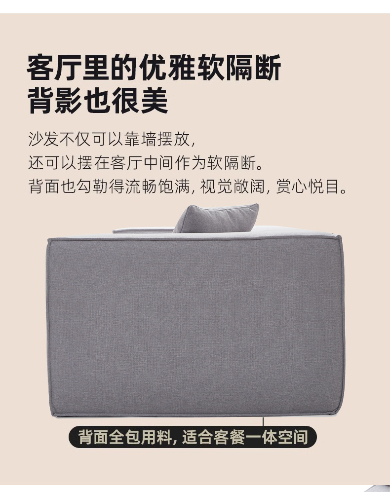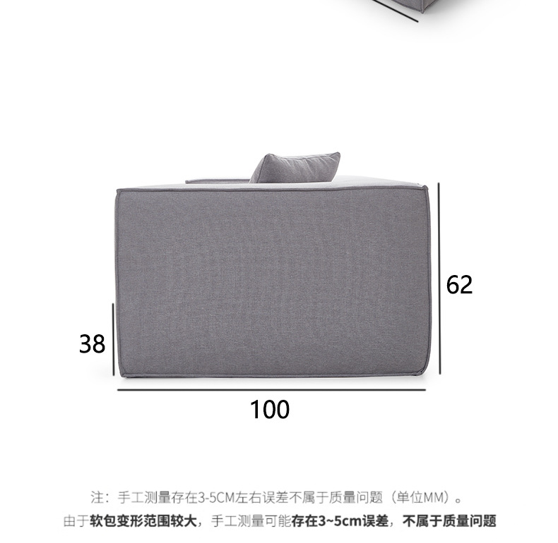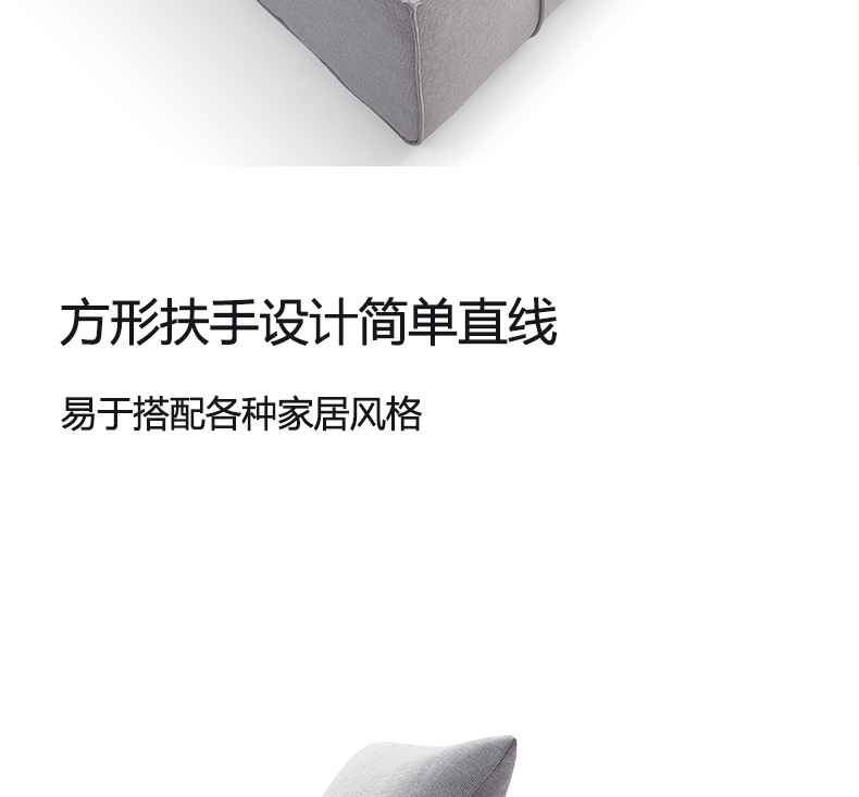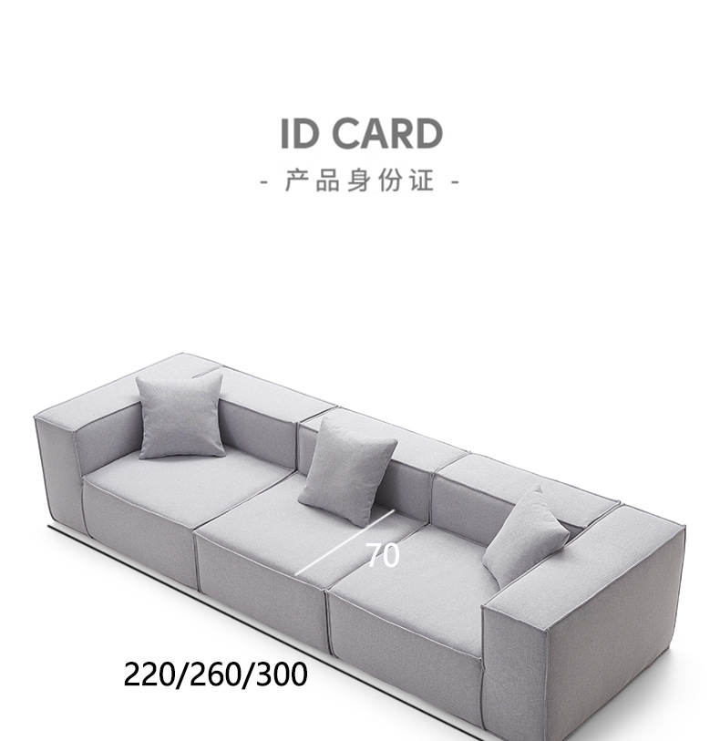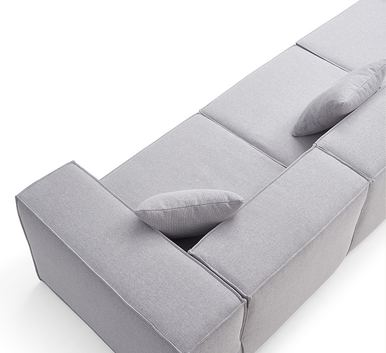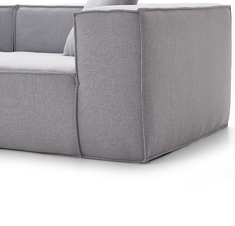 Sofa kompak untuk ruang tamu, kombinasi katun dan linen berbentuk kubus, sofa kain bergaya Italia dengan garis lurus, apartemen kecil, kayu solid.