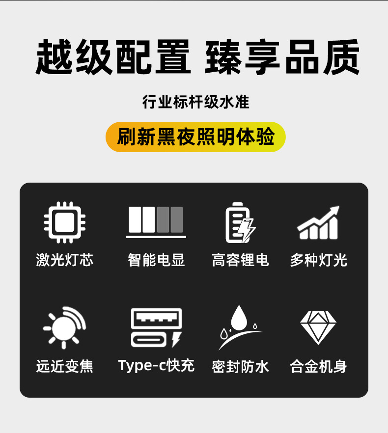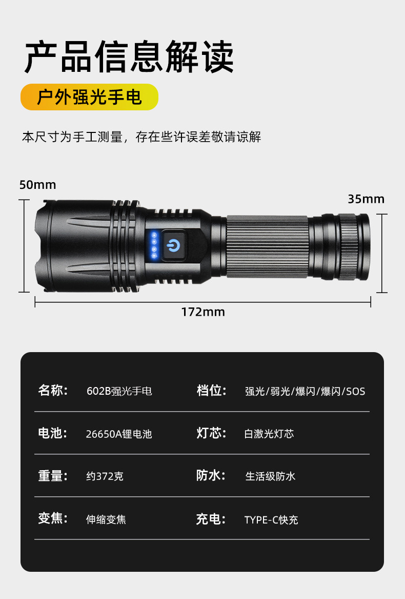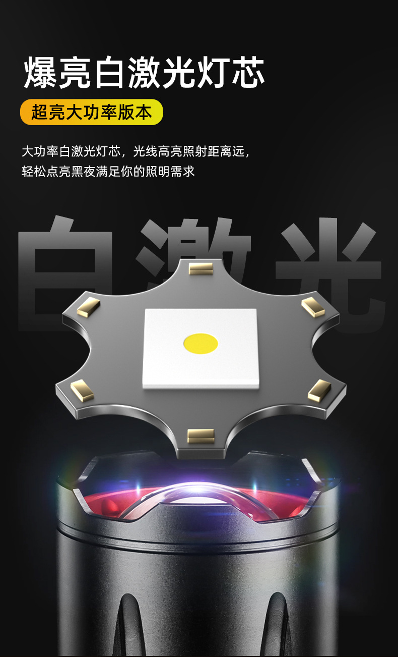 Senter led lintas batas, cahaya kuat super terang perbesaran dapat diisi ulang tembakan panjang laser Putih tahan lama rumah luar ruangan