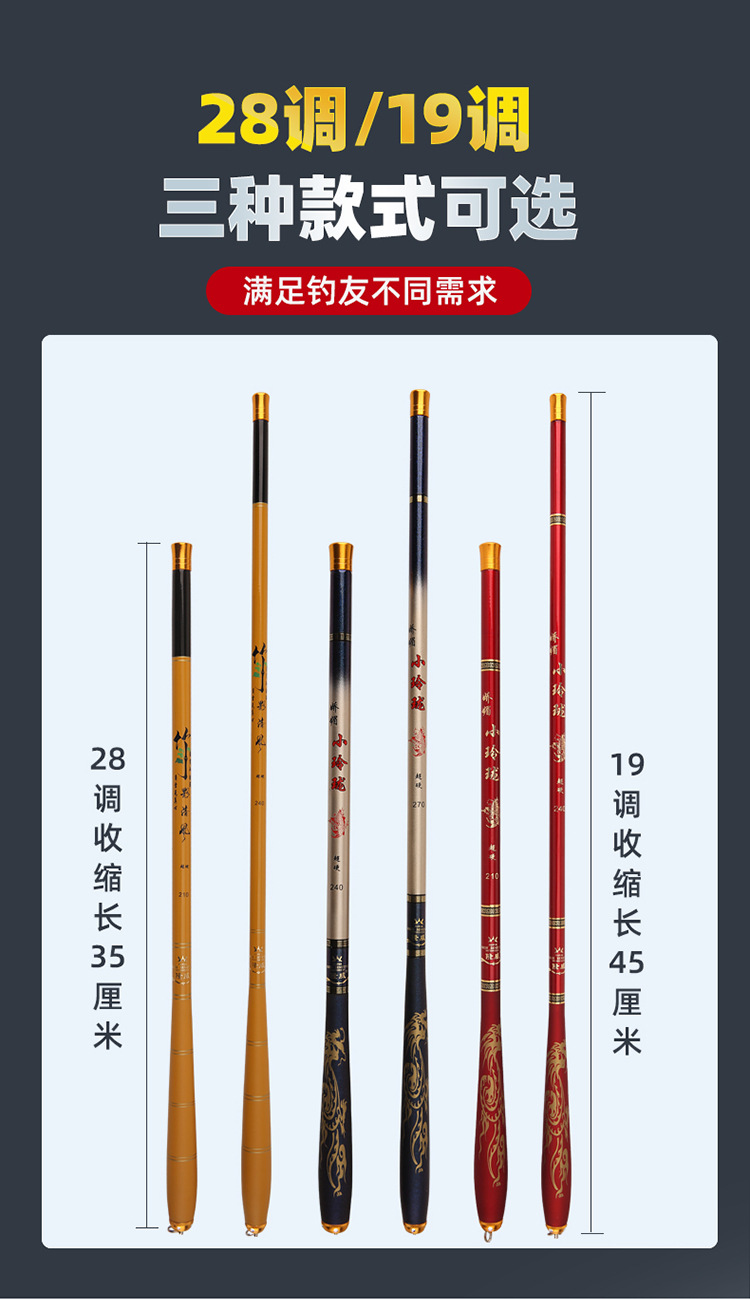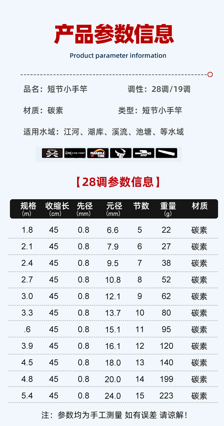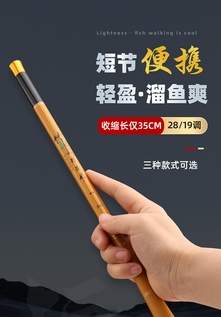 Joran pancing karbon ultra-pendek, tongkat pancing bahan karbon ultra-ringan bagian pendek keras untuk memancing di Sungai ukuran 45cm 35cm 28 pengaturan 19 inci