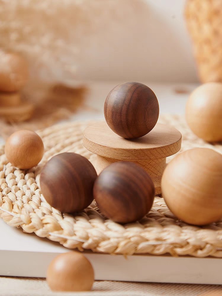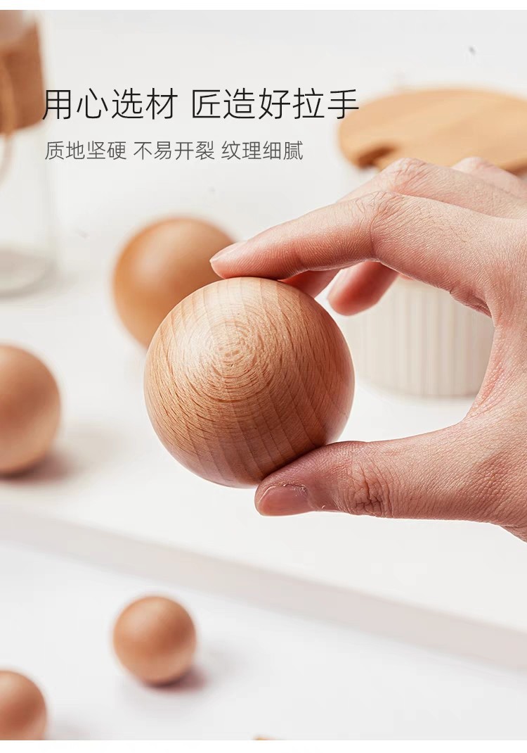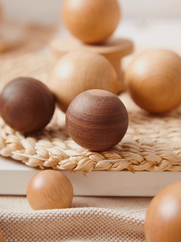 Bola kayu padat menangani kayu laci pintu kabinet kamar anak-anak sederhana Jepang lubang tunggal warna kayu pegangan pintu