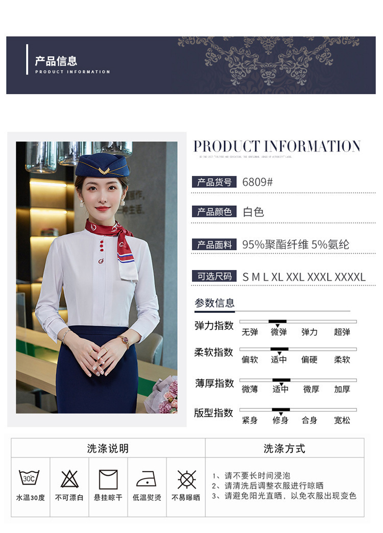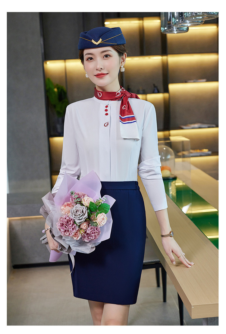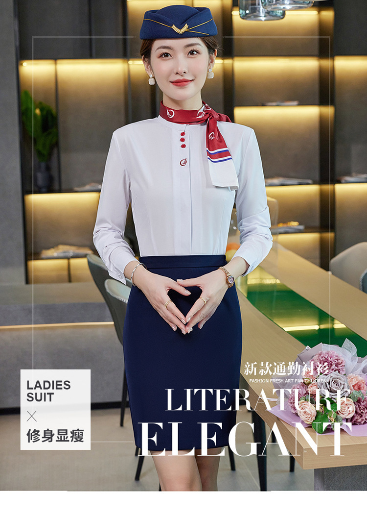 空姐制服职业女长袖白衬衫春秋气质酒店前台接待餐厅服务员工作服