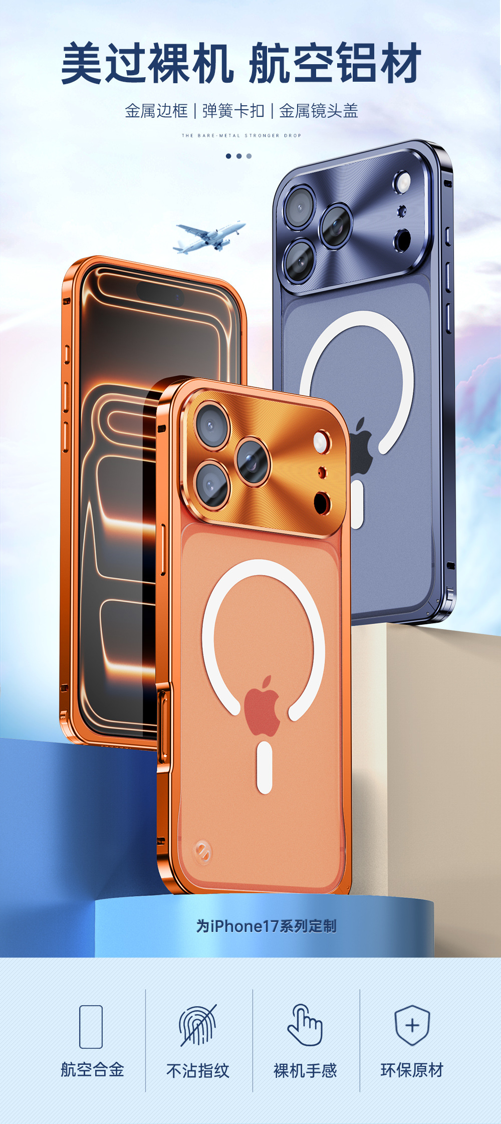 Casing ponsel Apple 17Pro, rangka logam dengan pengait kuda laut, pelindung lensa anti jatuh iPhone17, grosir