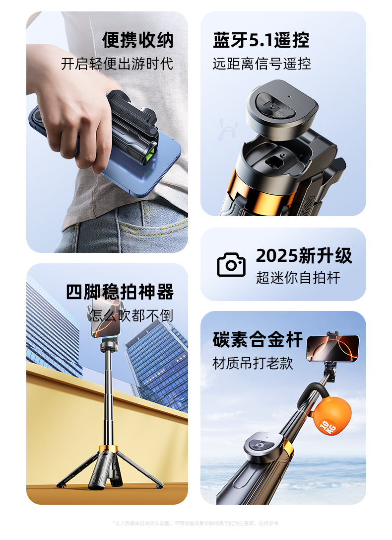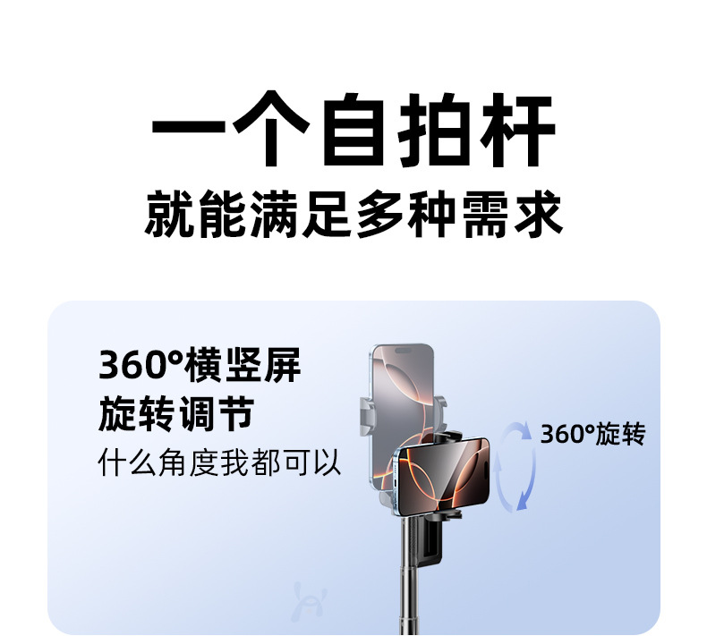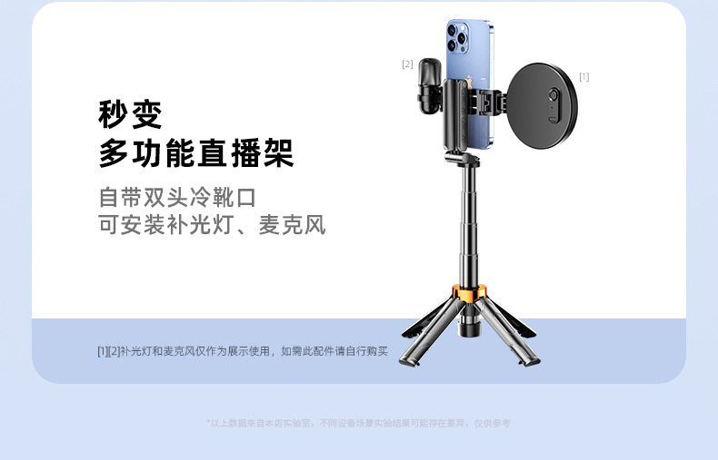 Tongsis selfie portabel 1 meter dengan lampu isi Bluetooth untuk live streaming, penyangga ponsel tripod terintegrasi serbaguna