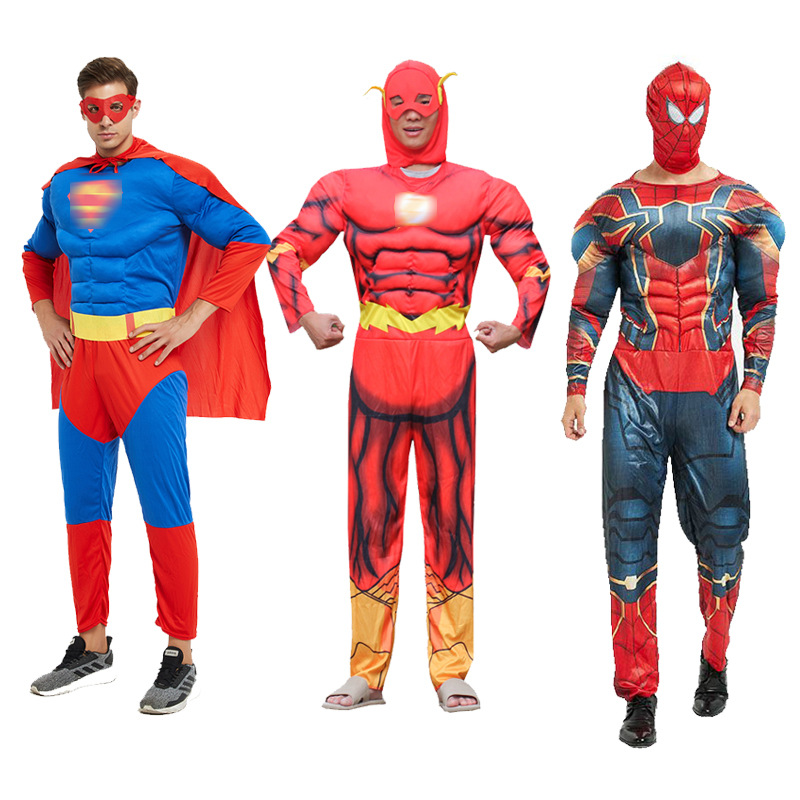 Kostum pertunjukan otot Iron Man Spider-Man Superman Batman Hulk cos kostum performa dewasa pria dan wanita