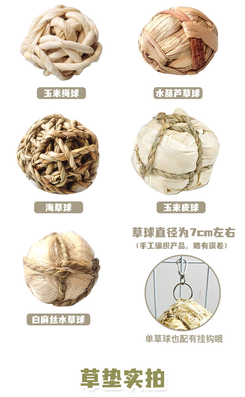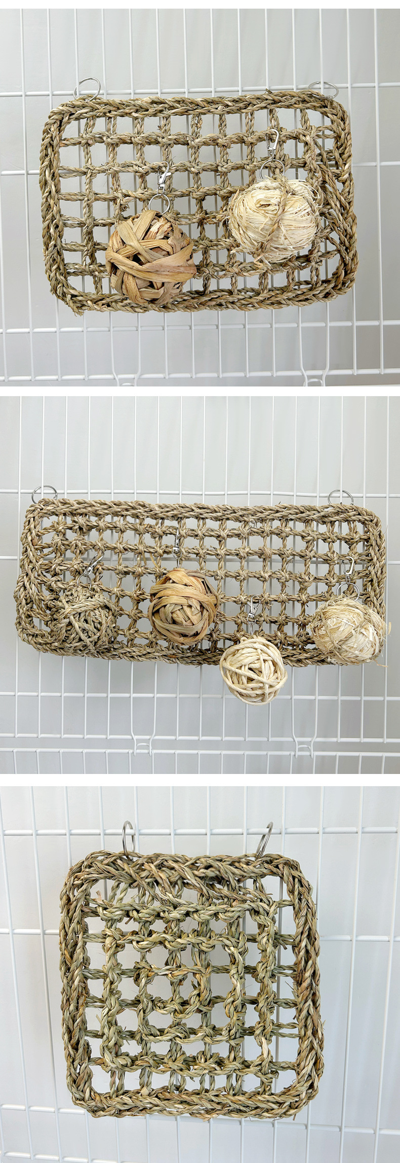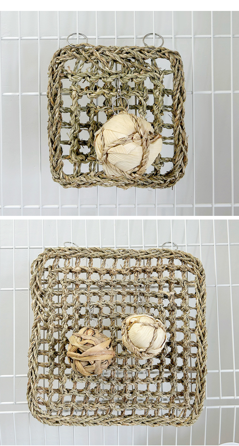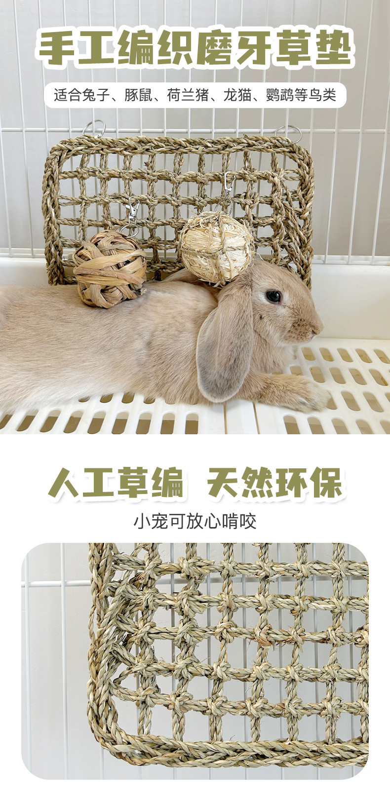 Mainan tikar rumput kelinci, tikar rumput pelindung kandang chinchilla, tikar rumput pelindung kandang guinea pig, papan kunyah kayu apel, burung beo.