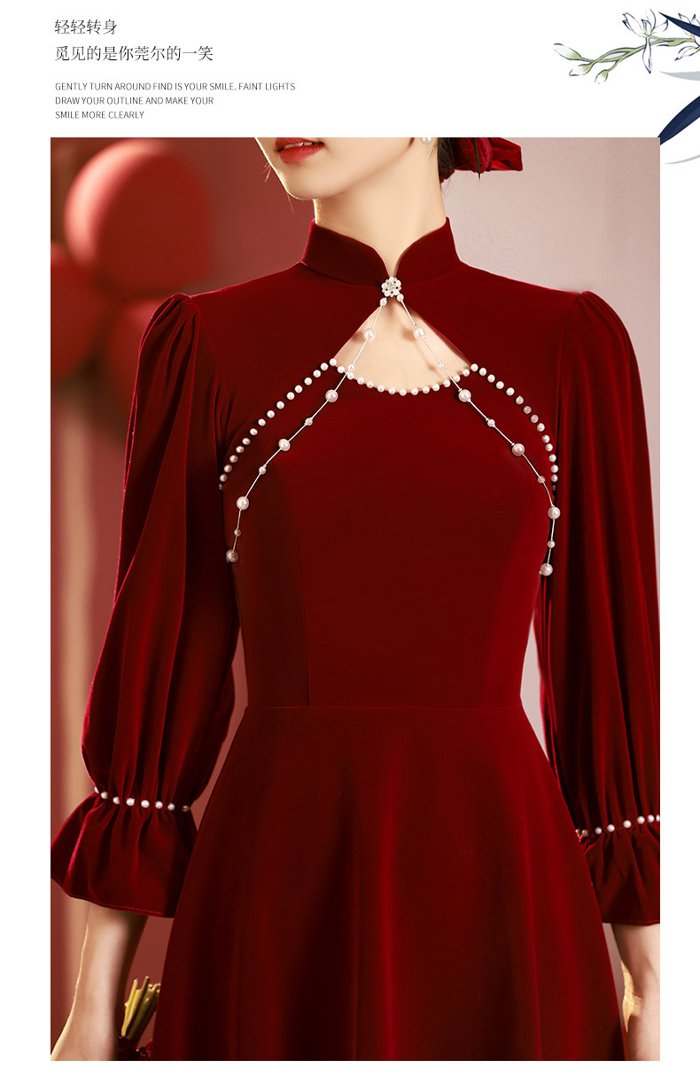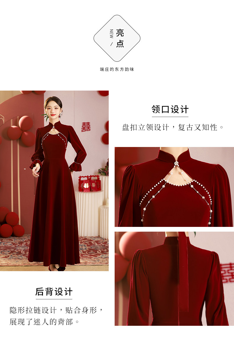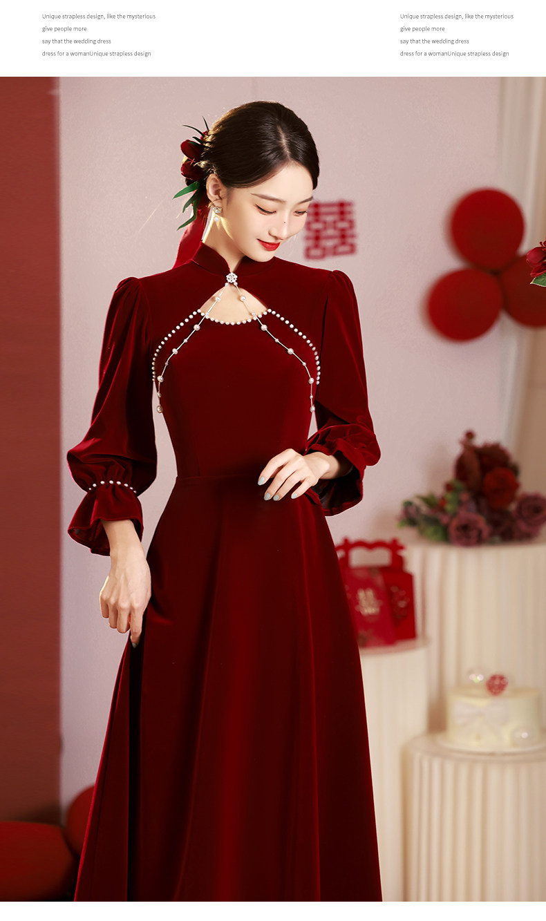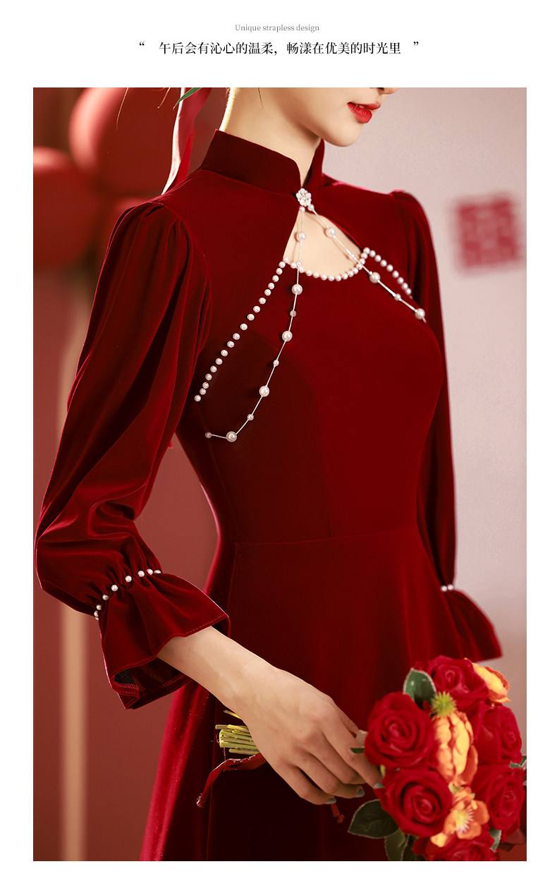 Gaun pengantin untuk acara bersulang, qipao, gaun tunangan baru musim gugur dan musim dingin 2026, gaun pengantin merah musim dingin, gaun lengan panjang musim dingin.