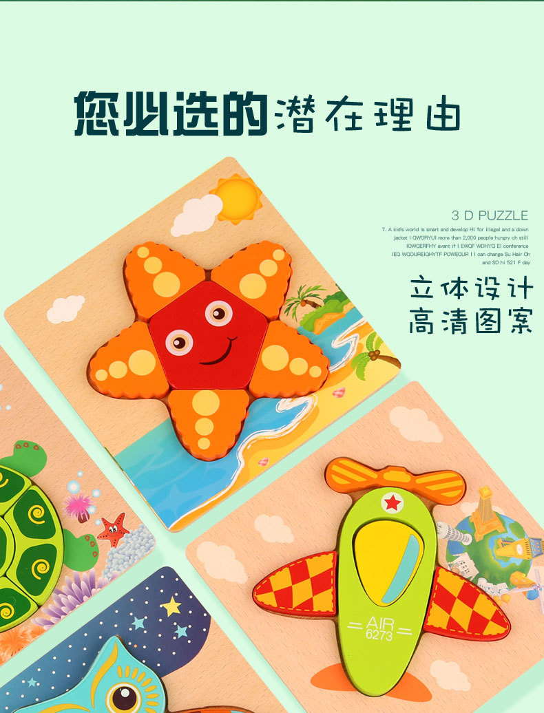 Edukasi bayi kayu tiga dimensi puzzle 1-3 TK pendidikan awal bayi mainan kreatif tangan bayi grosir